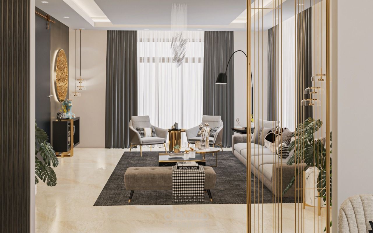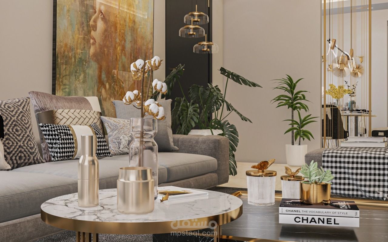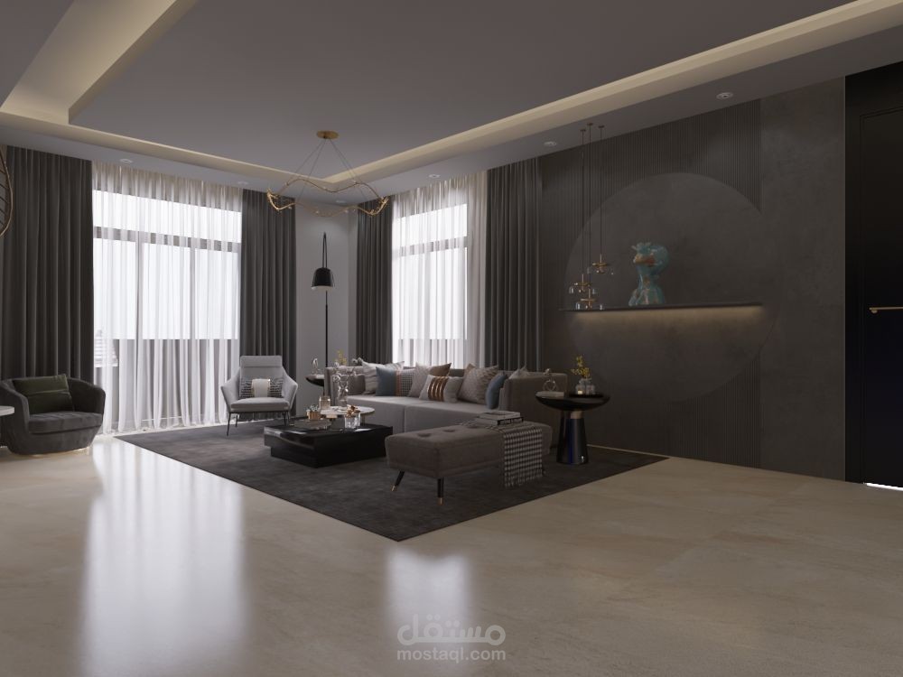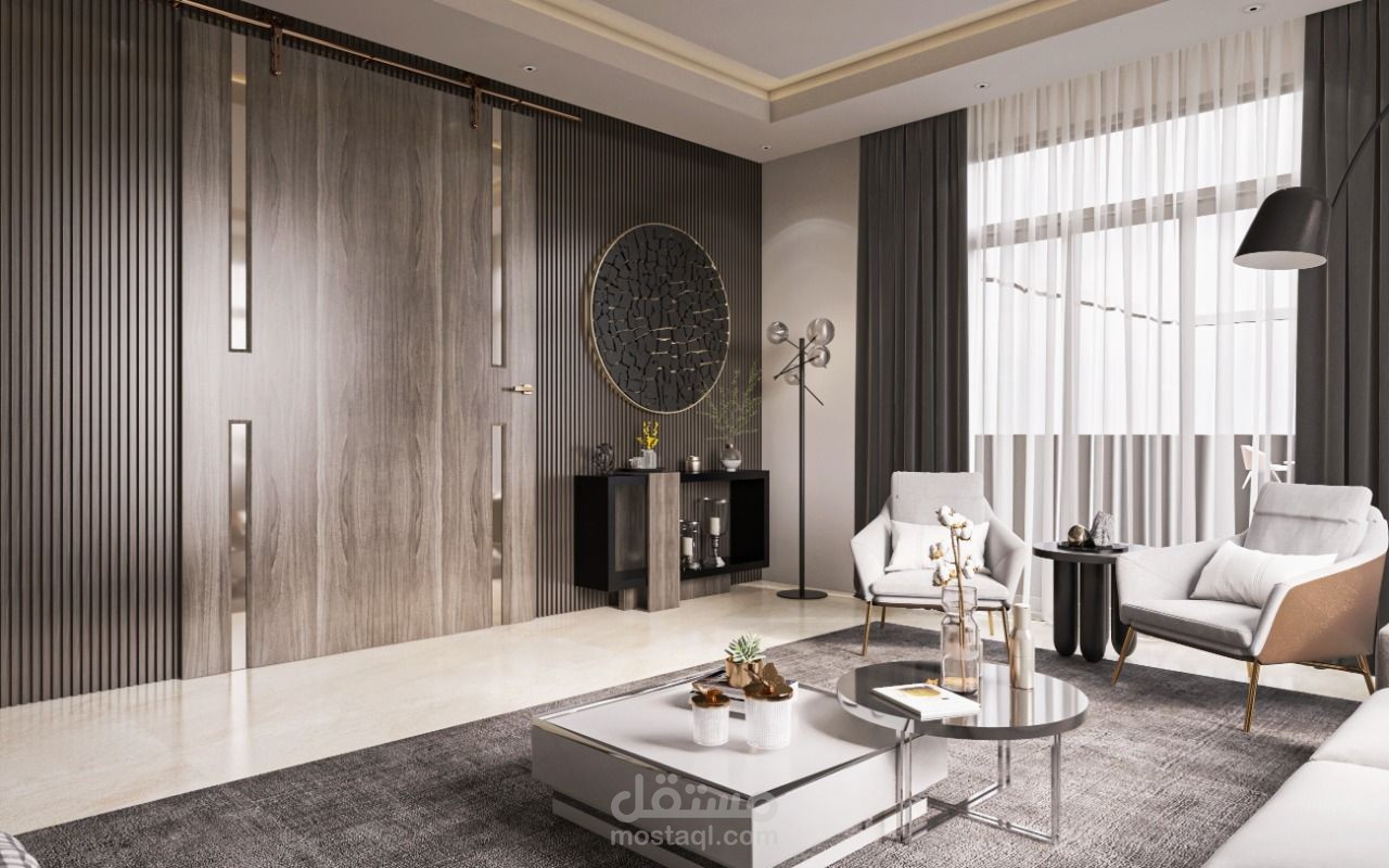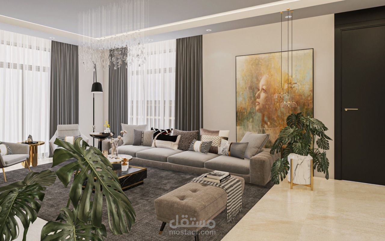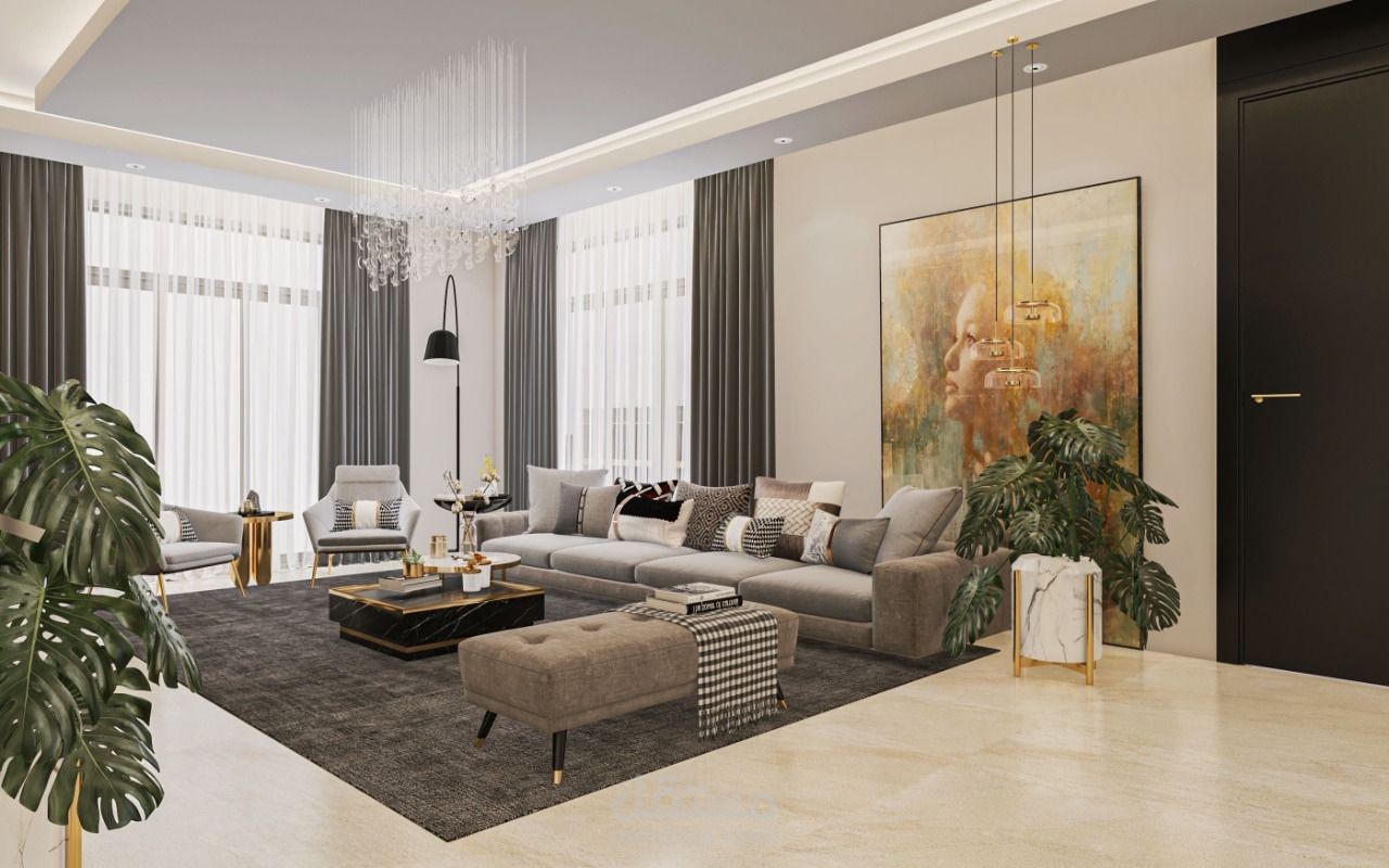 جلسة عائلية ومنطقة طعام علي الطراز الحديث مع البدائل للعميل