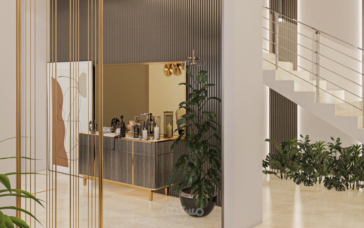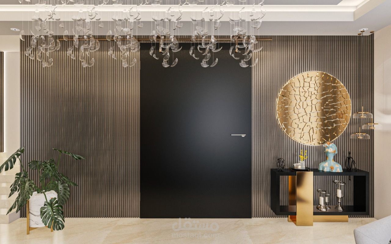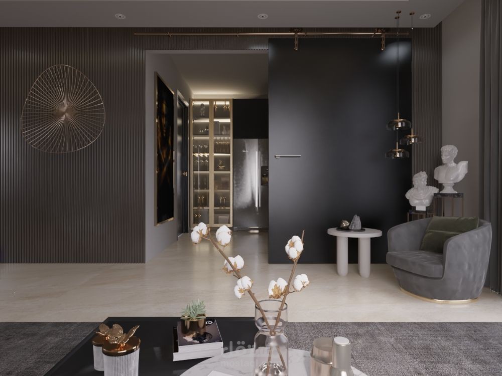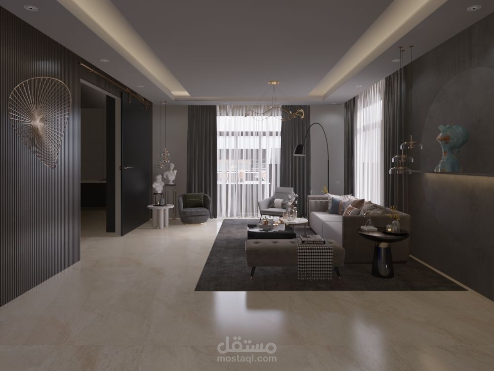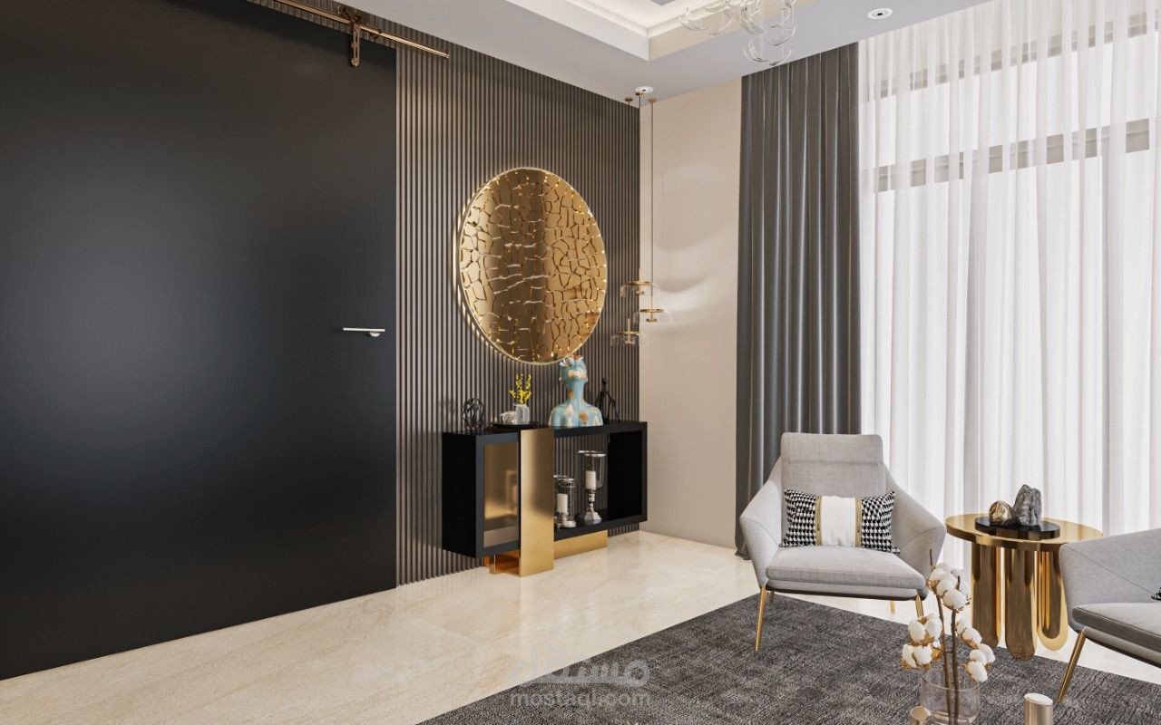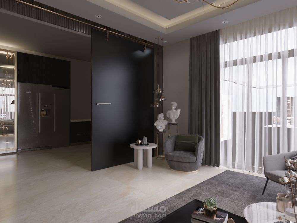 جلسة عائلية ومنطقة طعام علي الطراز الحديث مع البدائل للعميل