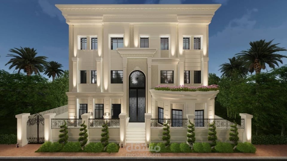 تصميم واجهتين كلاسيك لفيلا داخل دولة الكويت