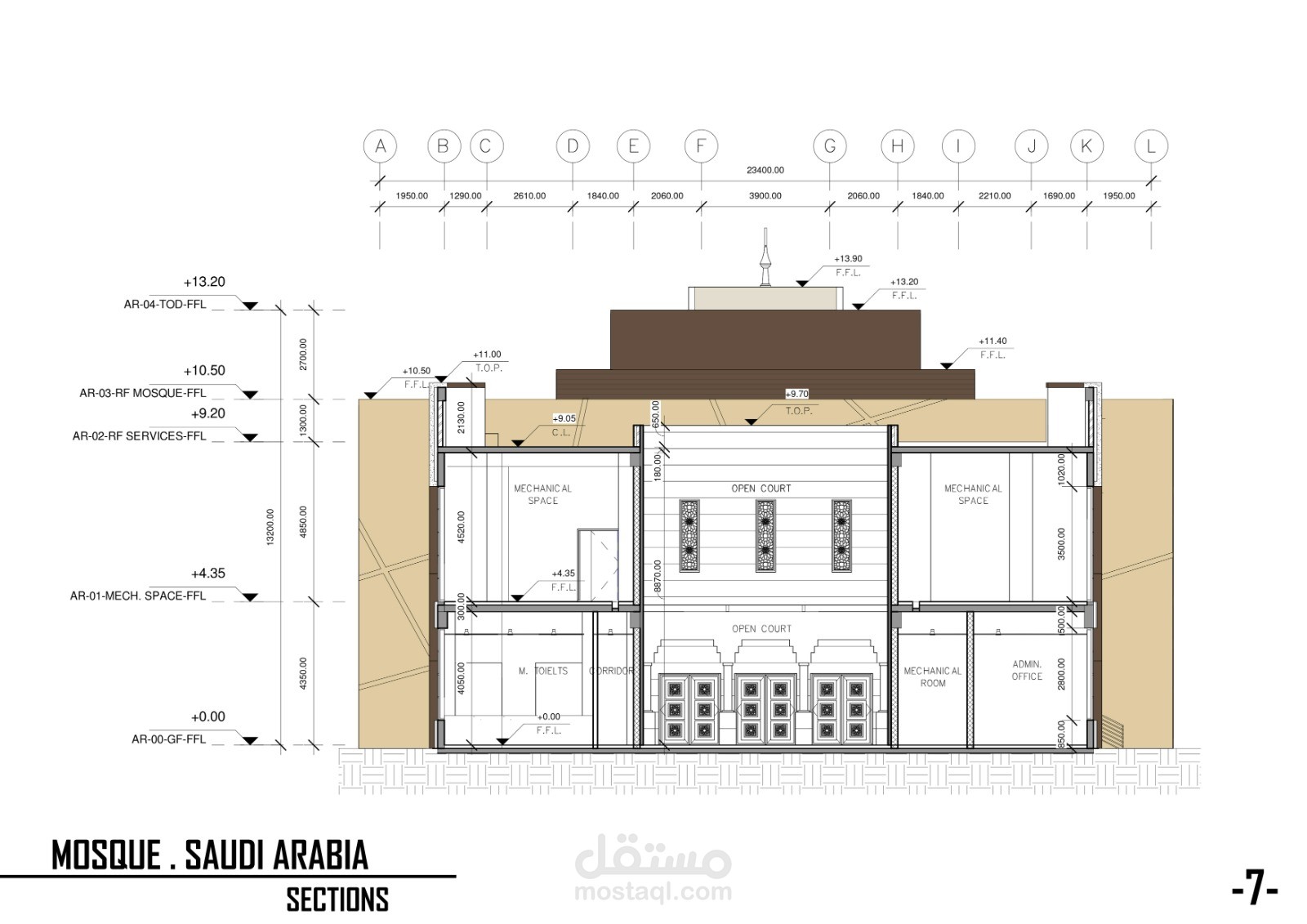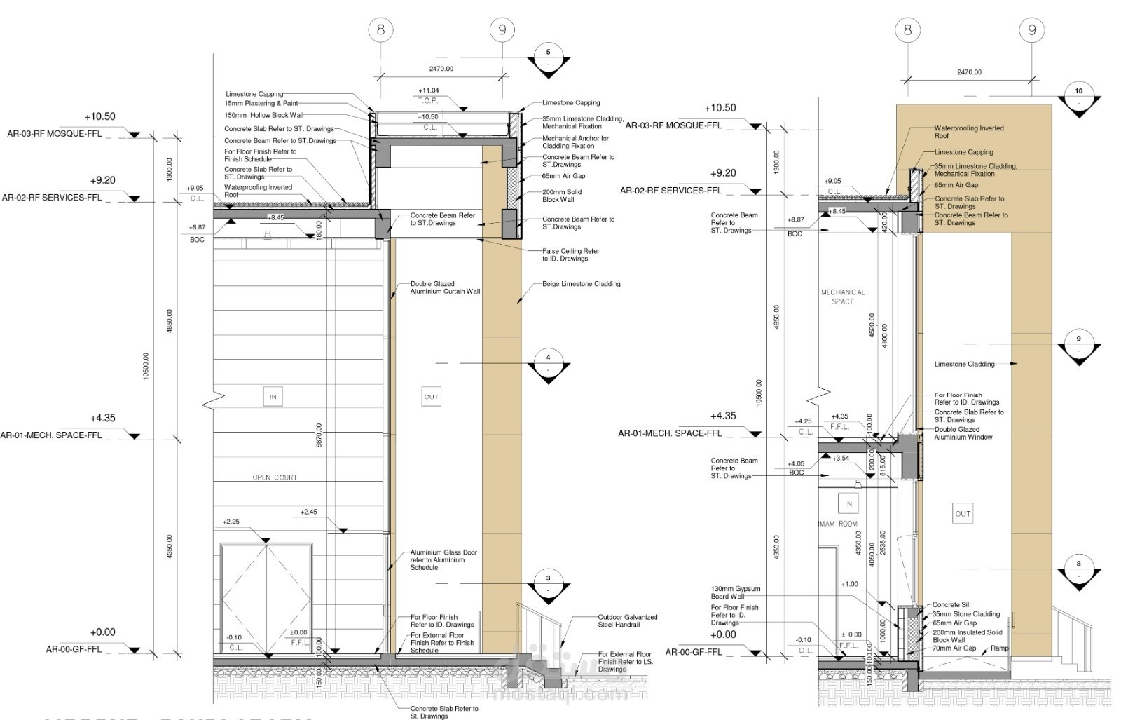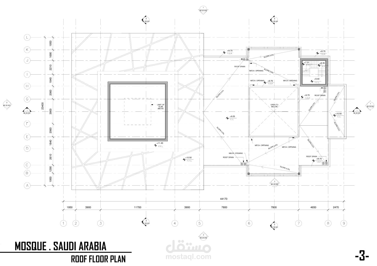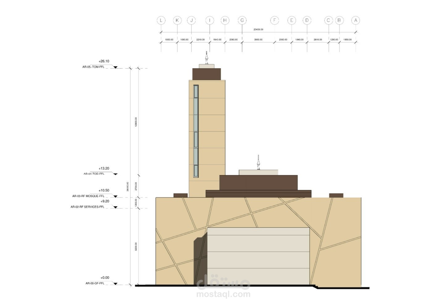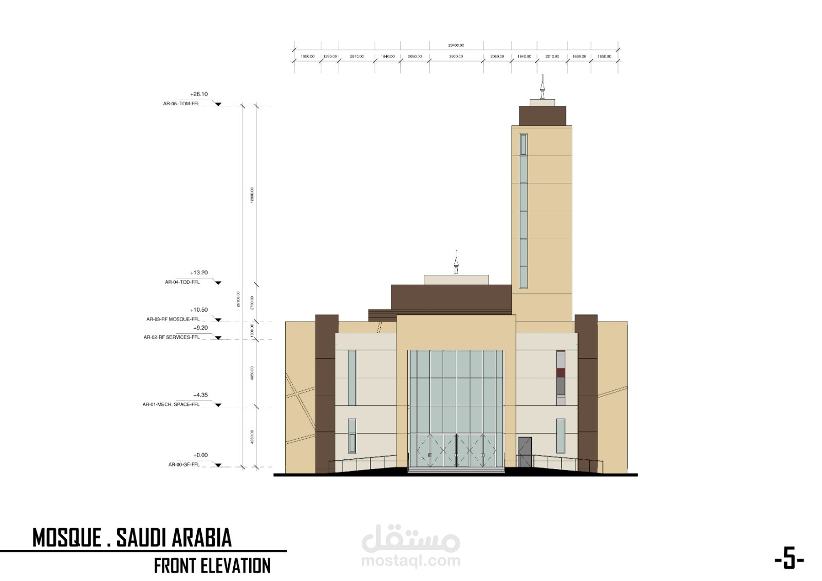 تم العمل على كامل المخططات التنفيذية للمسجد على برنامج الريفيت المعماري