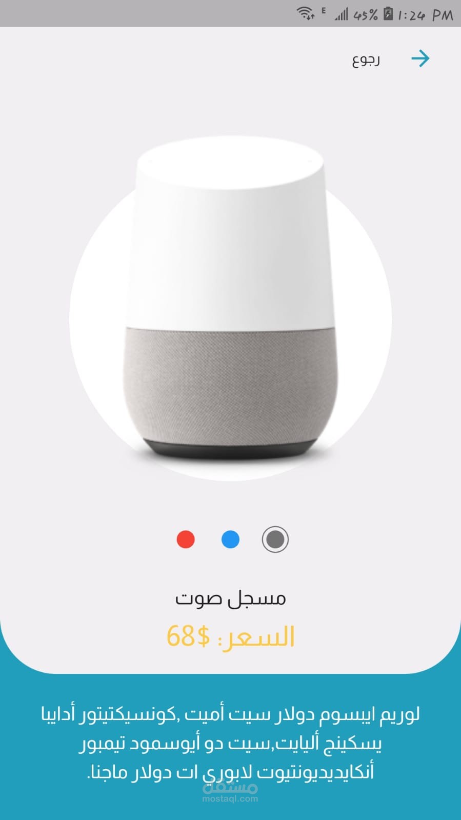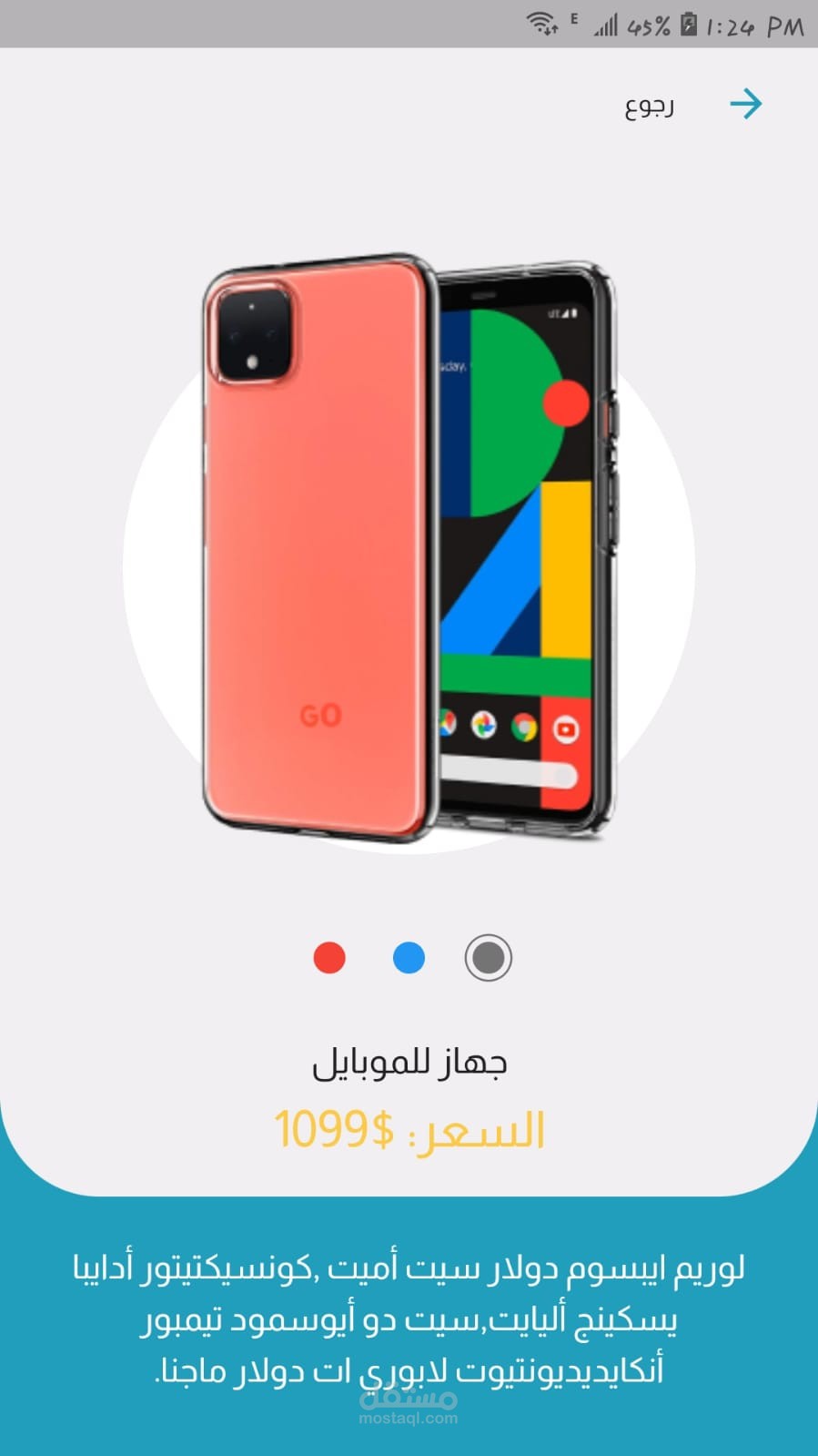 تطبيق متجر أجهزة الموبايل تمت برمجته باستخدام بيئة العمل Flutter بلغة Dart يعرض تصنيفات متنوعة لأجهزة الموبايل