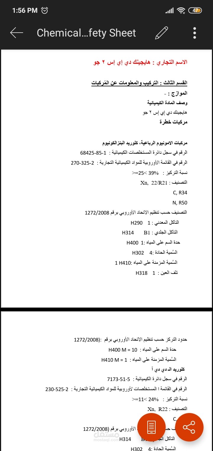 ترجمة safety data sheet لعميل يعمل بمجال الصيدلة لديه منتجات كيميائية