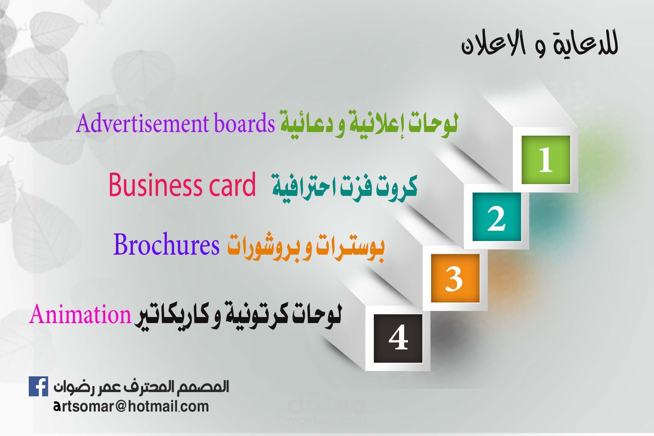 تصميم البوسترات و البروشورات و البنرات و اغلفة الفيس بوك و تصميم الشعارات و اغلفة الكتب و المجلات
