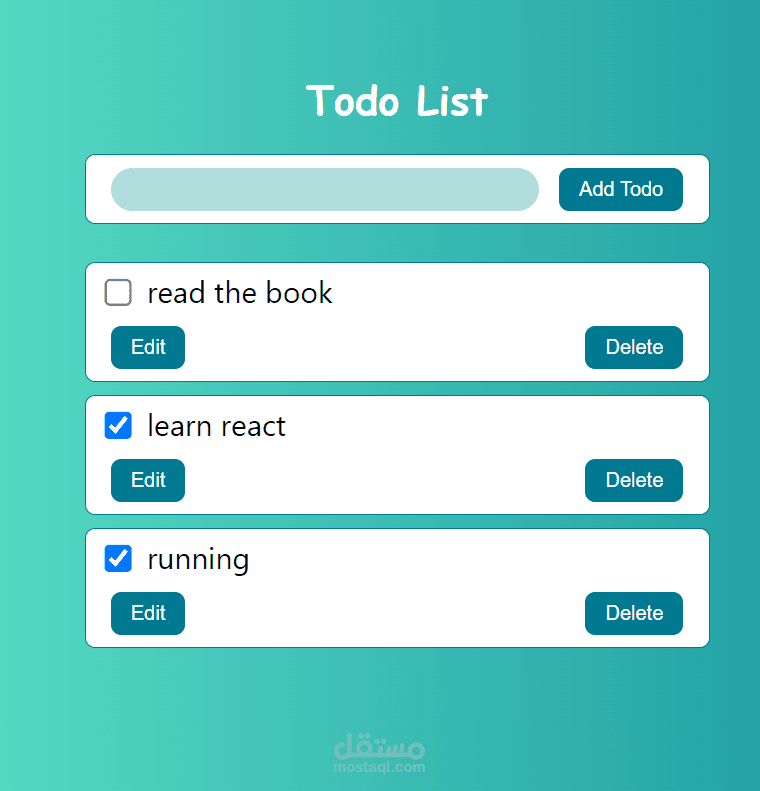 ️ زر (Add Todo) يمكنك إضافة المهام التي يتعين القيام بها ، وستتمكن من إضافة العديد من المهام كما لديك.