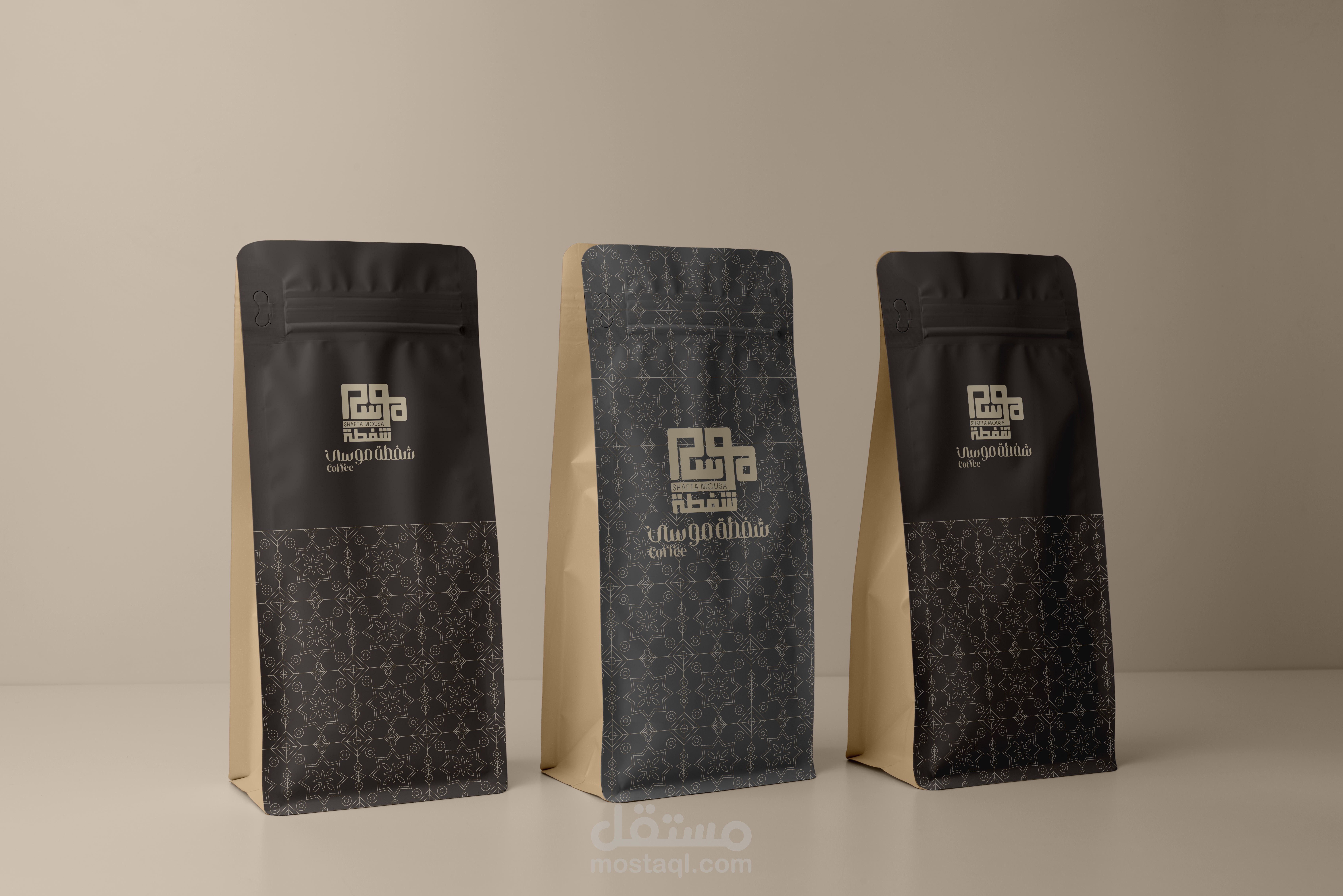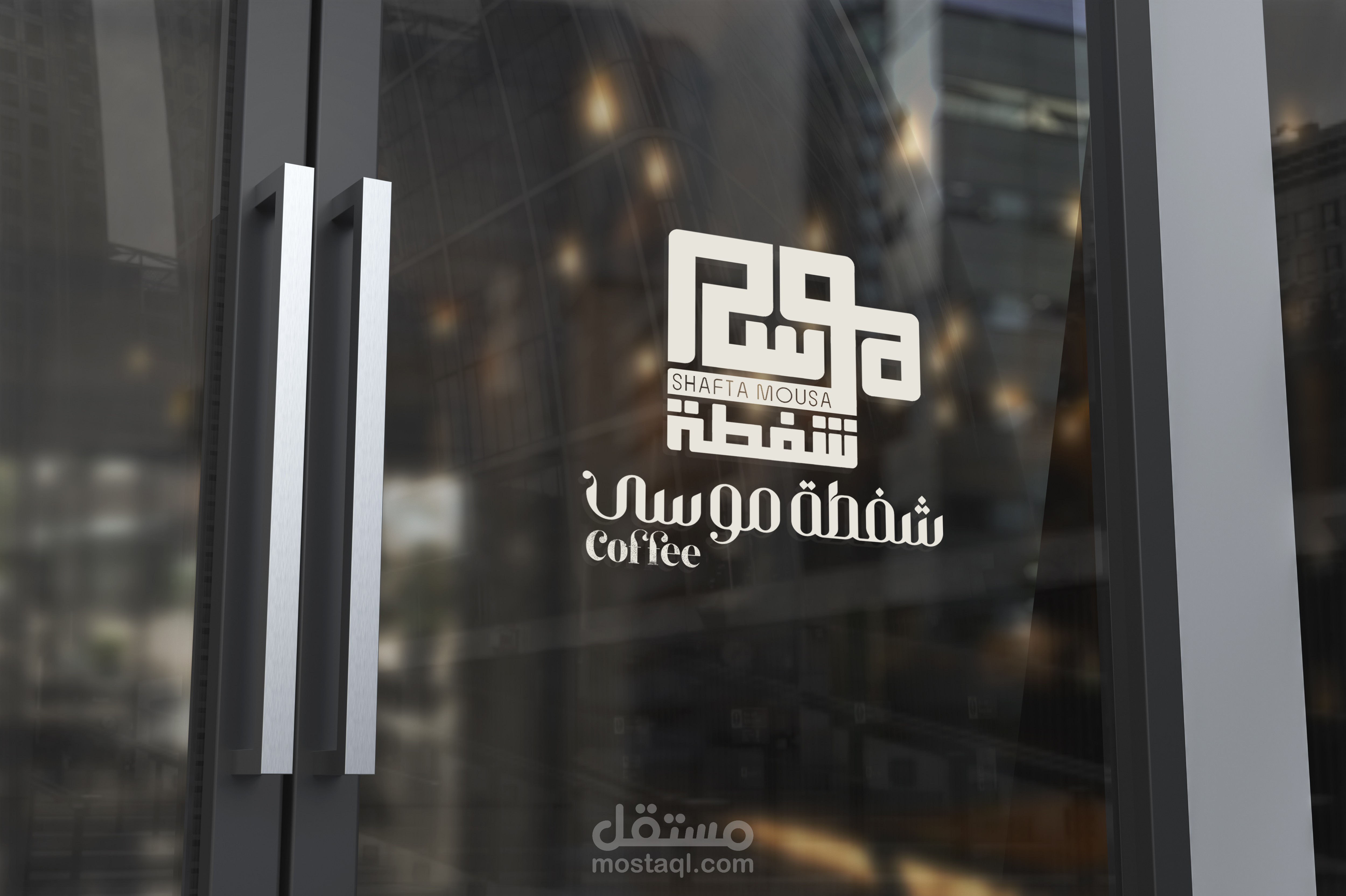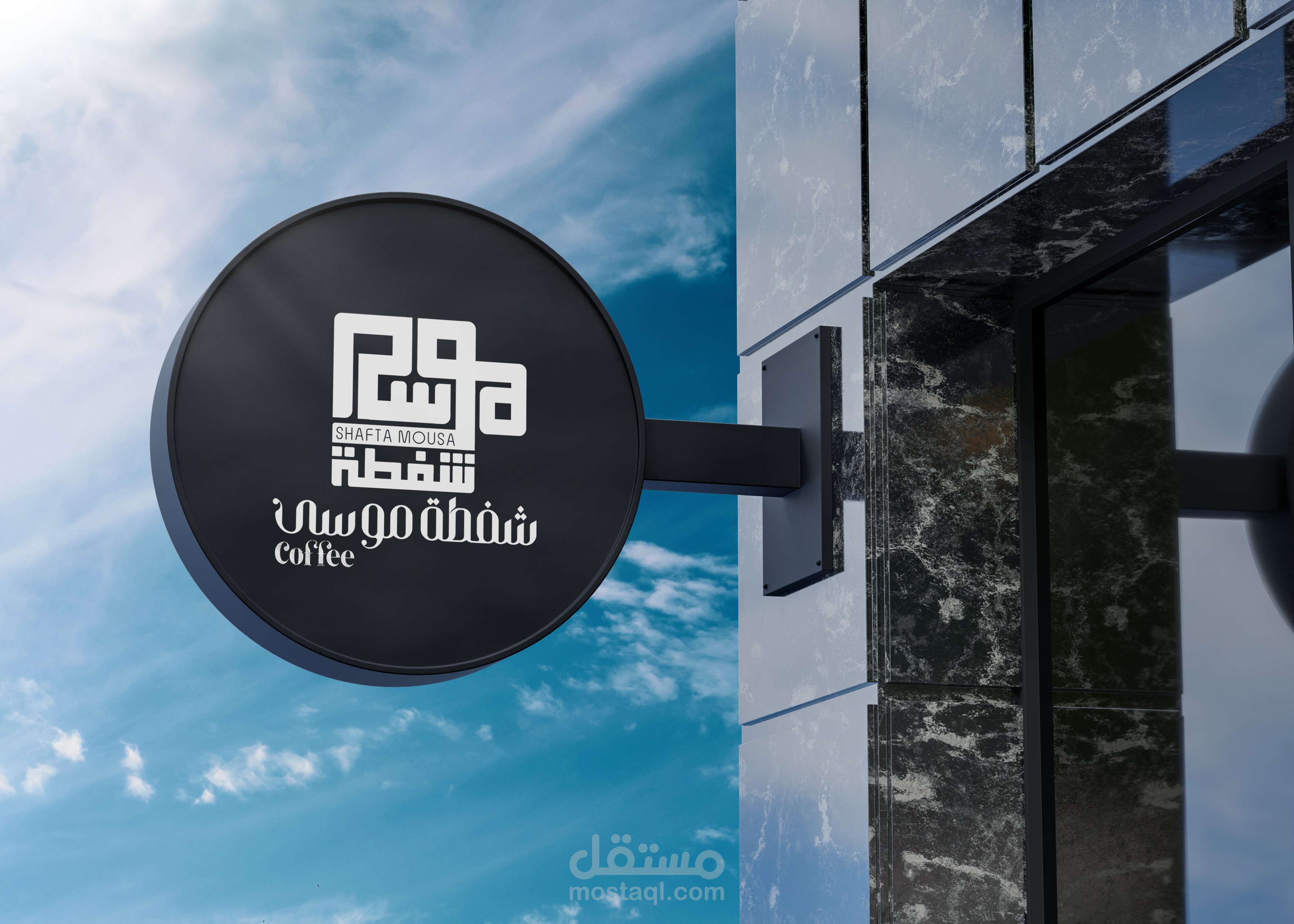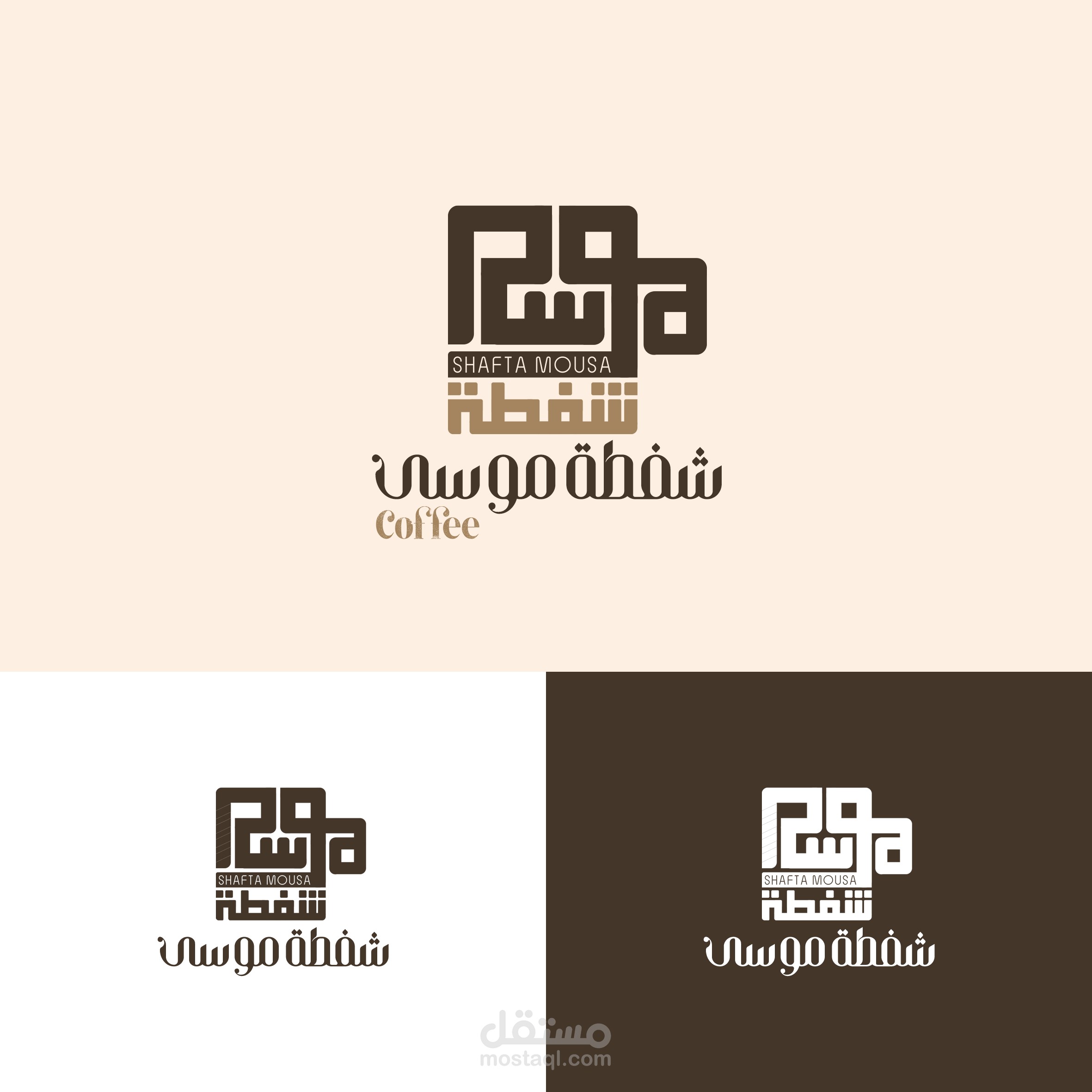 شعار لكافيه متنقل مصمم بطريقة التايبوجرافى لكلمة شفطة موسى على شكل كوب القهوة