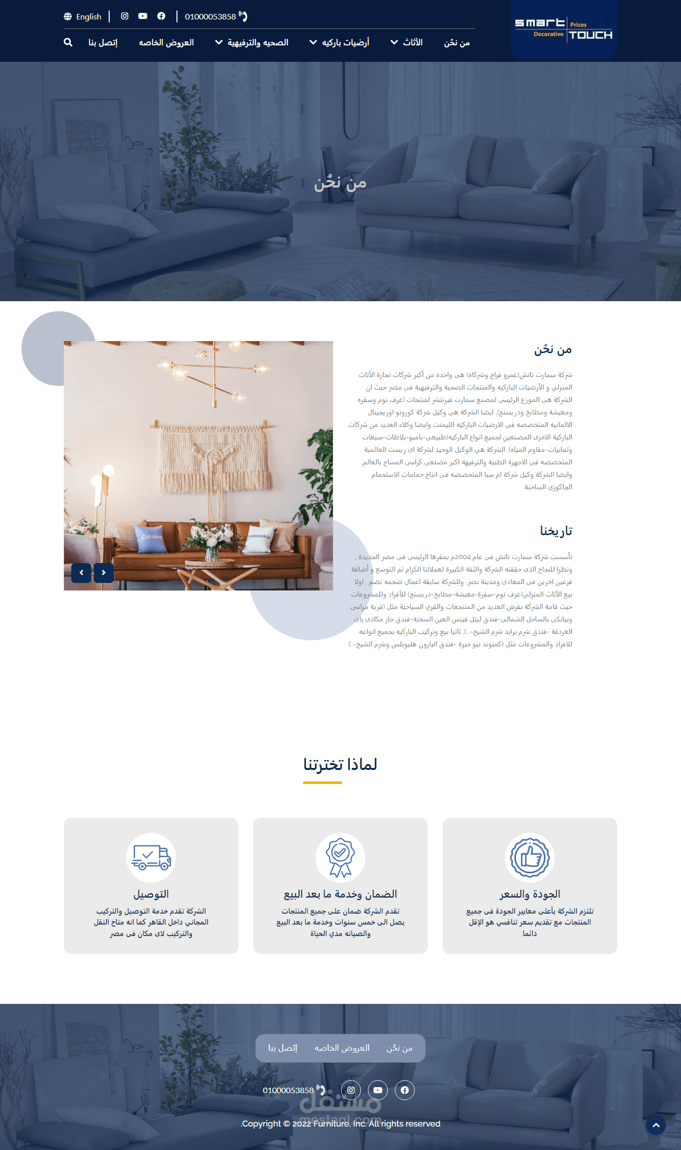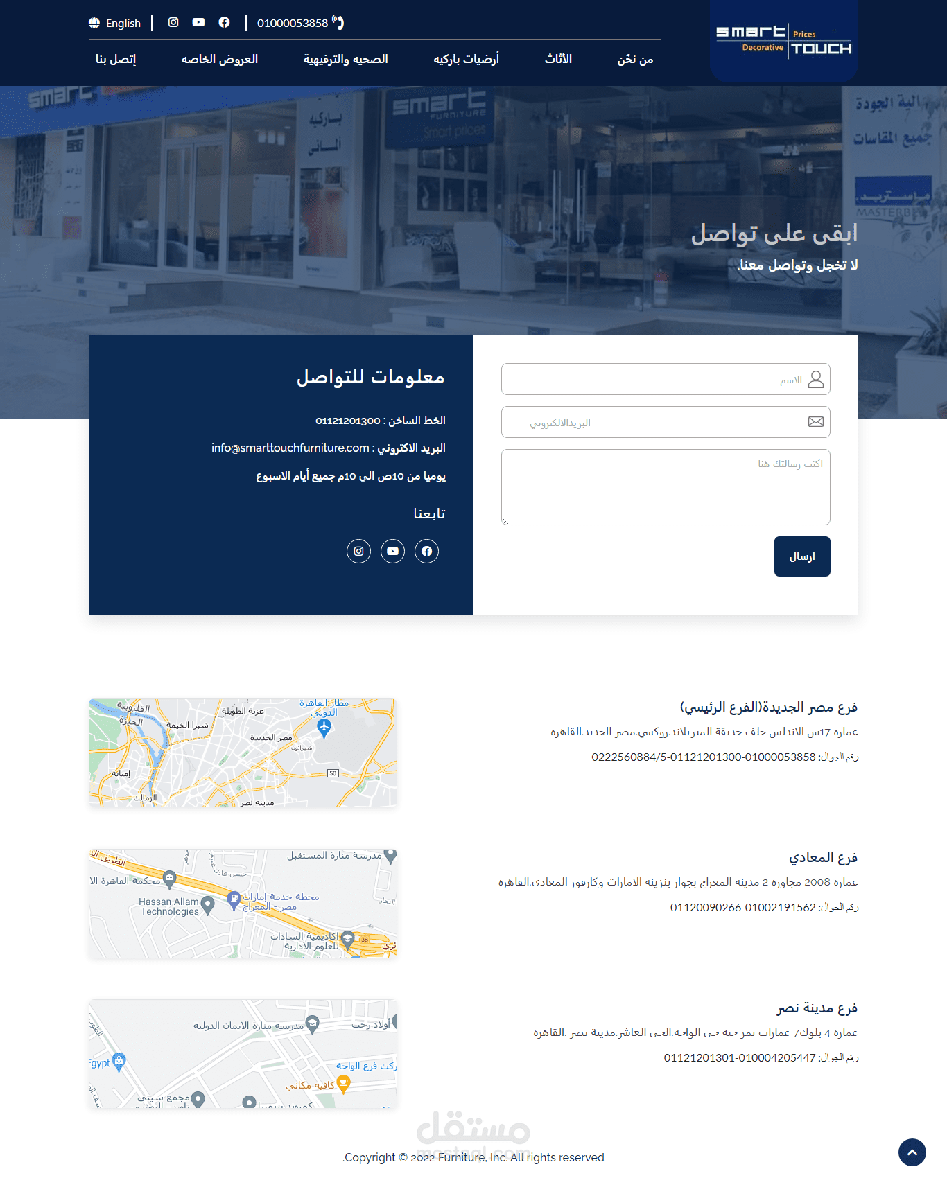 شركة سمارت تاتش(عمرو فراج وشركاه) هى واحده من أكبر شركات تجارة الأثاث المنزلي و الأرضيات الباركيه والمنتجات الصحية والترفيهية فى مصر حيث ان الشركة هى الموزع الرئيسى لمصنع سمارت فيرنتشر لمنتجات (غرف نوم وسفره ومعيشة ومطابخ ودريسنج), ايضا الشركة هى وكيل شركة كورونو اوريجينال الالمانيه المتخصصه فى الارضيات الباركيه الليمنت وايضا وكلاء العديد من شركات الباركية الاخرى المصنعين لجميع انواع الباركيه(طبيعى-بامبو-بلاطات-سبعات وثمانيات-مقاوم المياه), الشركة هي الوكيل الوحيد لشركة اى ريست العالمية المتخصصه فى الاجهزة الطبية والترفيهة اكبر مصنعى كراسى المساج بالعالم, وايضا الشركة وكيل شركة ام سبا المتخصصه فى انتاج حمامات الاستحمام الجاكوزي الساخنة.
