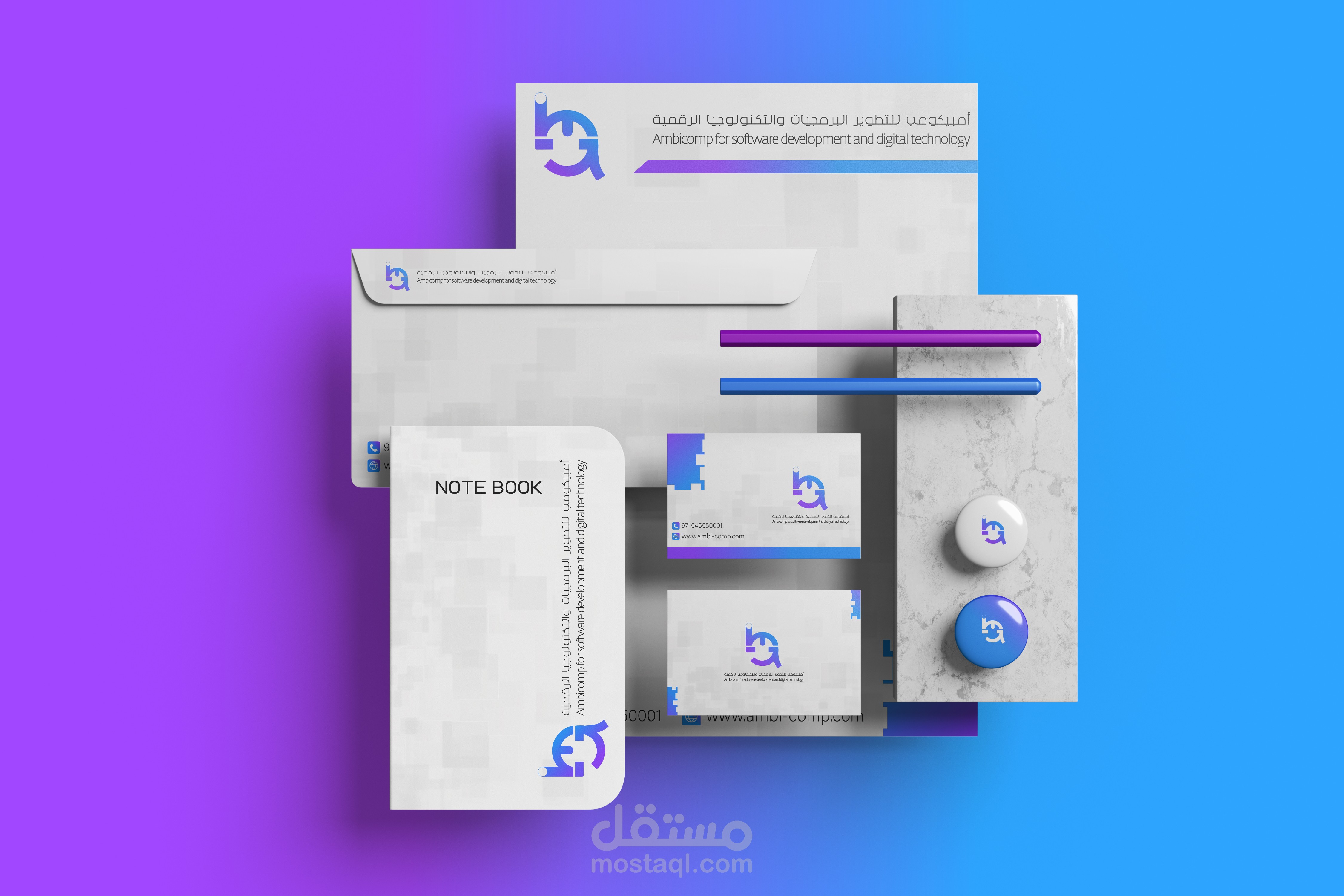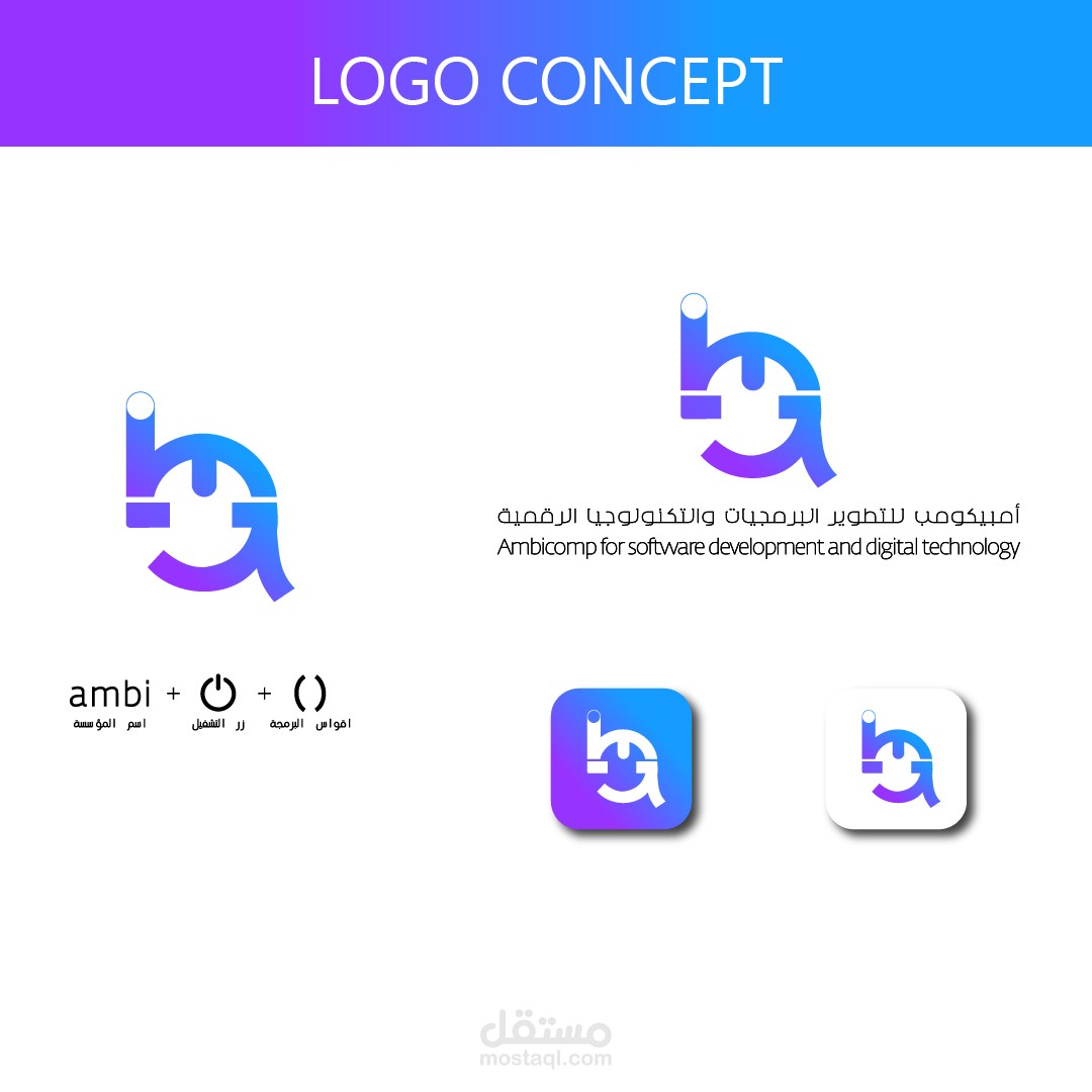 تم تصميم هذه الهوية البصرية لمؤسسة أمبيكومب للتطوير البرمجيات والتكنولوجيا الرقمية