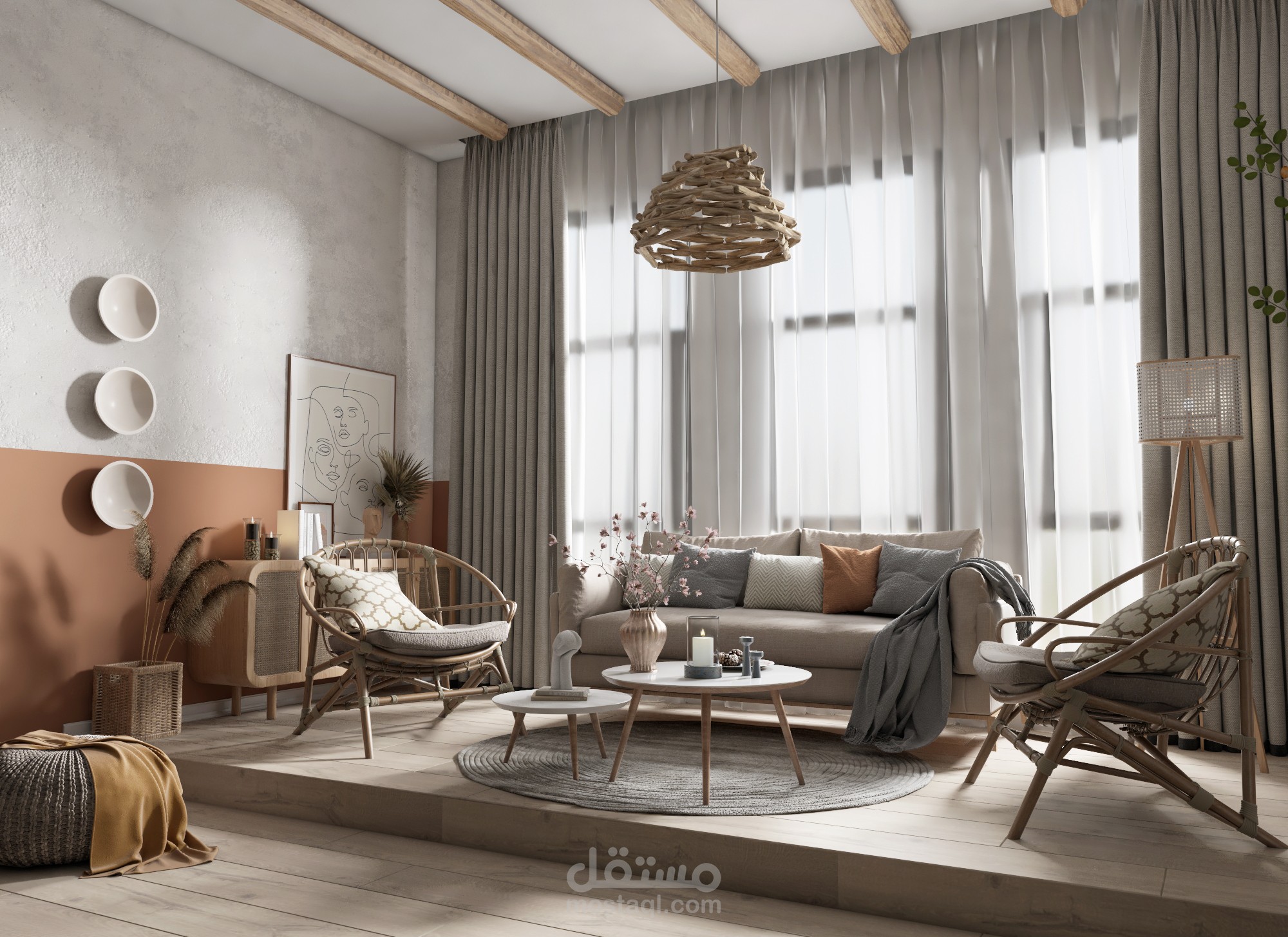تم التصميم الفراغ على الطراز الريفي