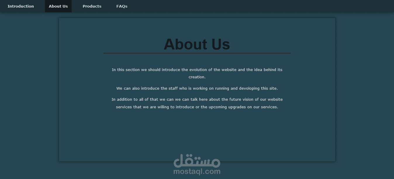Professional design with HTML and CSS of a landing page with an indicator of pages sections manipulated with JavaScript