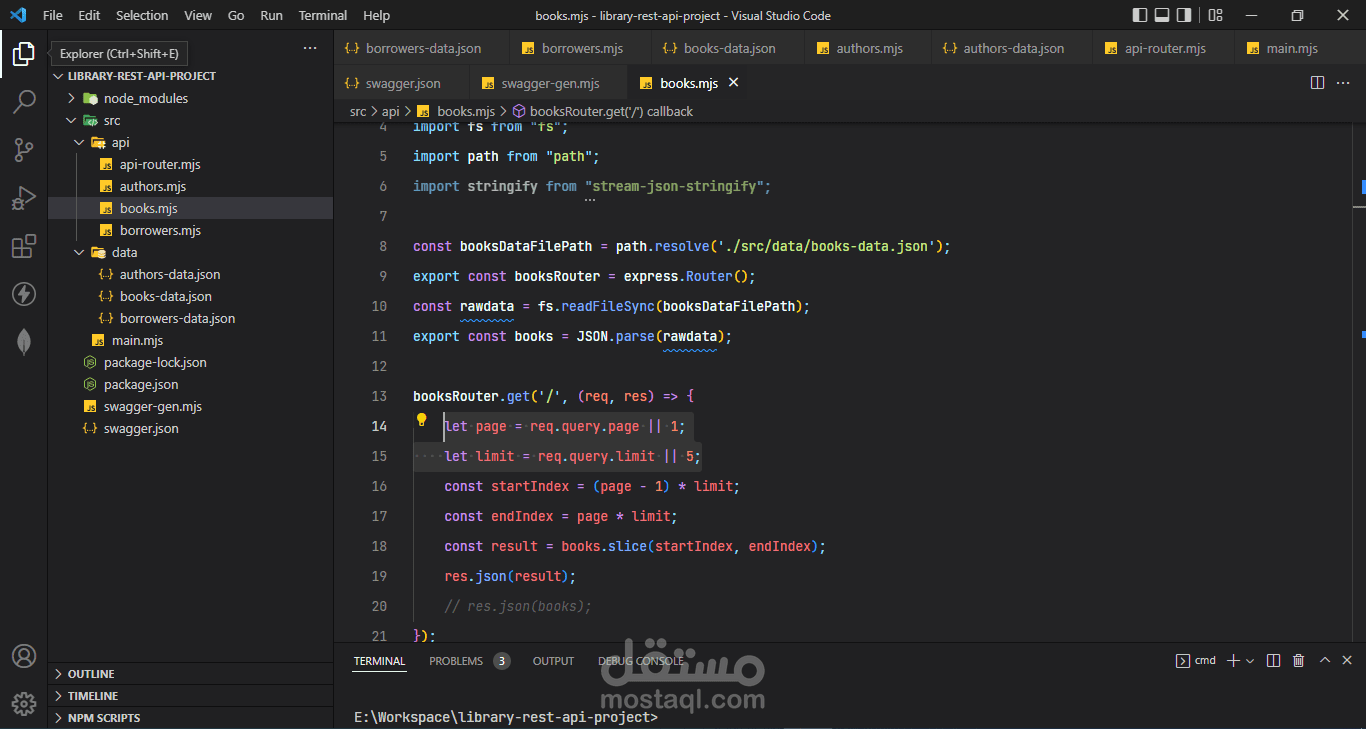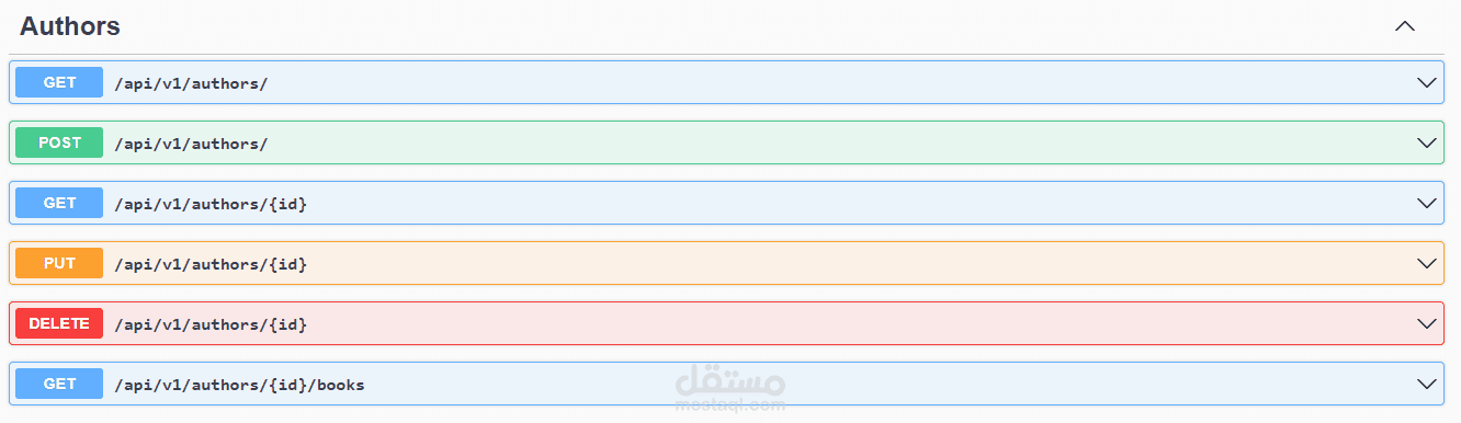 لقد قمت بإنشاء واجهة برمجة تطبيقاتREST API لمكتبة كتب تم تقسيمها إلى 3 أقسام: