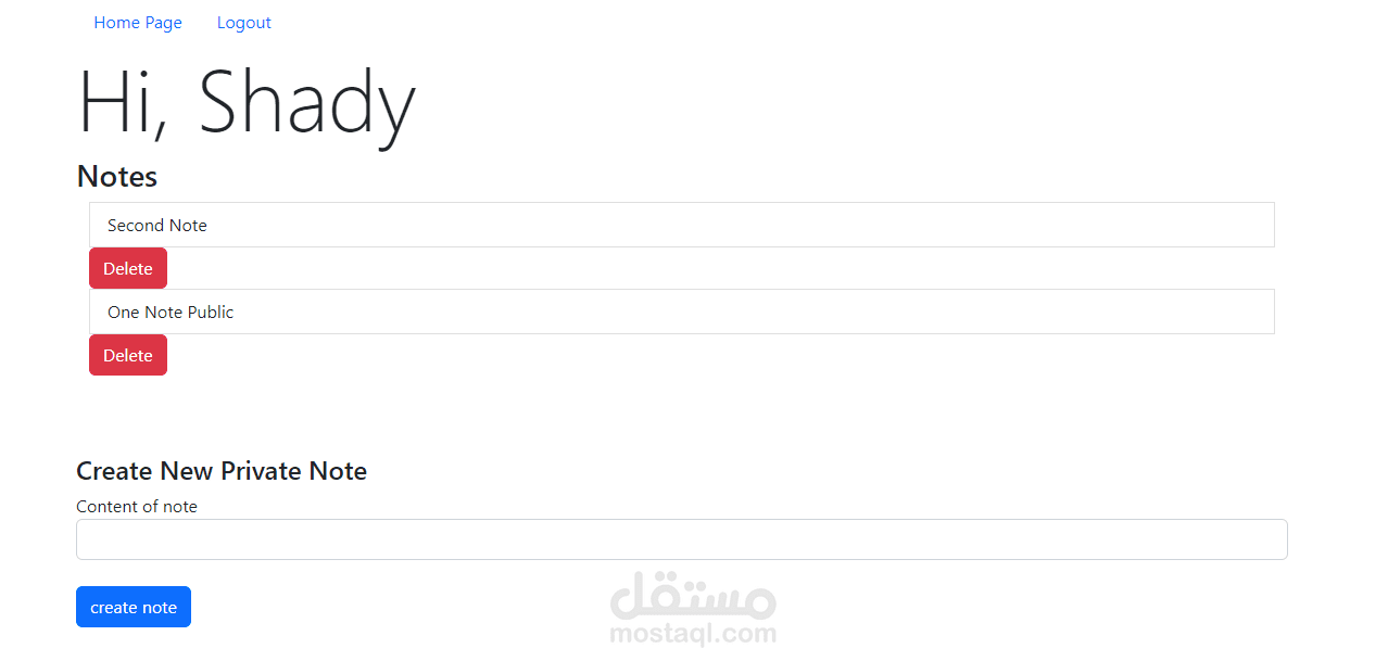 2. تسمح صفحة "الملاحظات الخاصة" للمستخدمين الذين قاموا بتسجيل الدخول فقط بالوصول إليها. وتقوم بعرض الملاحظات الخاصة بكل مستخدم.