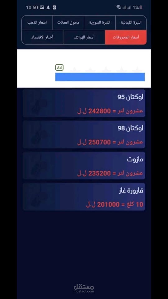 كما ويمكنك من متابعة اسعار المحروقات اول باول