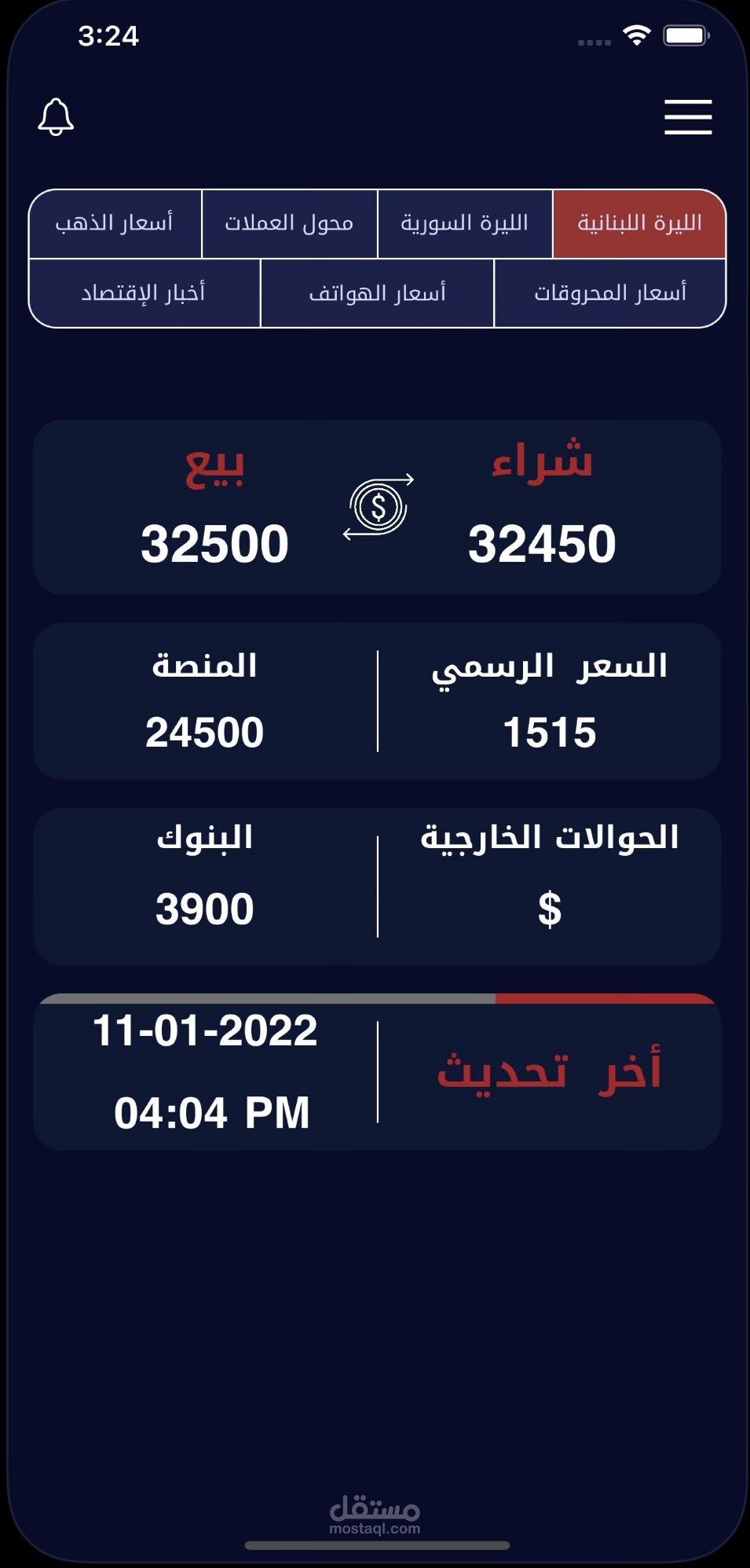عبارة عن تطبيق لمتابعة اسعار العملات مقابل الدولار الامريكي اولا باول
