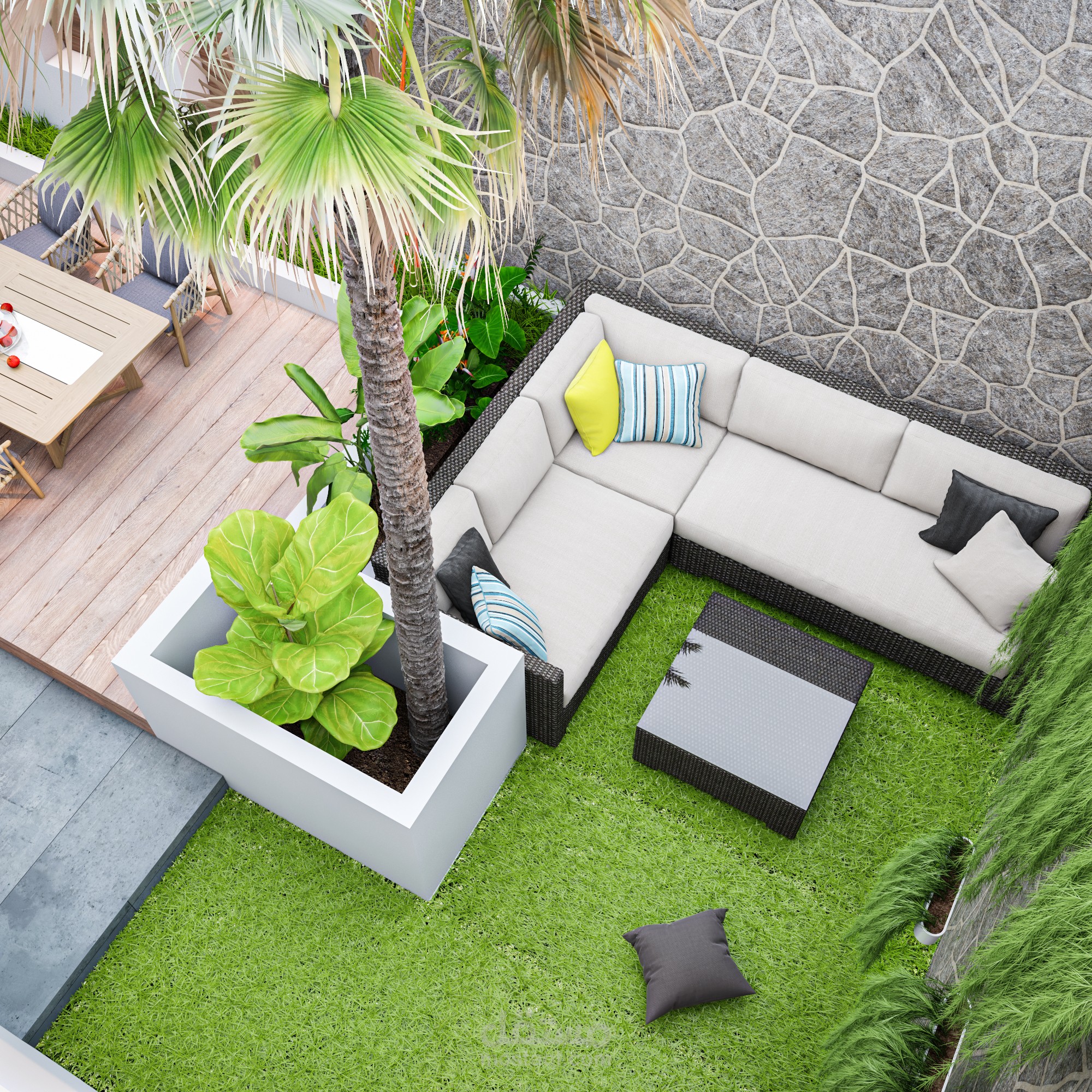 تصميمي لحديقة خلفية ضمن فيلا في السعودية..