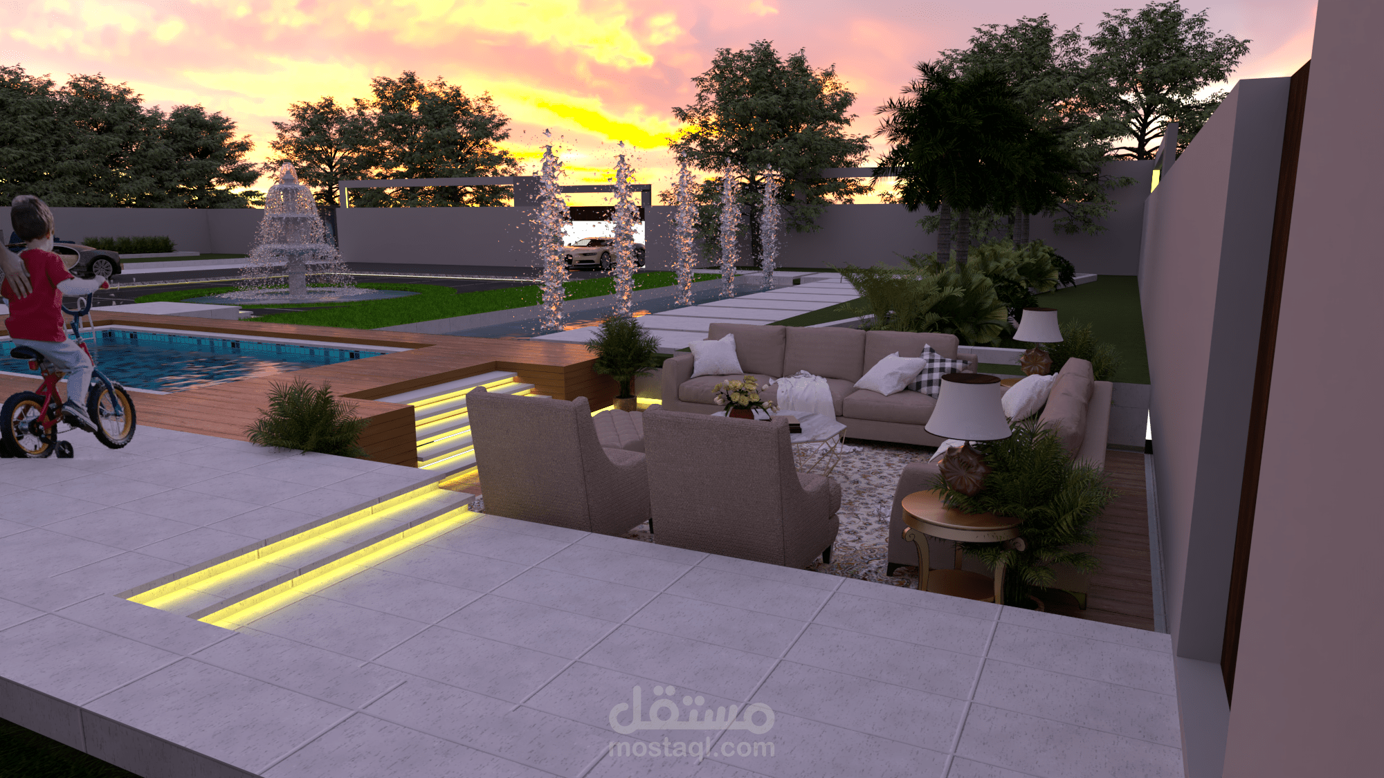 مجموعه تصاميم لتنسيق الفناء الخارجي لبعض الفيلل في دول مختلفة,,,