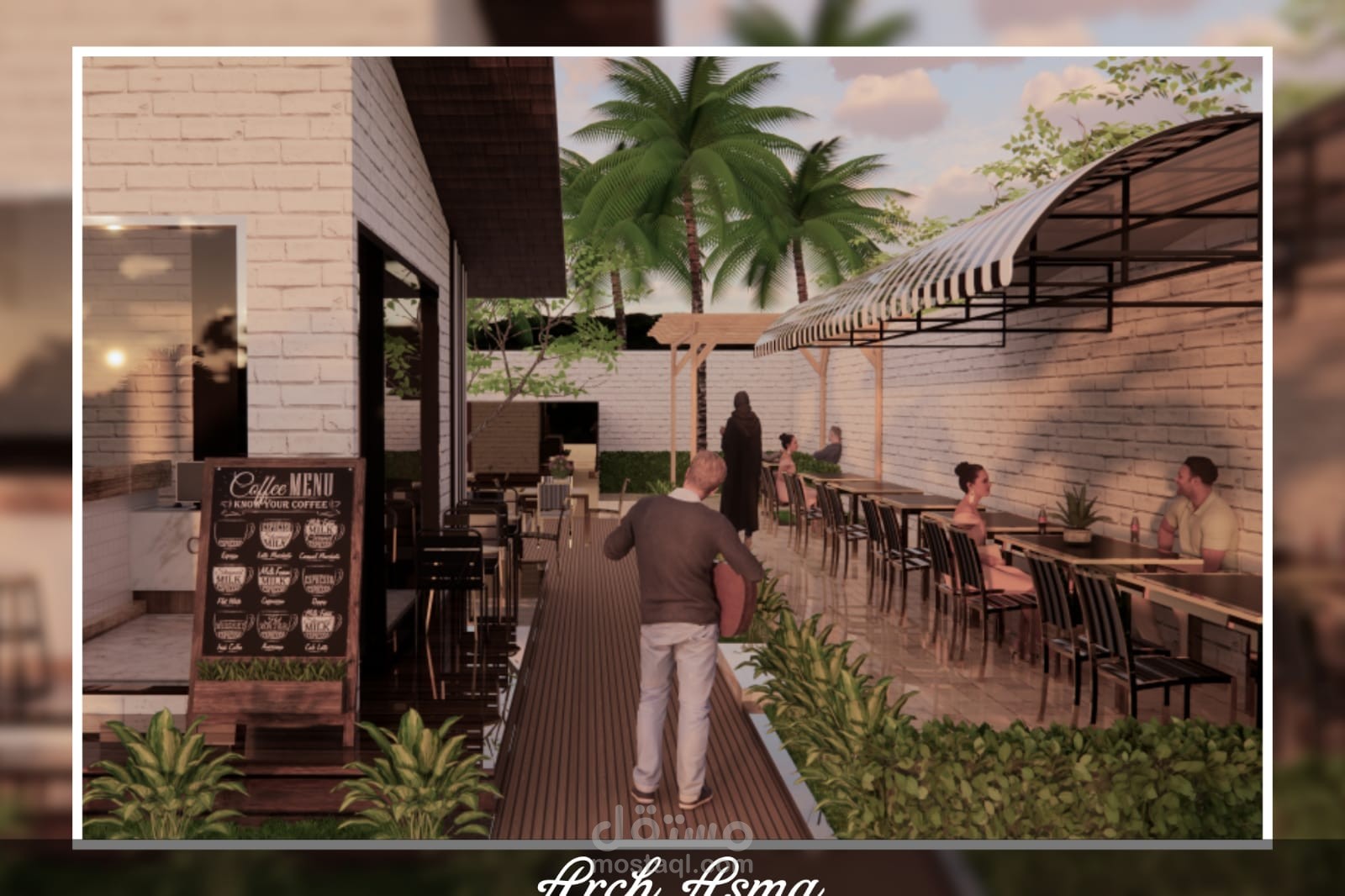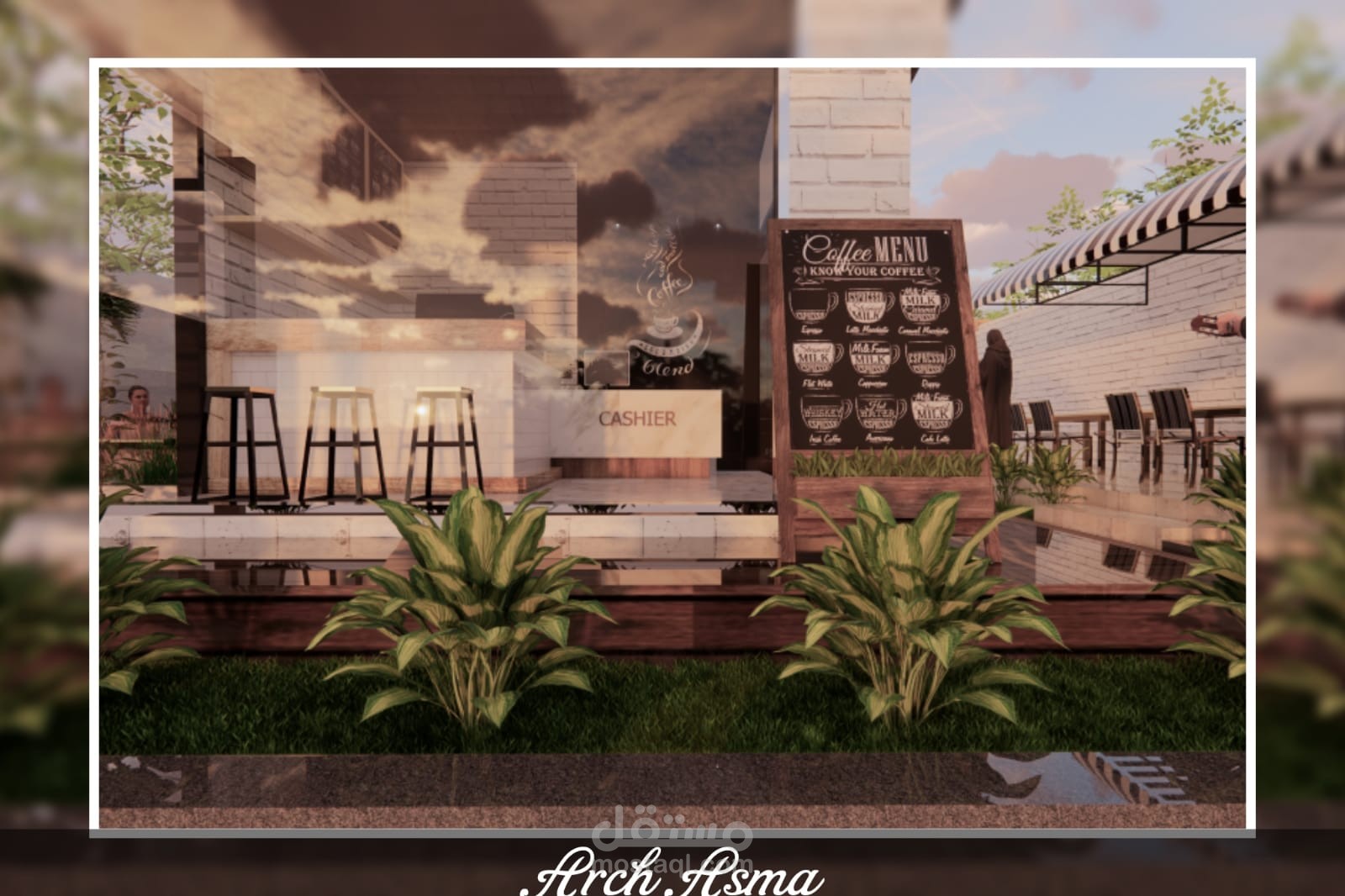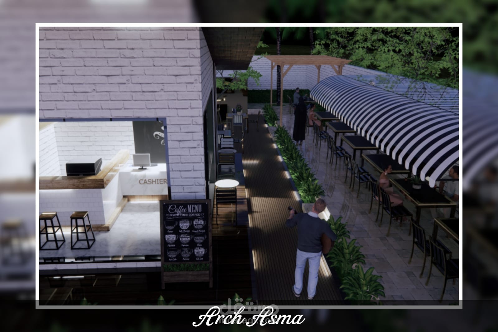 تصميم كفي شوب مع استراحة خارجية بسيط لعميل ف السعودية العربية
