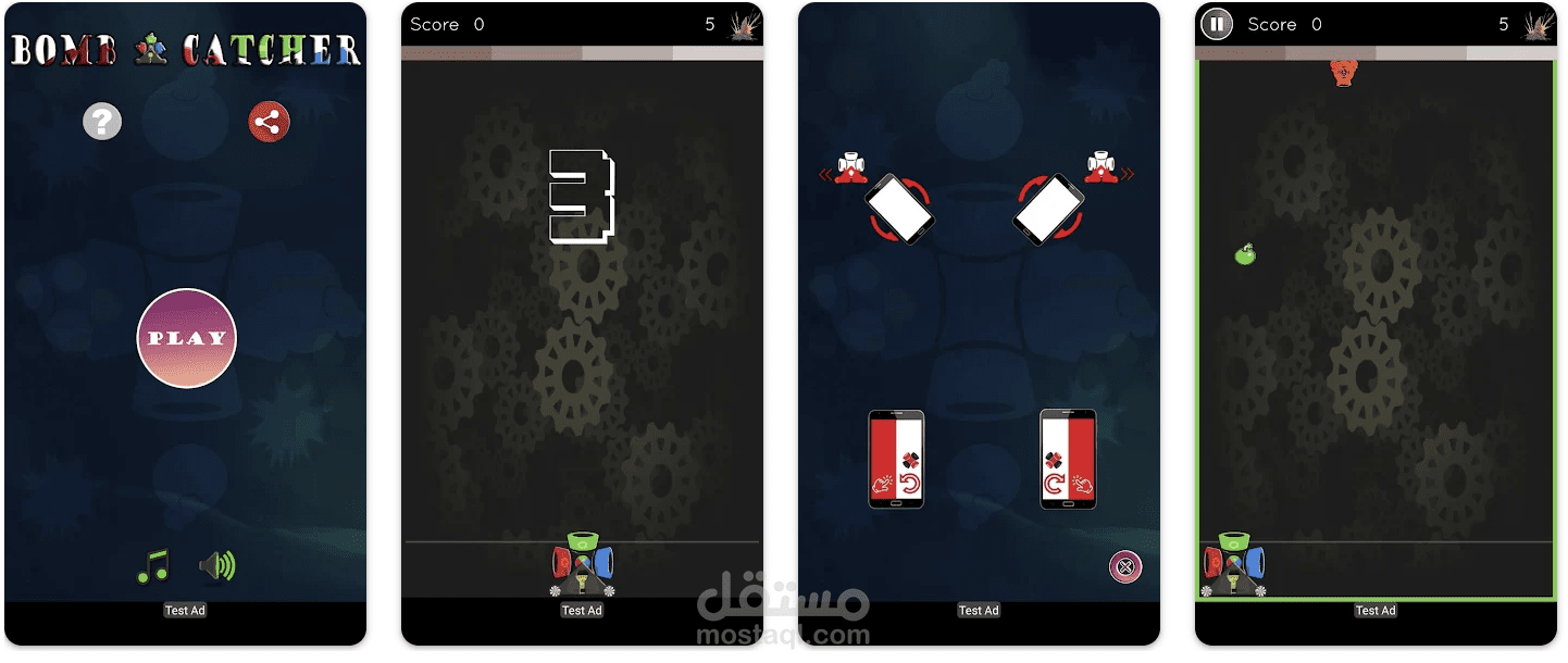 - قم بتدوير وتحريك الماسك الآلي للقبض على القنابل بلونه.