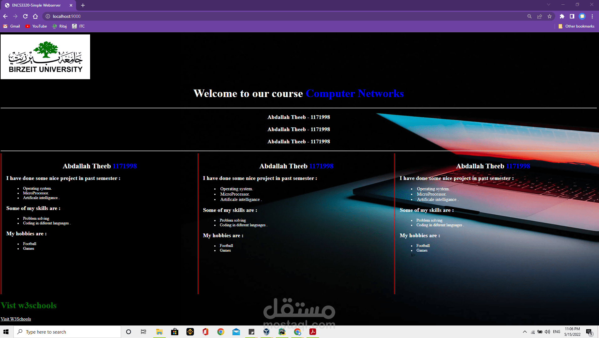 3- if the request is an .html file then the server should send the requested html file with Content-Type: text/html. You can use any html file.