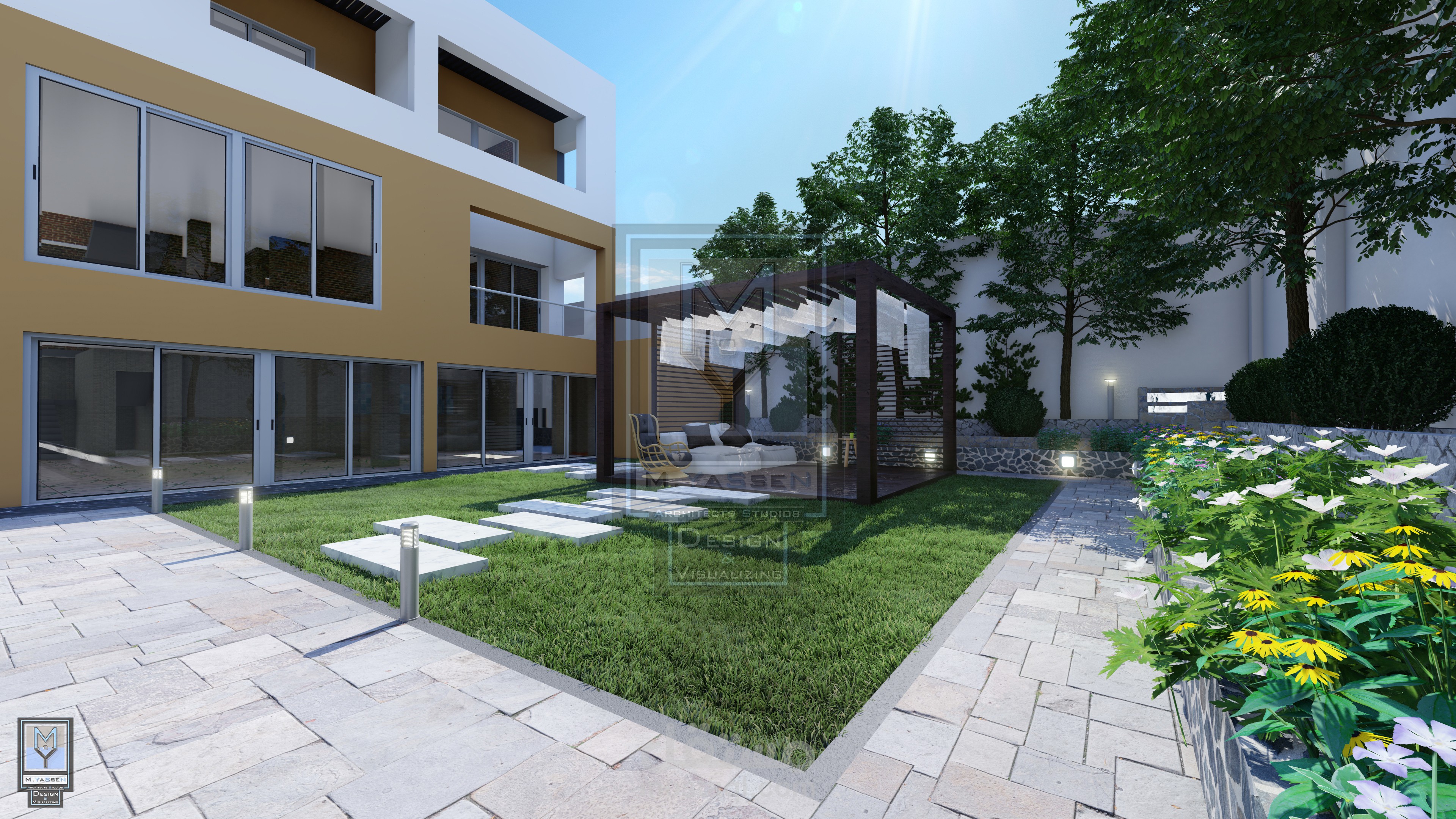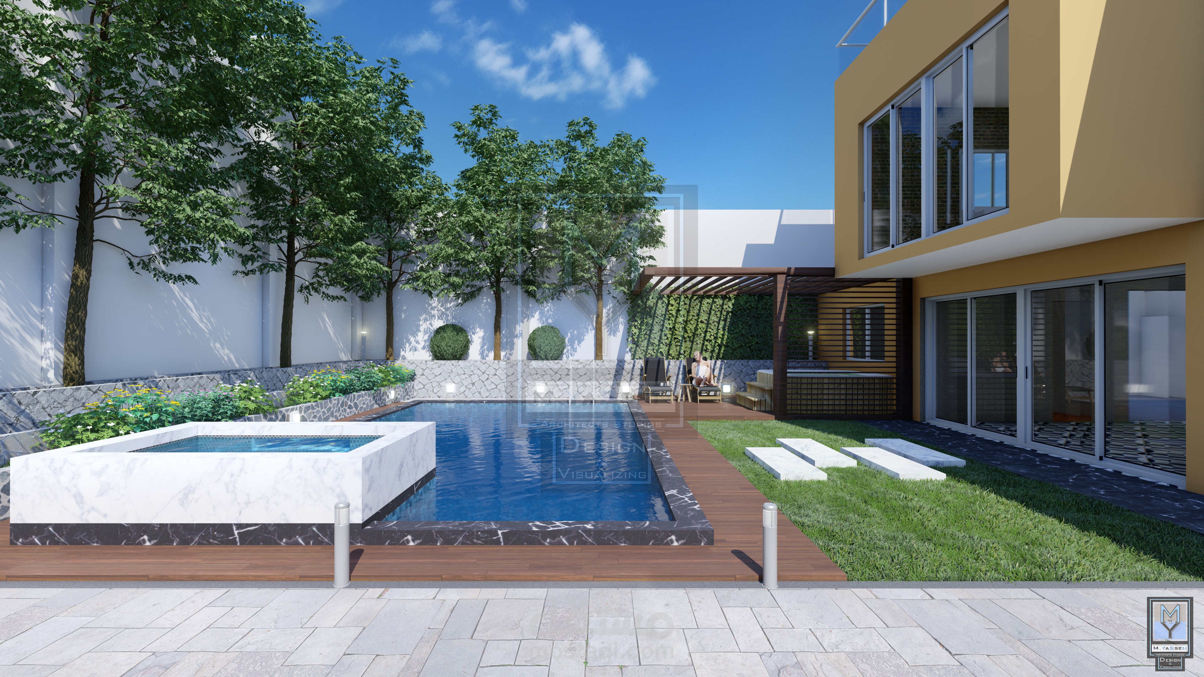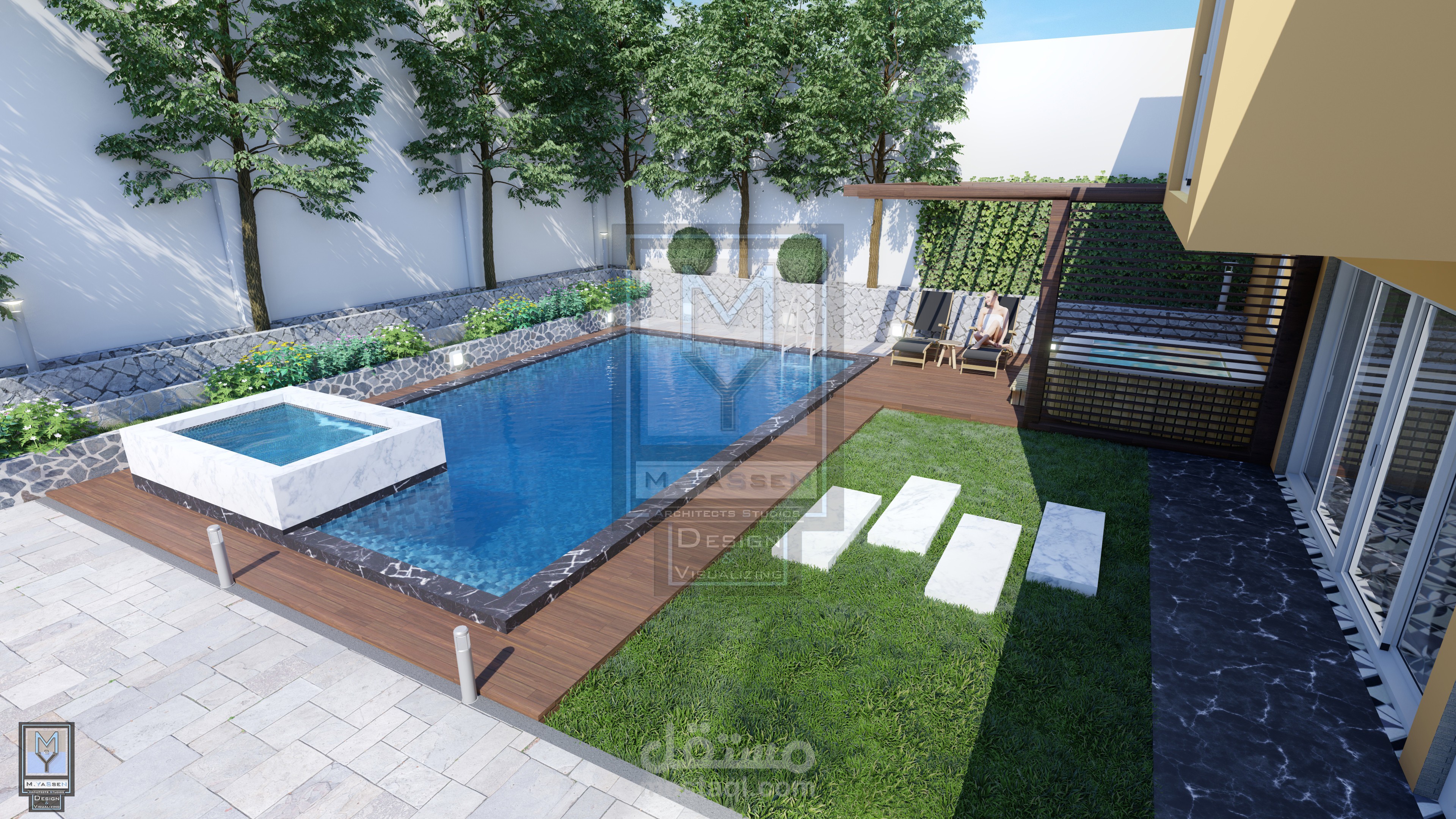 تصميم حديقة خلفية لفيلا سكنيه Landscape Design