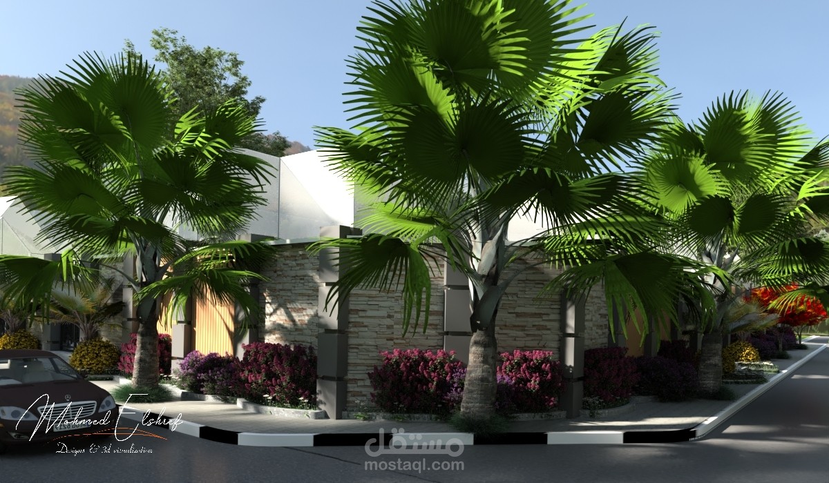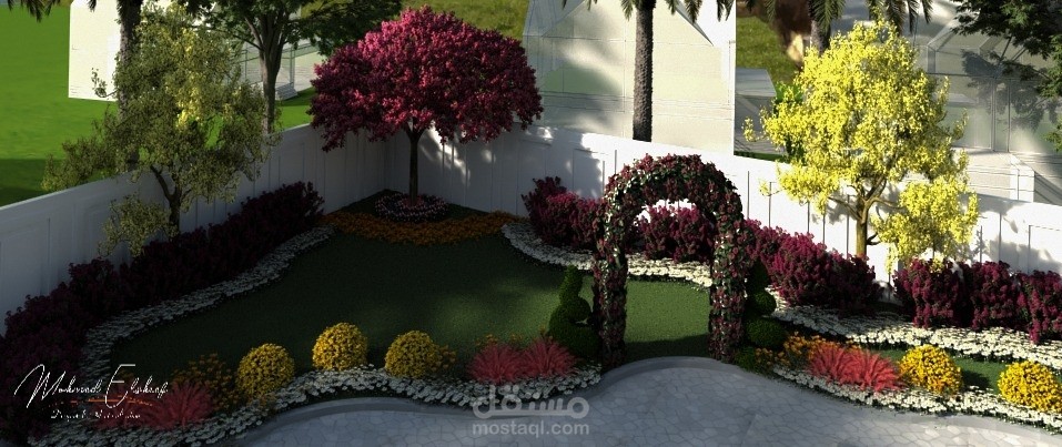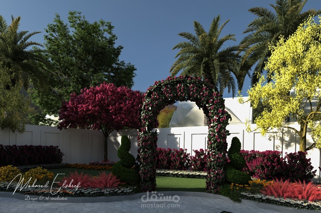 تصميم حديقة خاصة بفيلا سعوديه فى مدينه الرياض