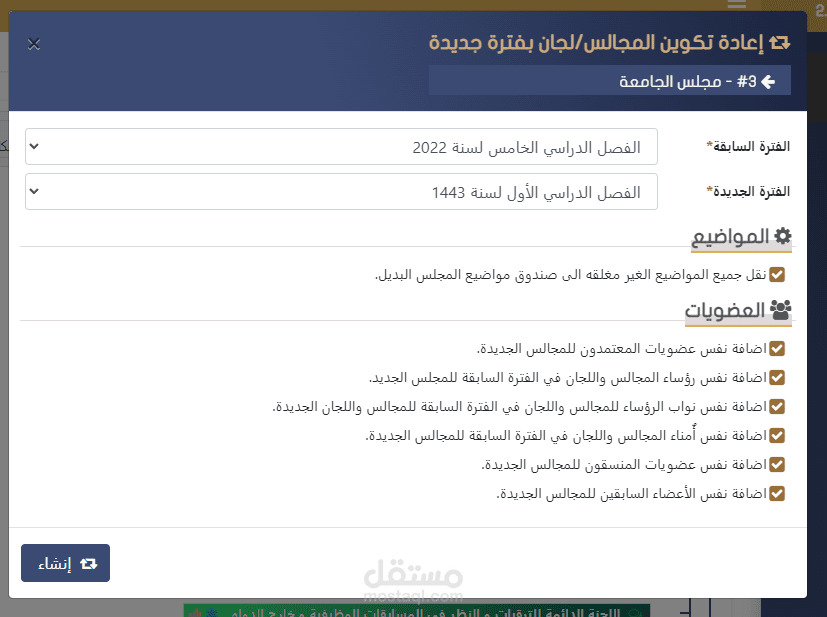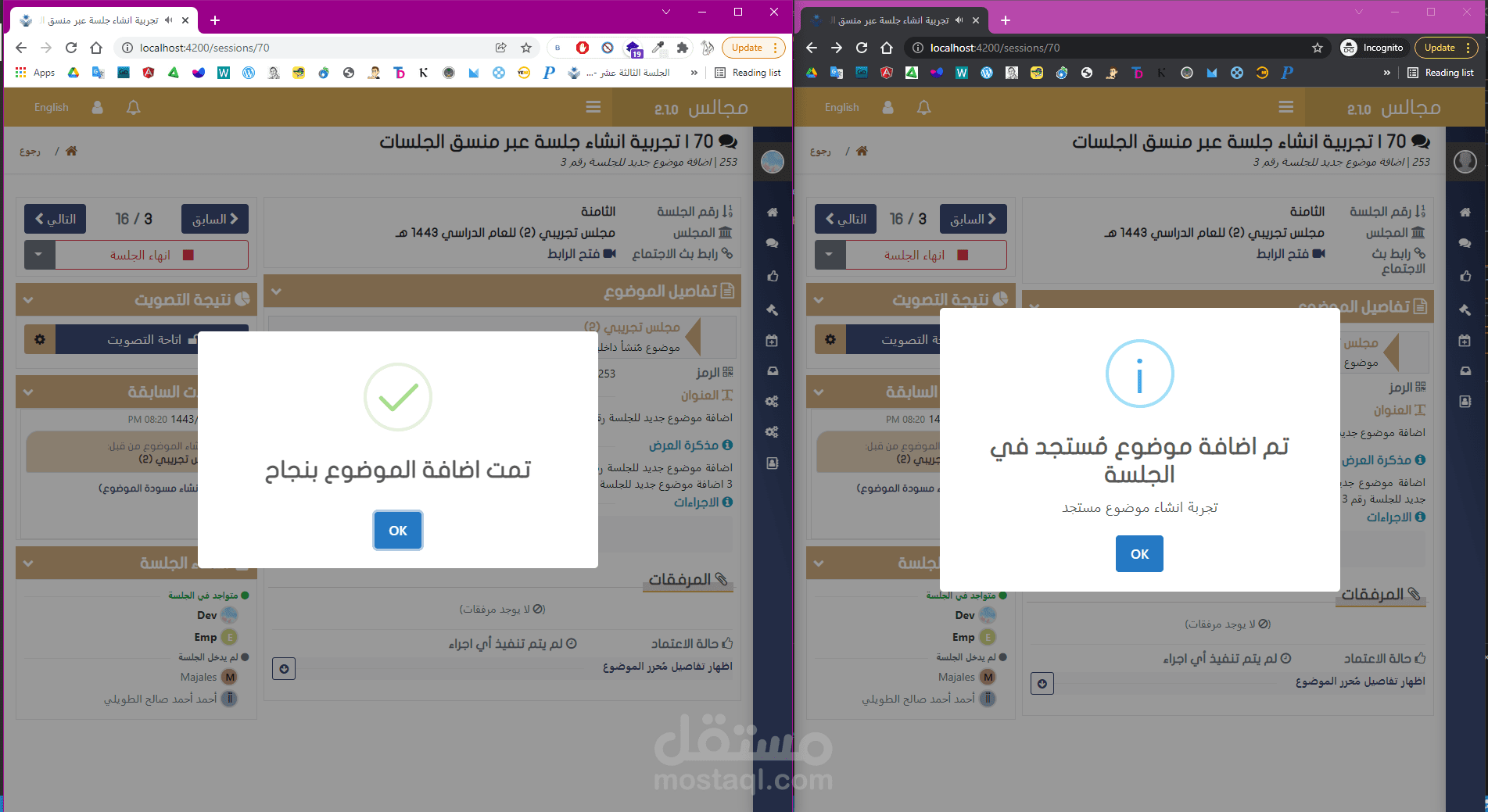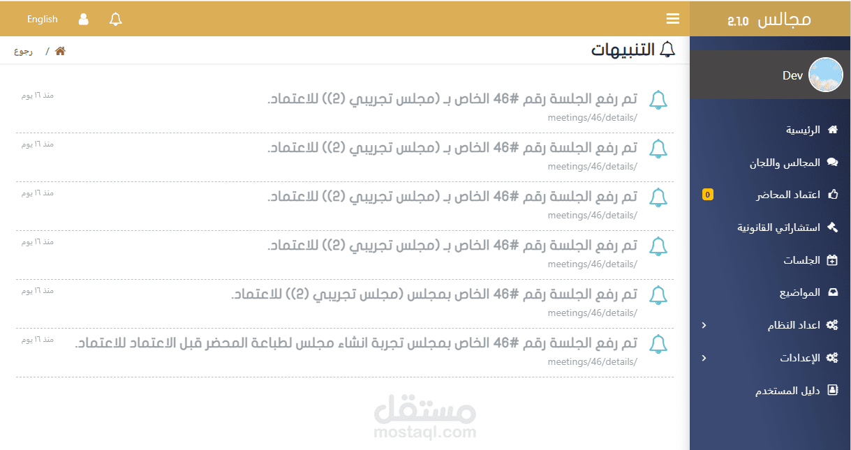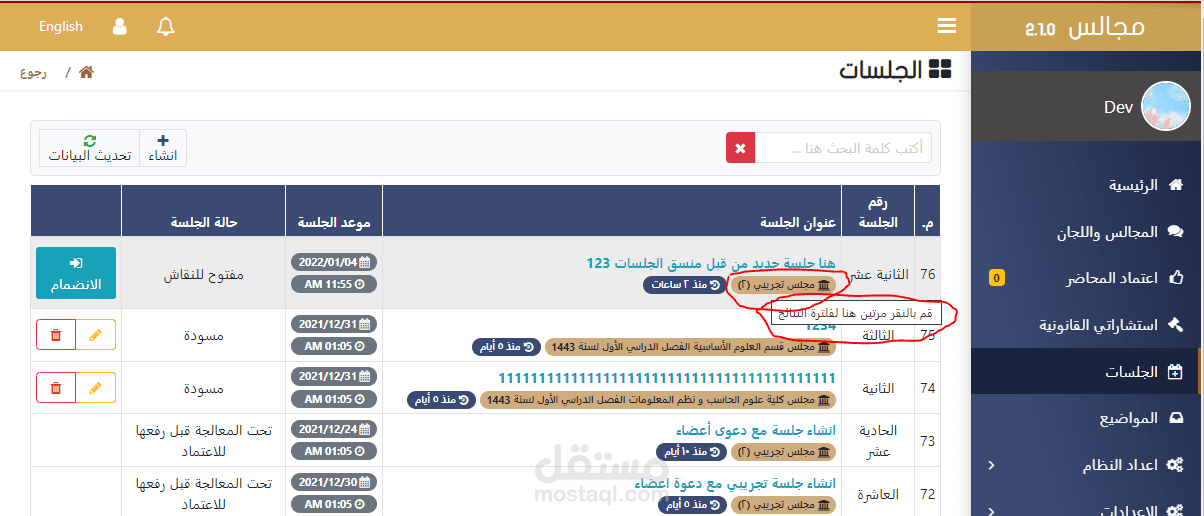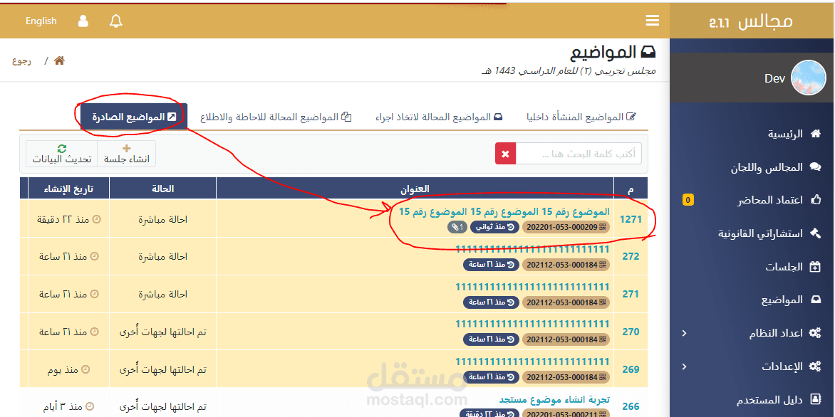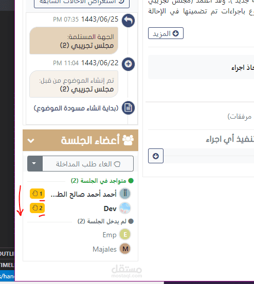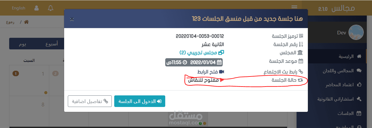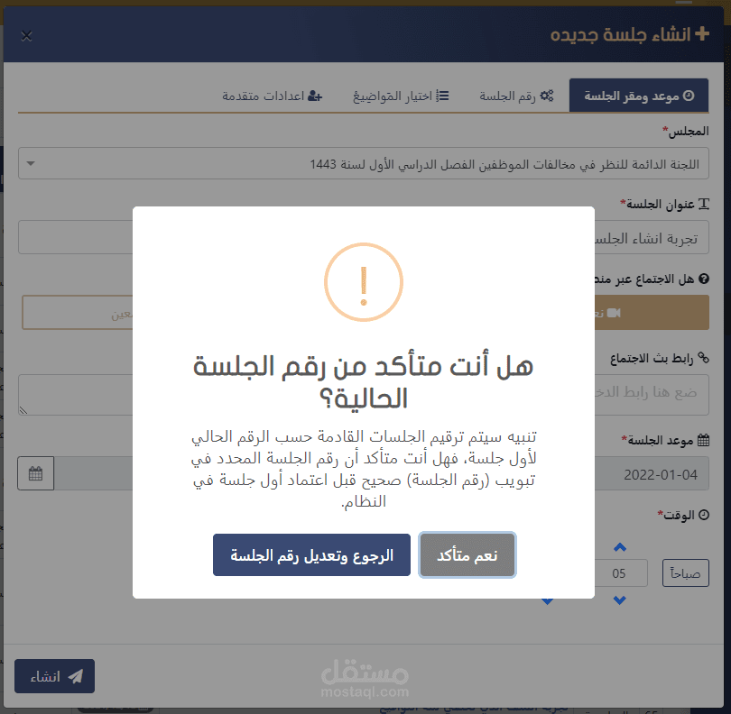 •اعتماد الجلسات من داخل النظام دون الحاجة لإرسال معاملة عبر نظام الاتصالات الإدارية.