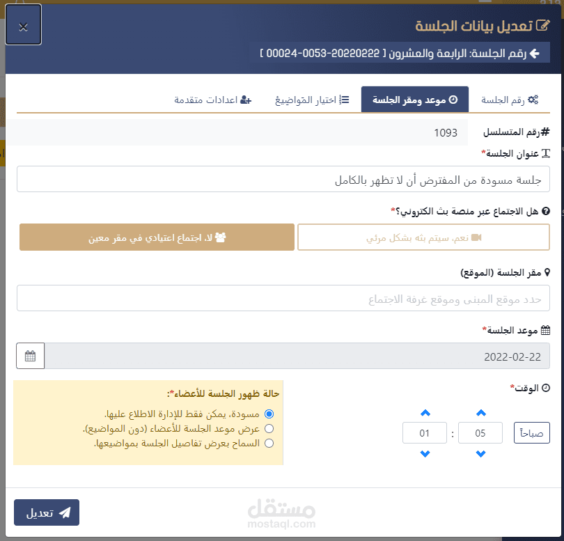•إمكانية تعديل وتحرير الموضوع اثناء عقد الجلسة.