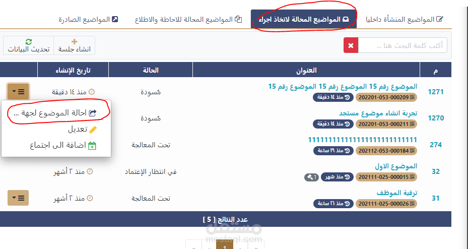 •تتبع المواضيع والإجراءات المتخذة عليها.