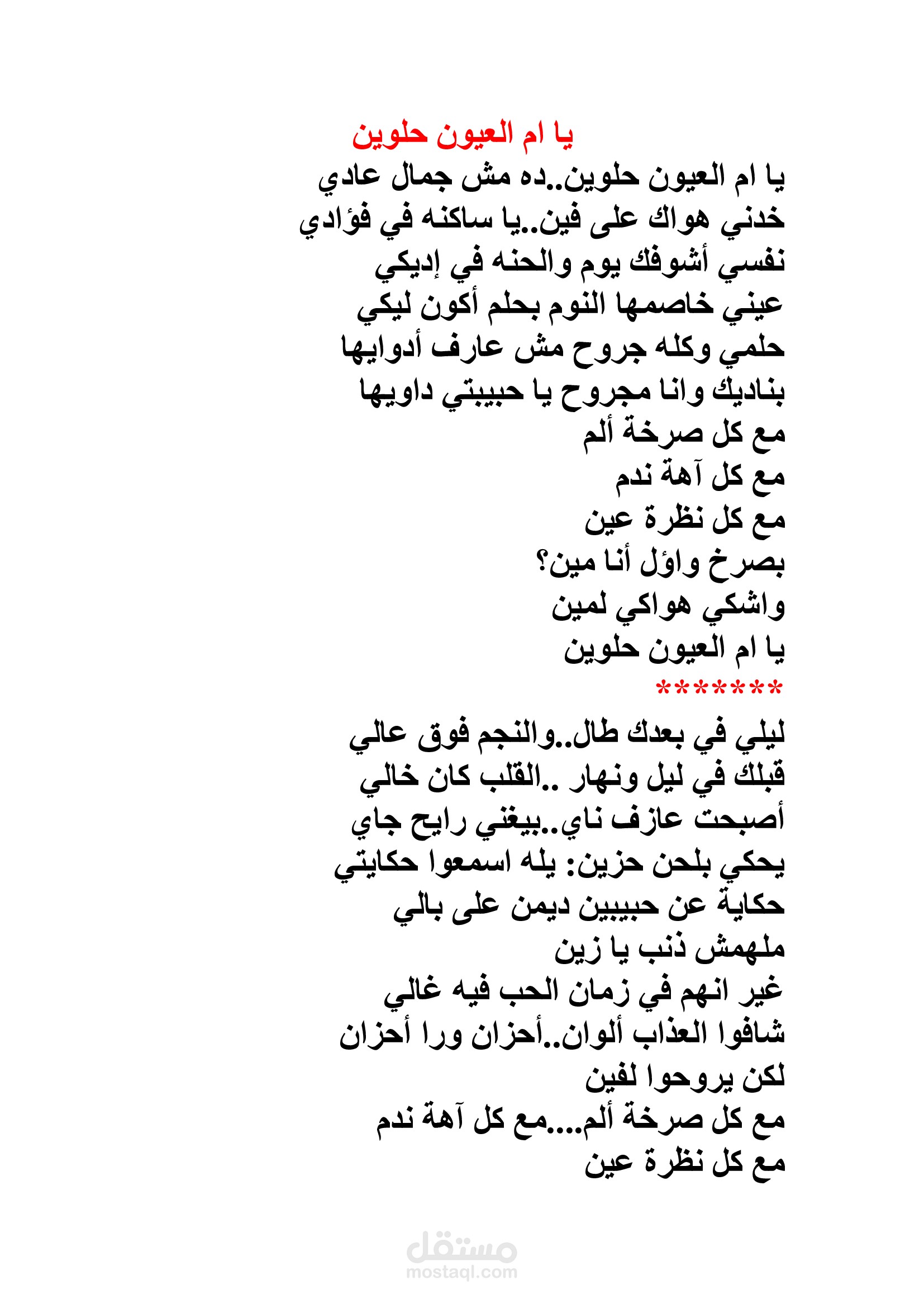 مقطوعة من أغنية طويلة بعنوان يا ام العيون حلوين.