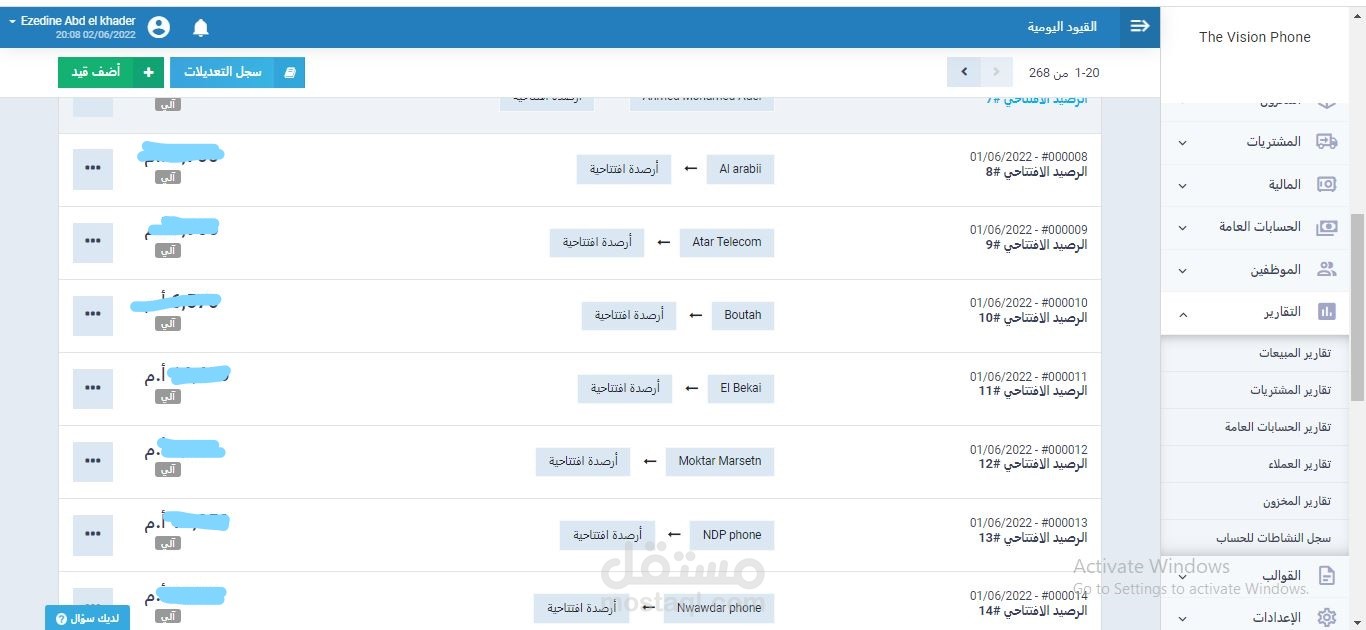 مزامنة حساب شركة هواتف خلوية من برنامج محاسبي إلى برنامج دفترة ونقل الحسابات وعمل قوائم مالية وكشوفات حسابات خاصة بالعملاء.