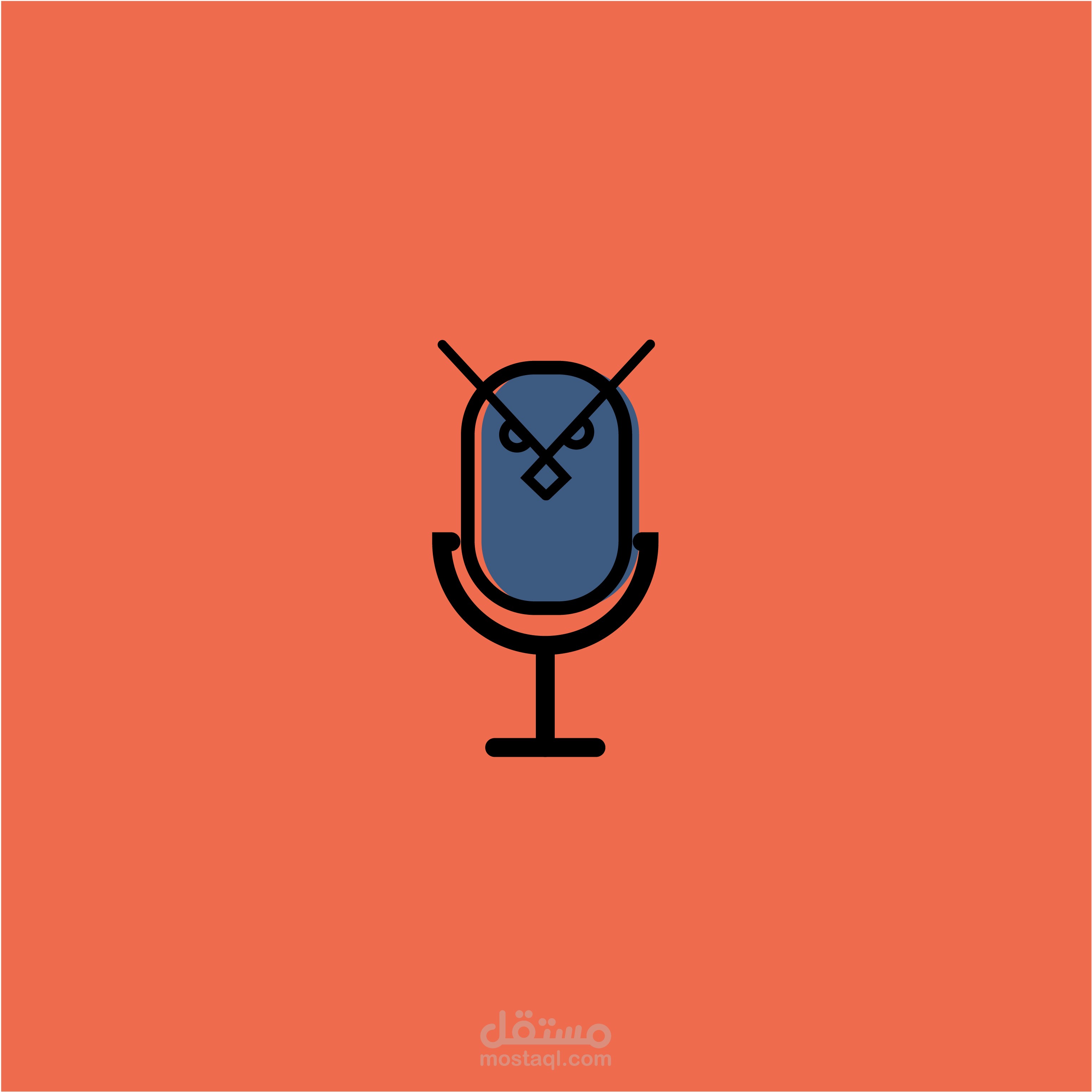 لوجو لي بودكاست البومة و هو دمج ميكرفون و الدي يرمز الي البودكاست و البومة