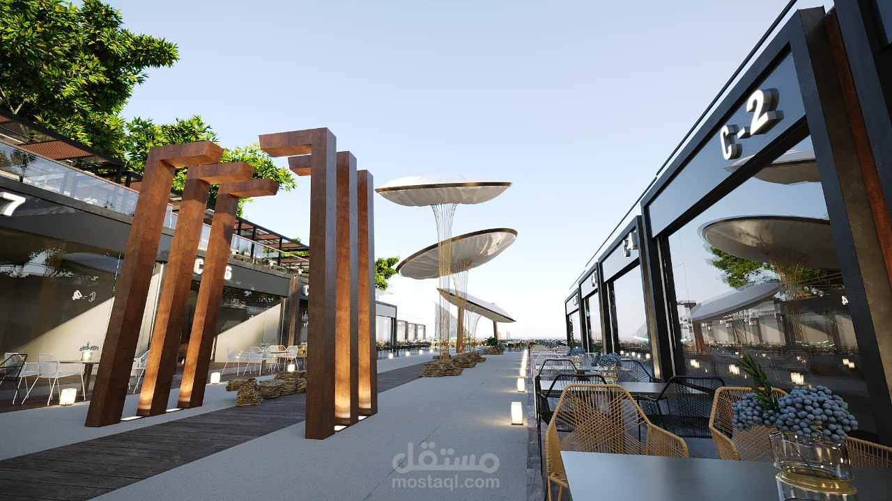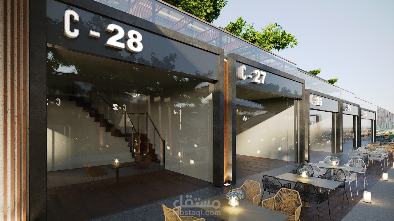 قمت باعاده التصميم المعماري و تقسيم المحلات و تصميم اللاند سكيب و منطقة الخدمات و عمل اللقطات المعماريه المناسبة سواء 2d او 3d