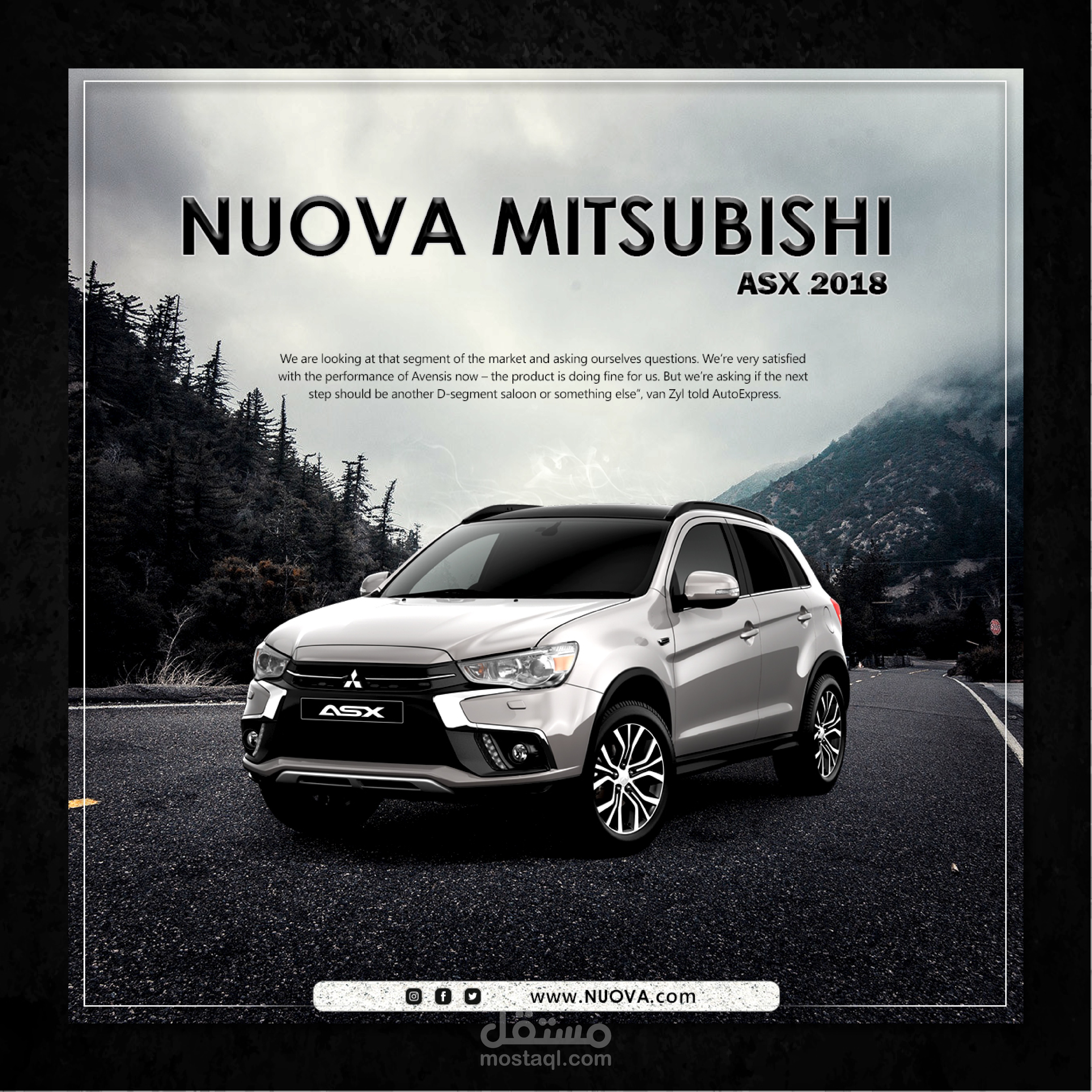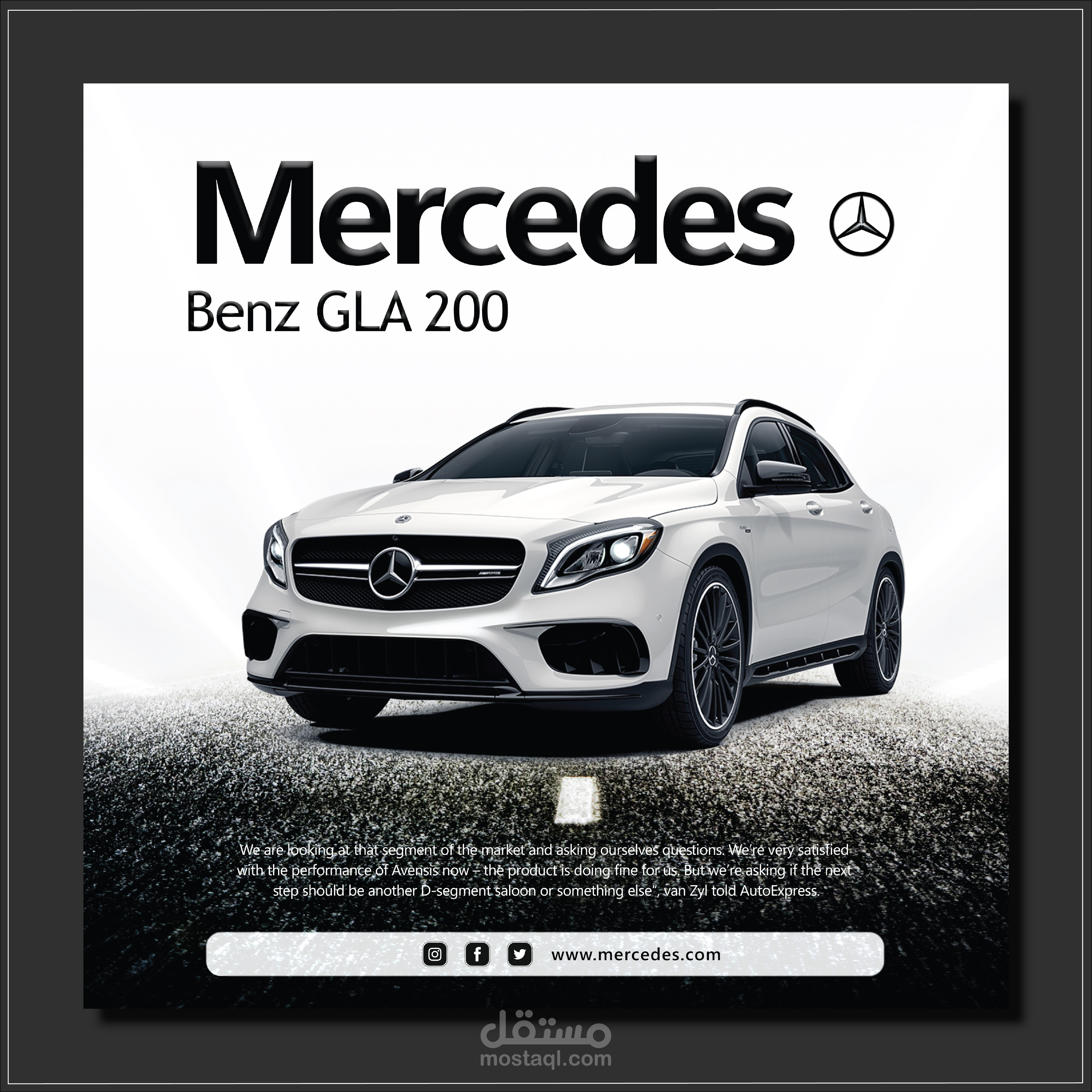 تصميم سوشيال ميديا يوضح نوع وشكل السيارة