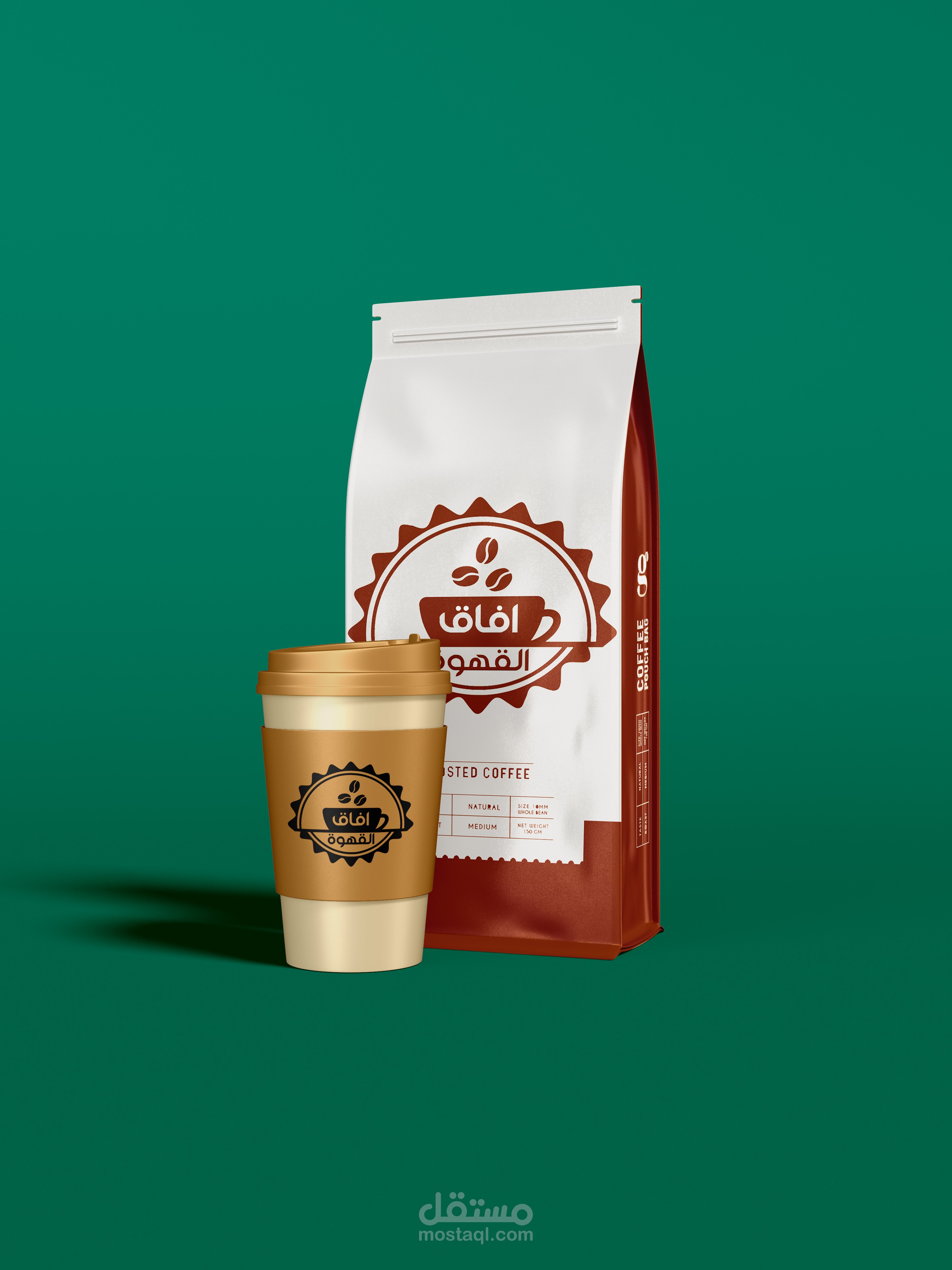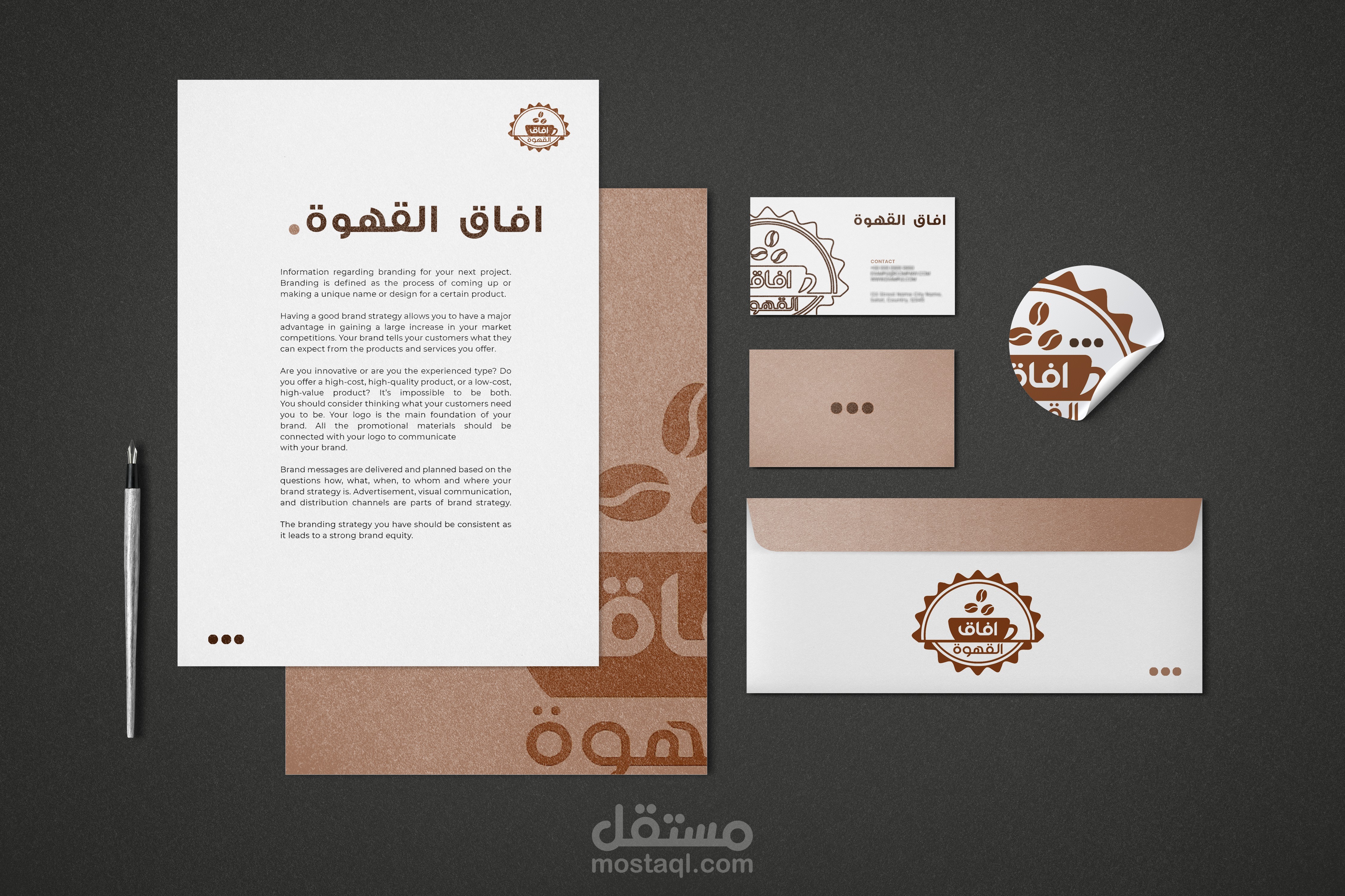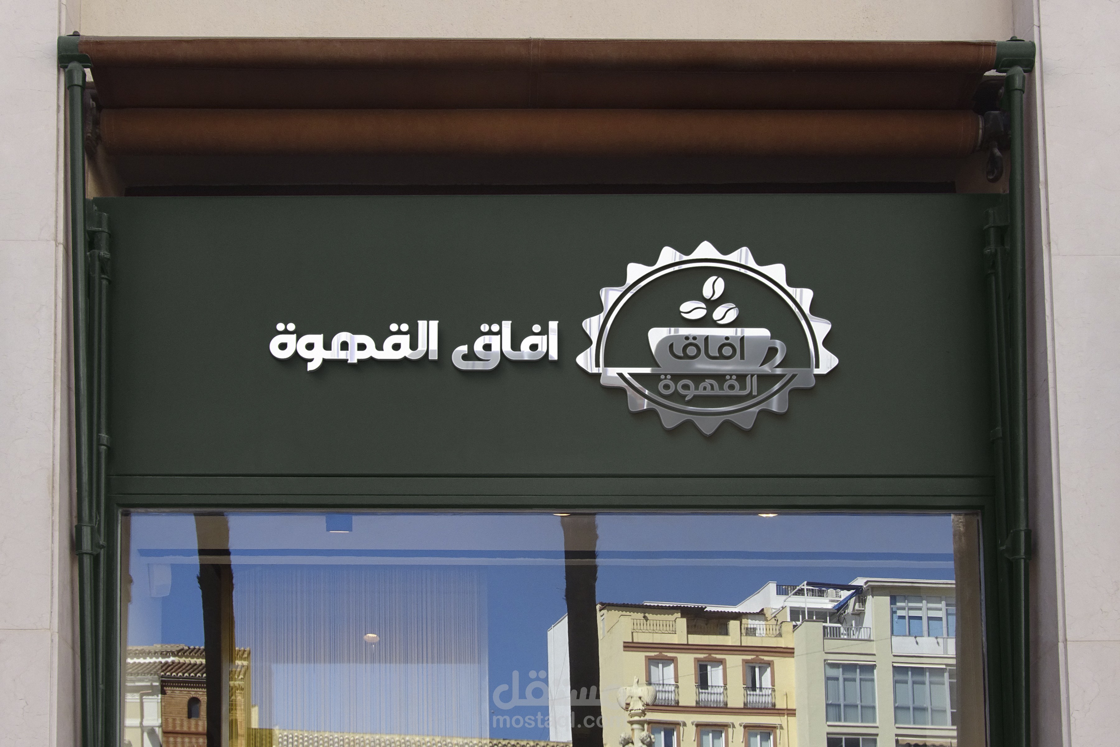 هوية بصرية لكوفي شوب يسمى افاق القهوة