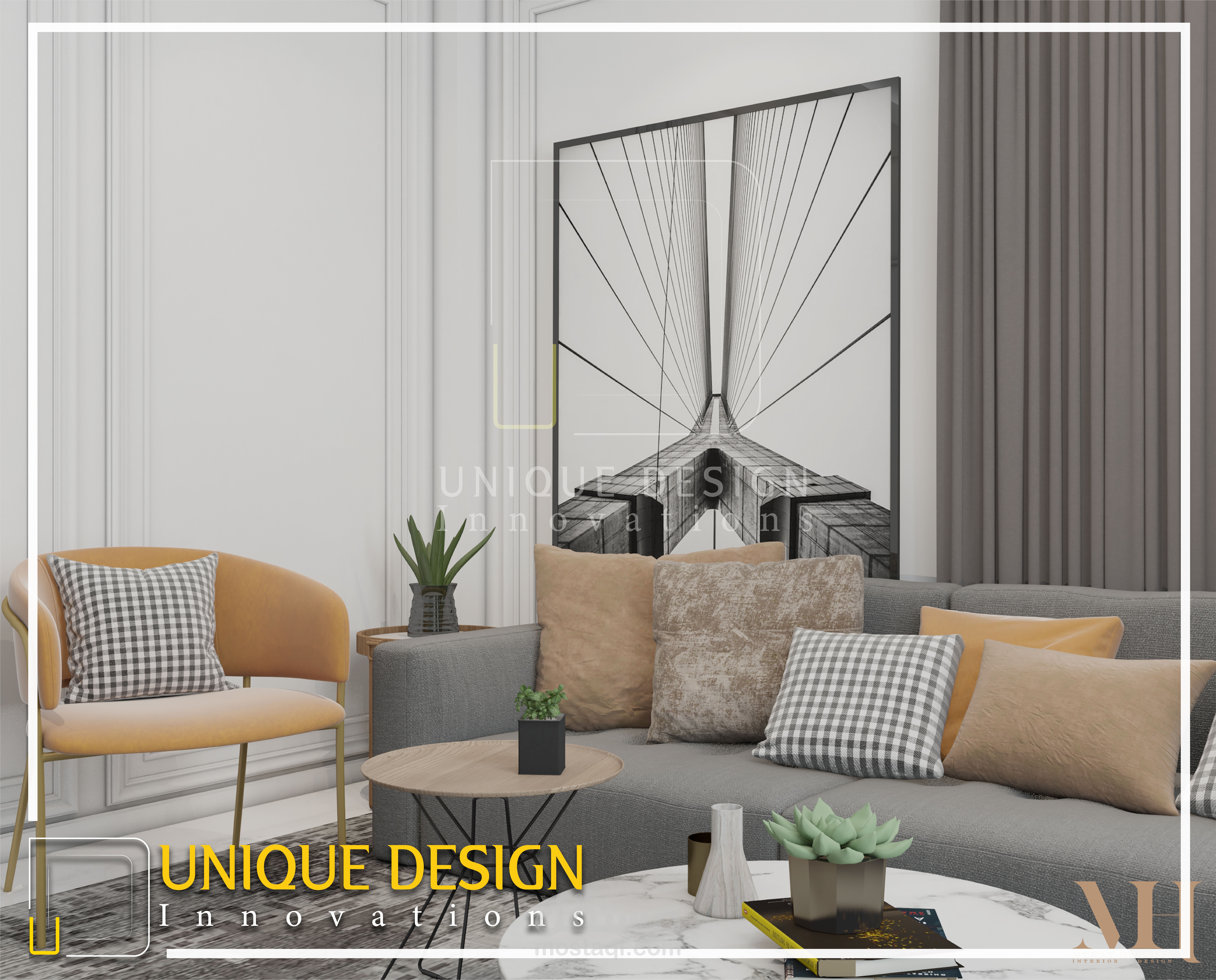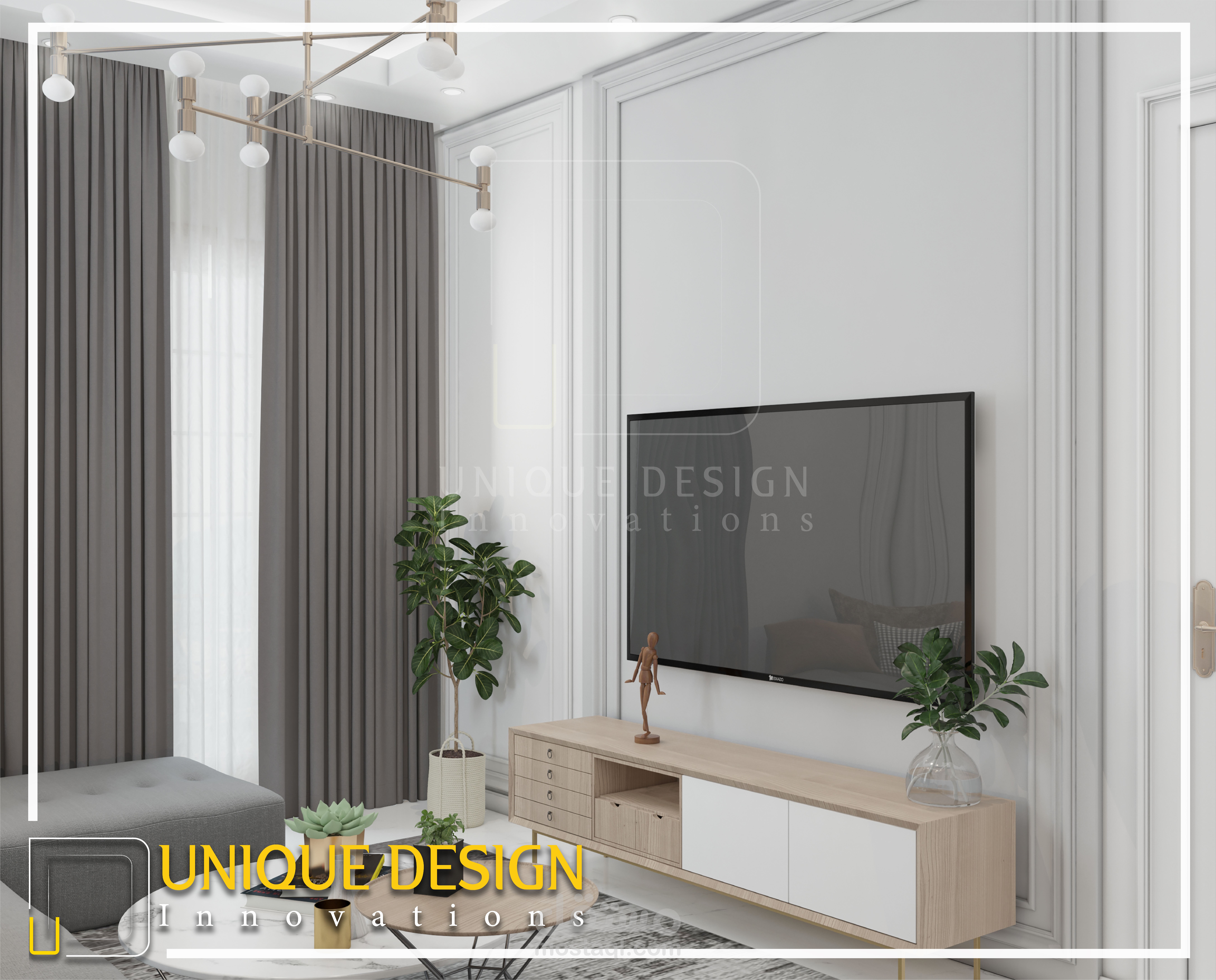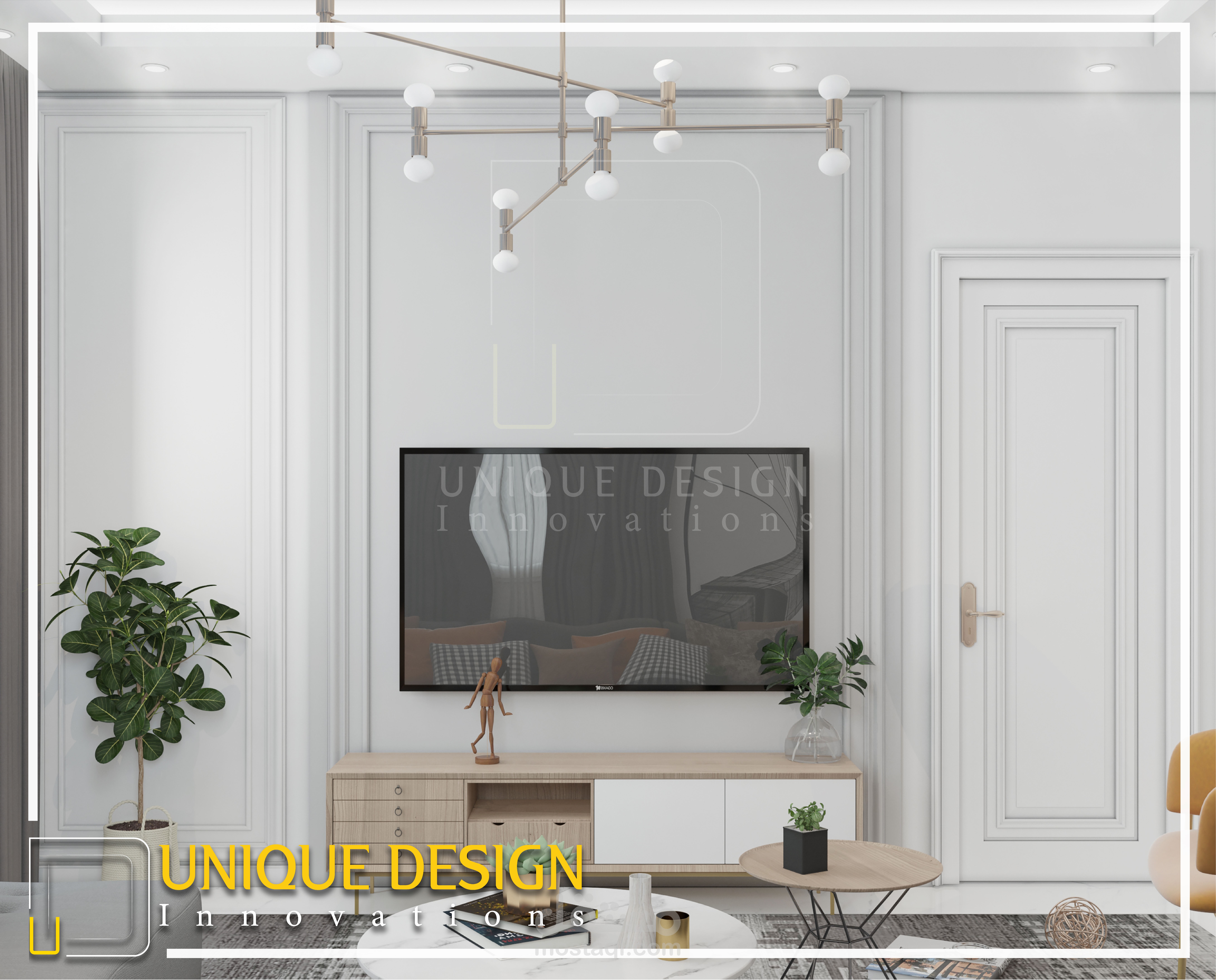 تصميم من الطراز الكلاسيك الحديث لاستقبال وغرفة طعام من أحدث أعمال يونيك ديزاين اننوفيشن.