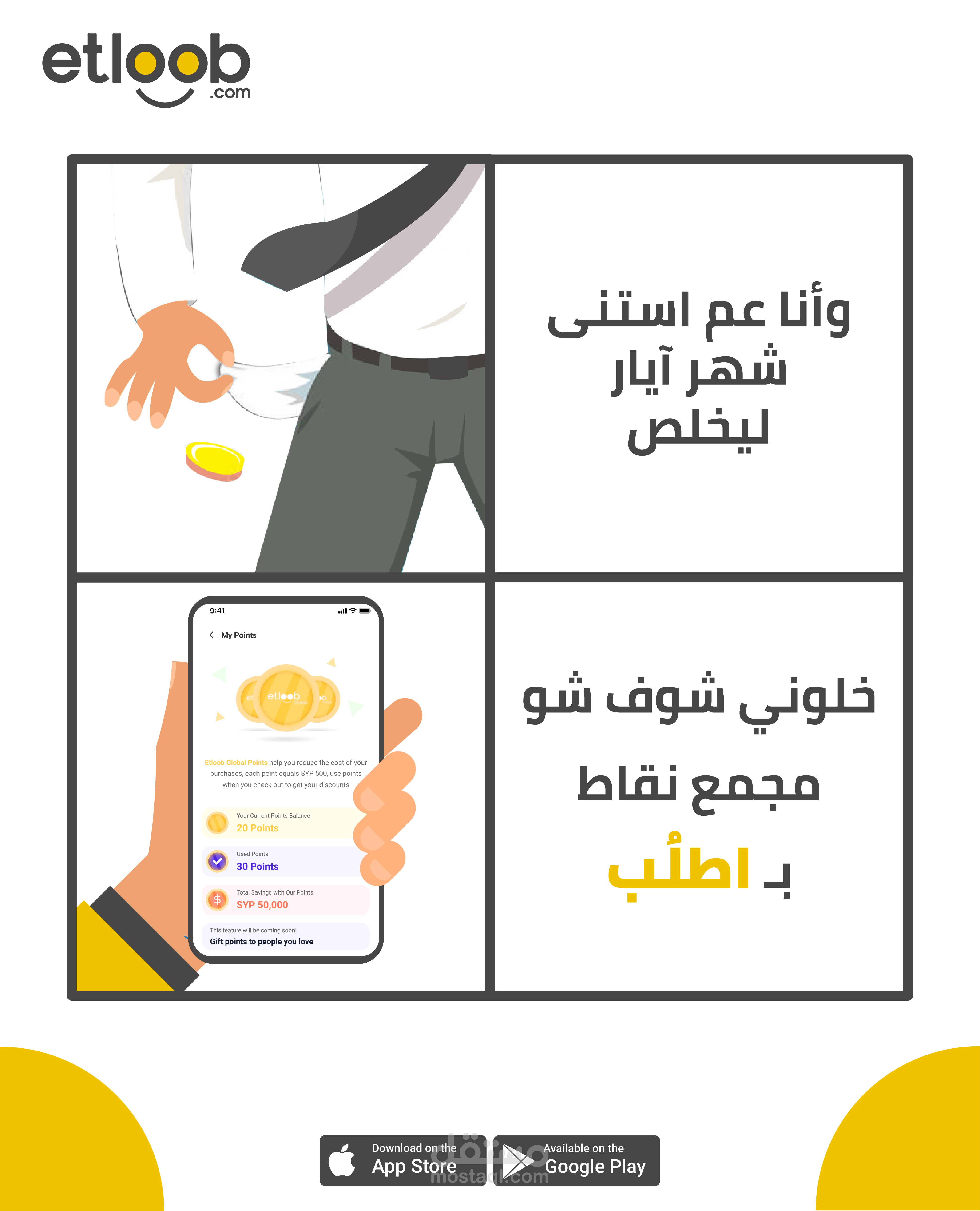 تصميم بوستات سوشال ميديا جذّابة بأفكار تسويقية إبداعية لصالح متجر "اطلُب" أول متجر الكتروني مرخّص في سوريا.