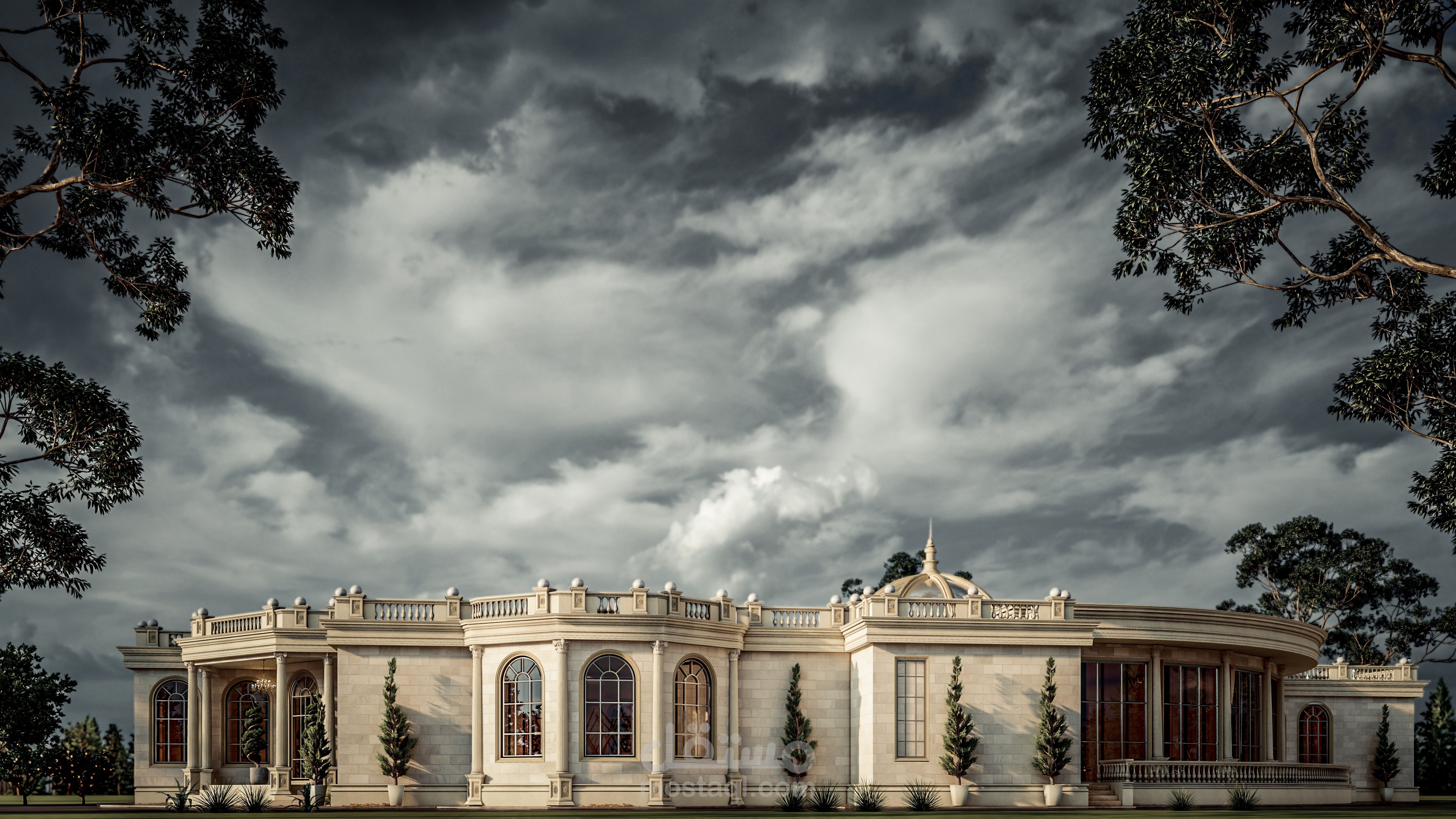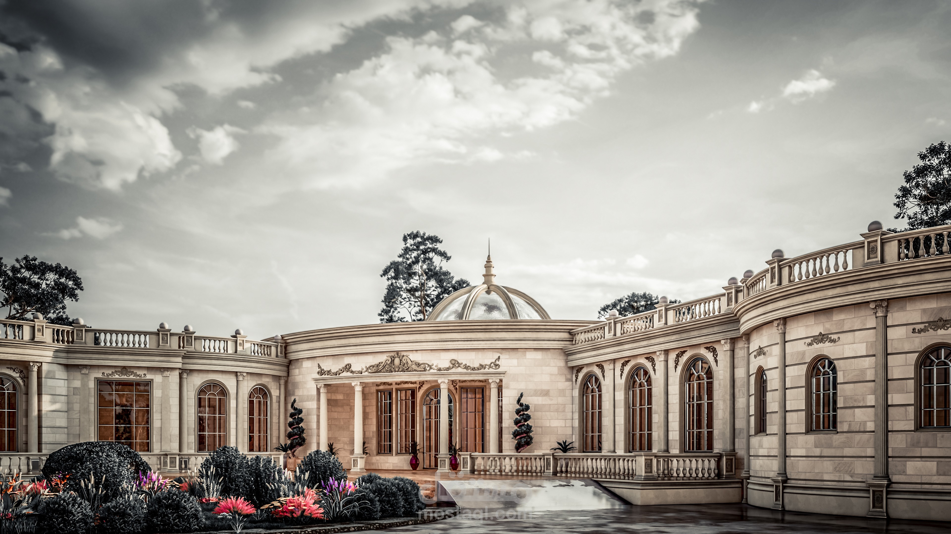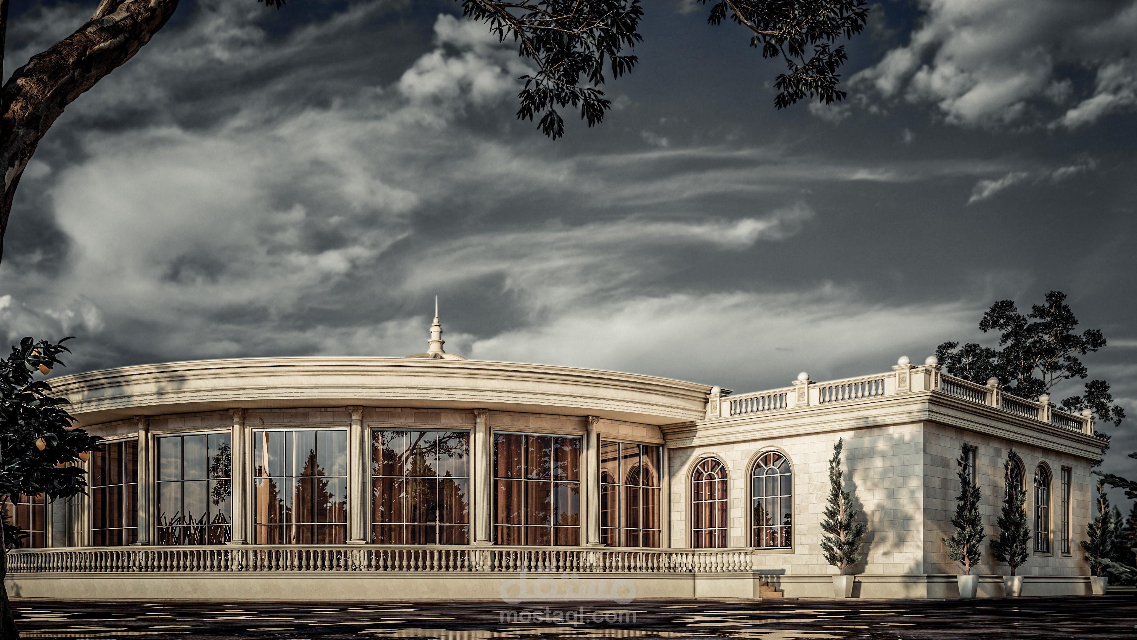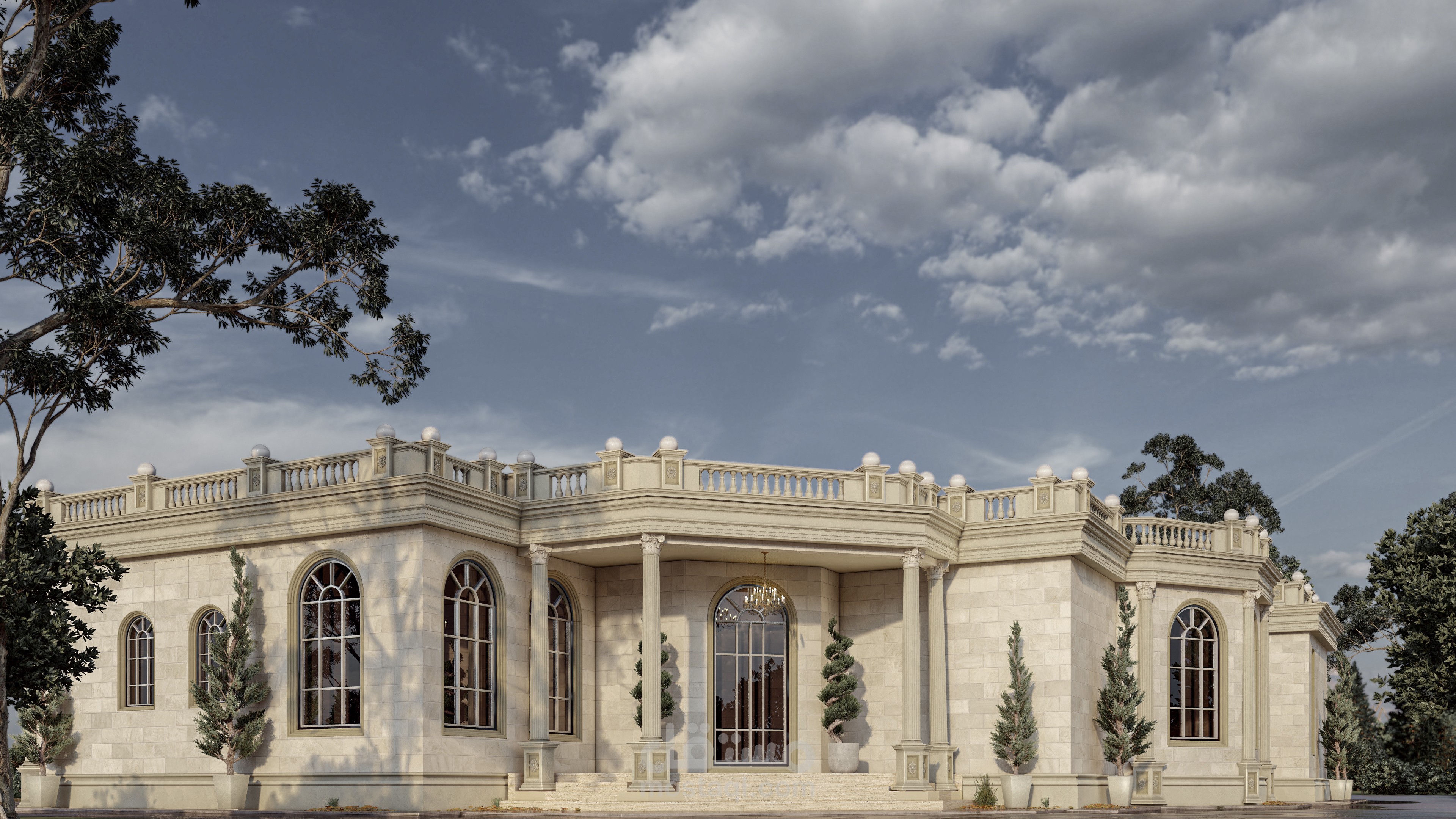 تصميم خارجي لقصر ضيافي بطراز كلاسيك في امارة ابو ظبي