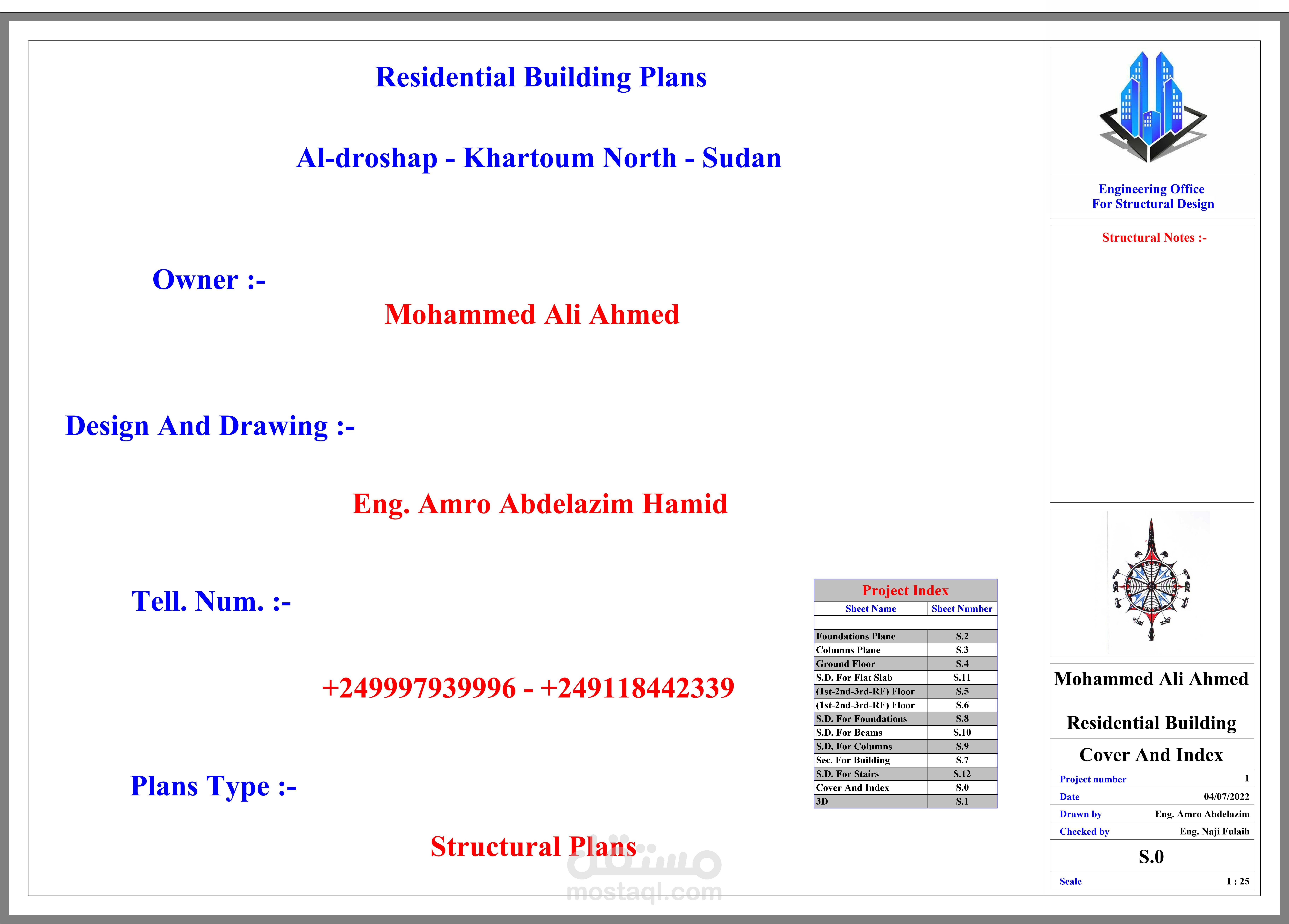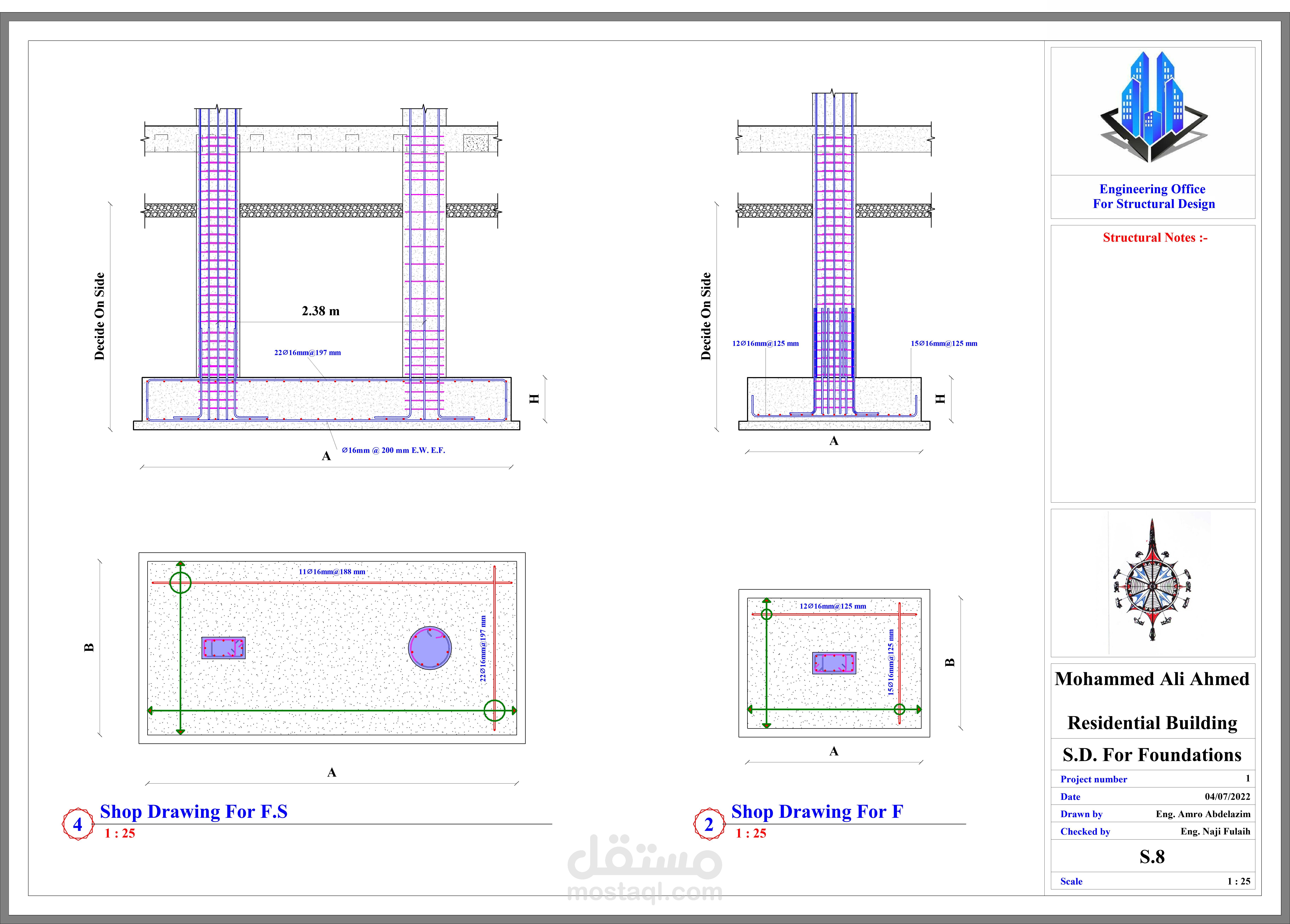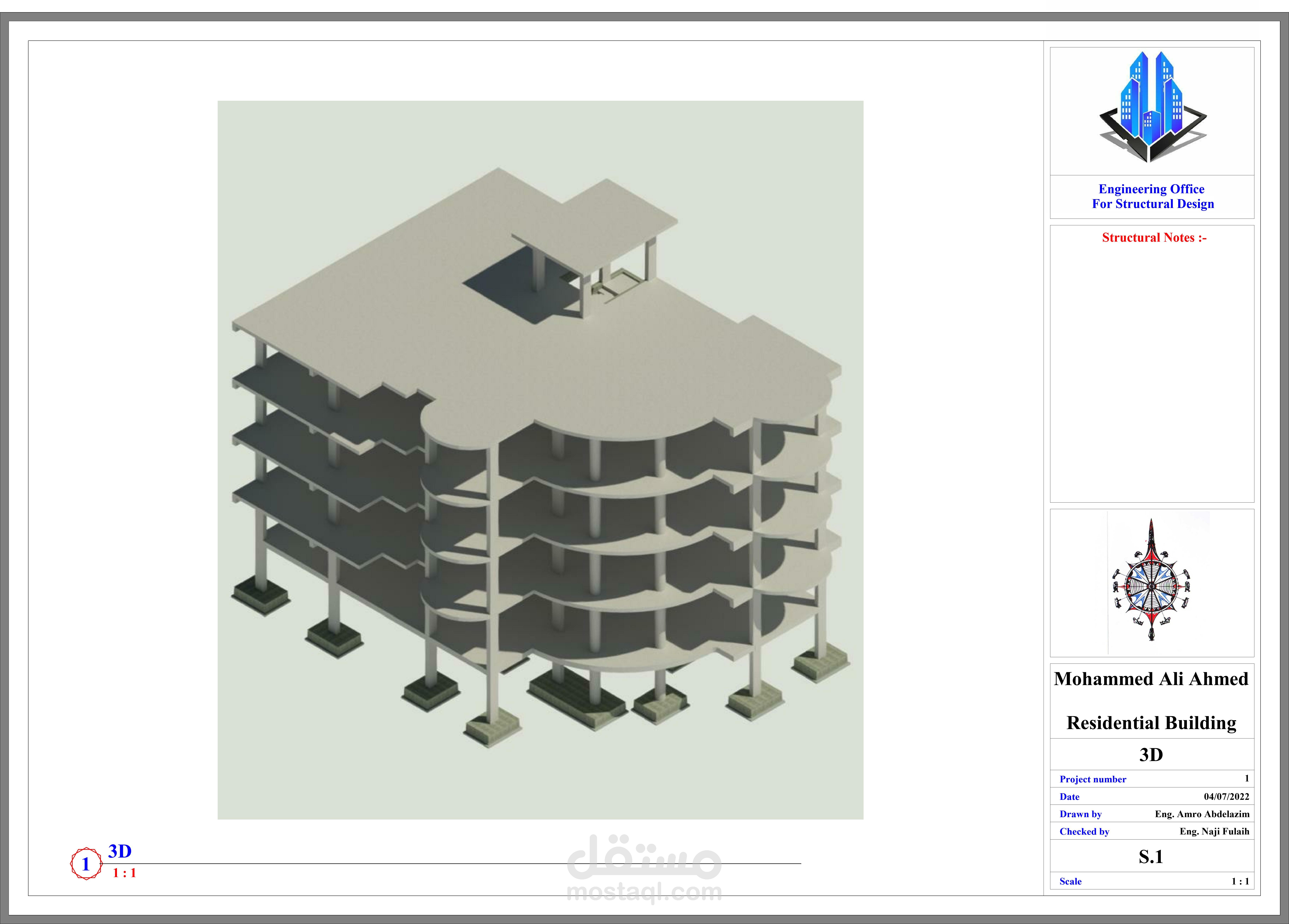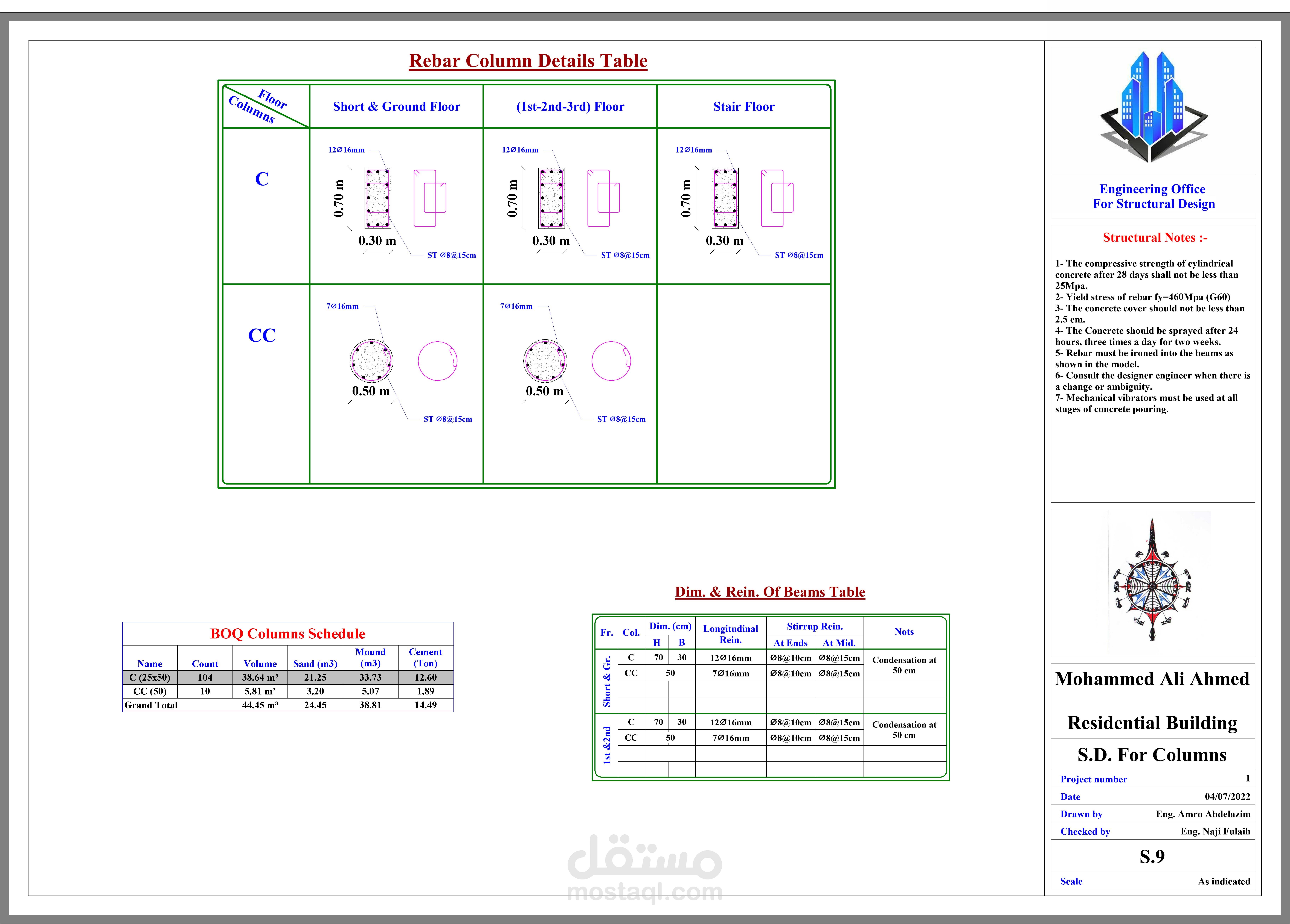 تصميم مشروع سكني و عمل مخططات تنفيذية و رسم لتفاصيل التسليح