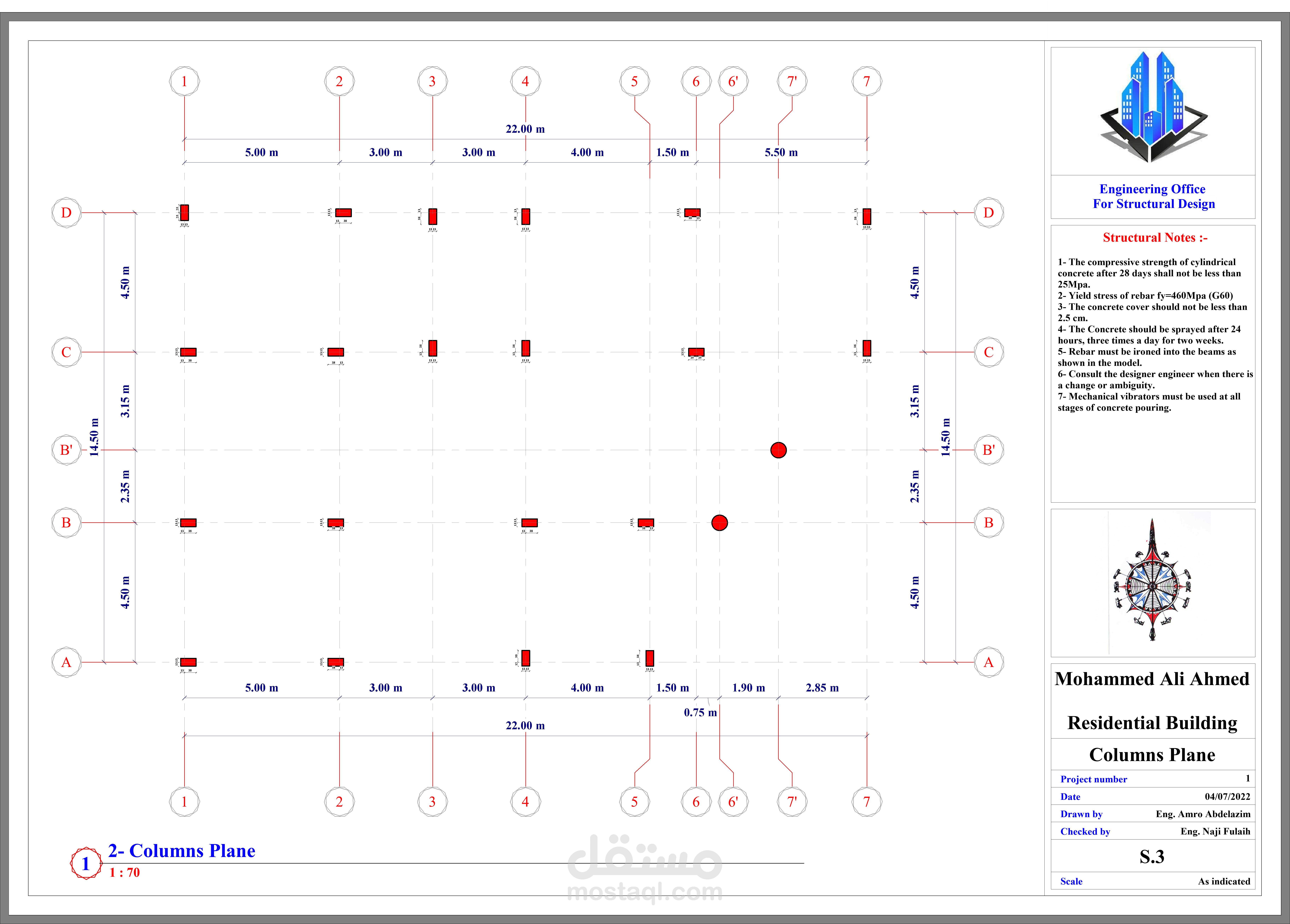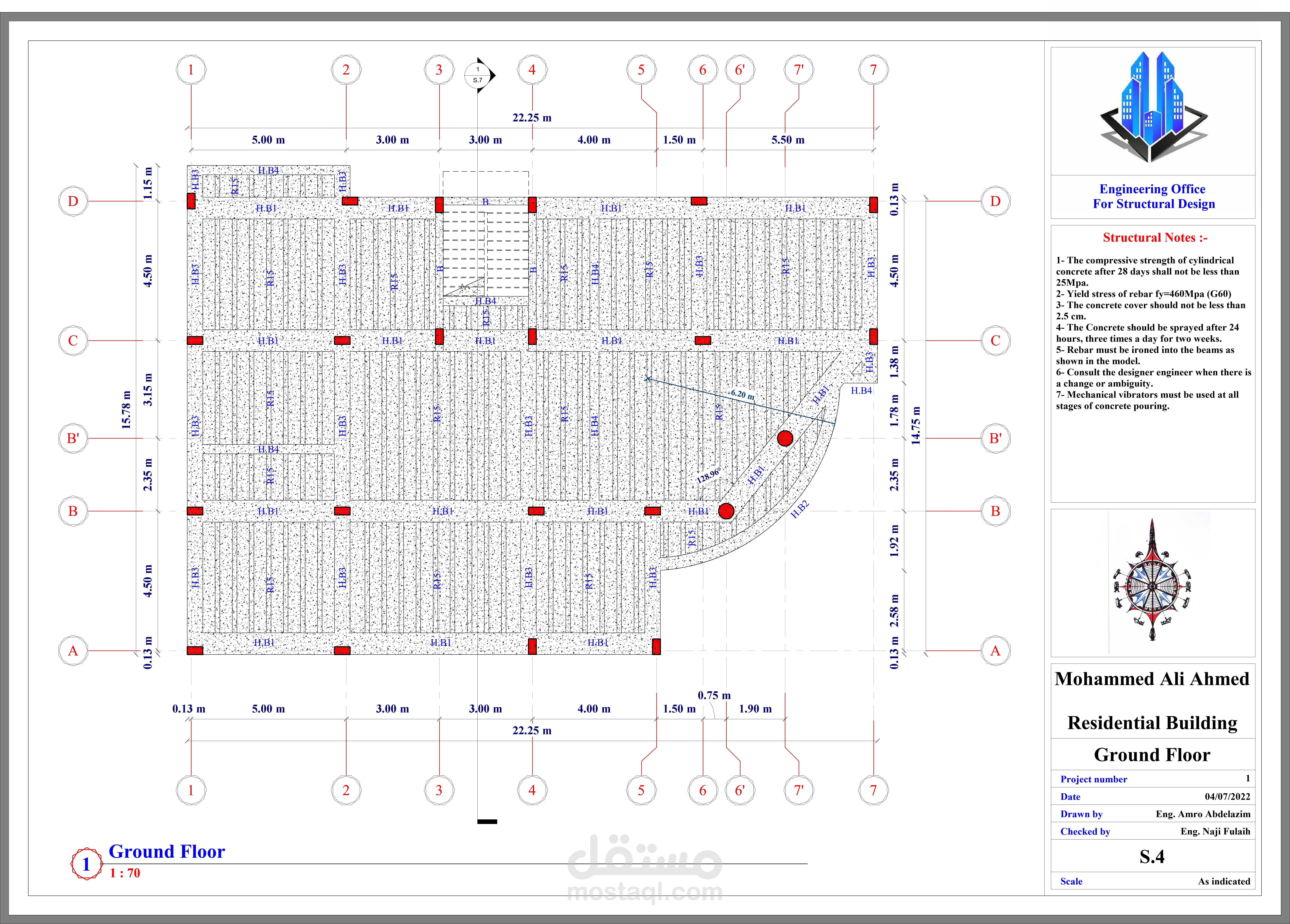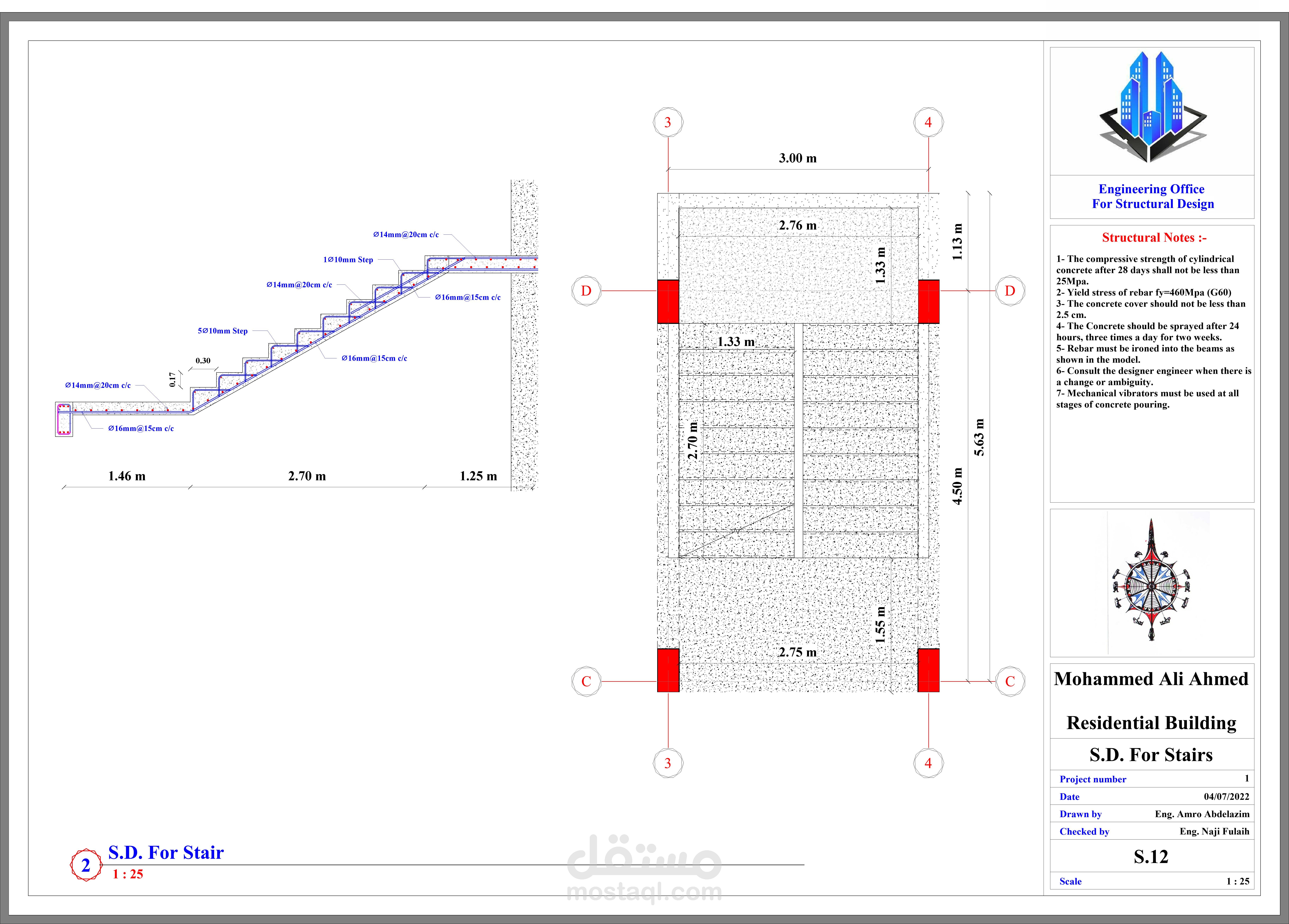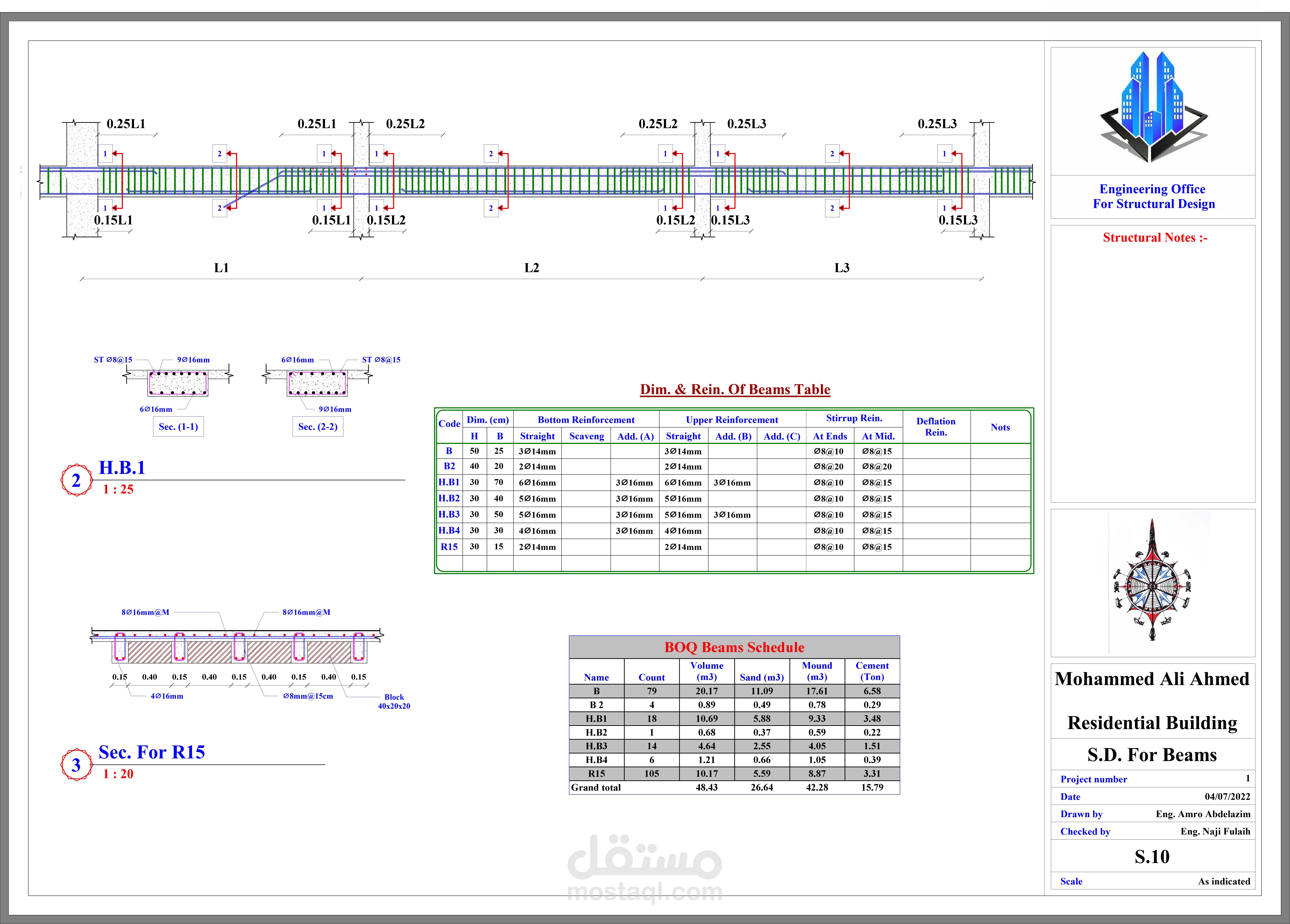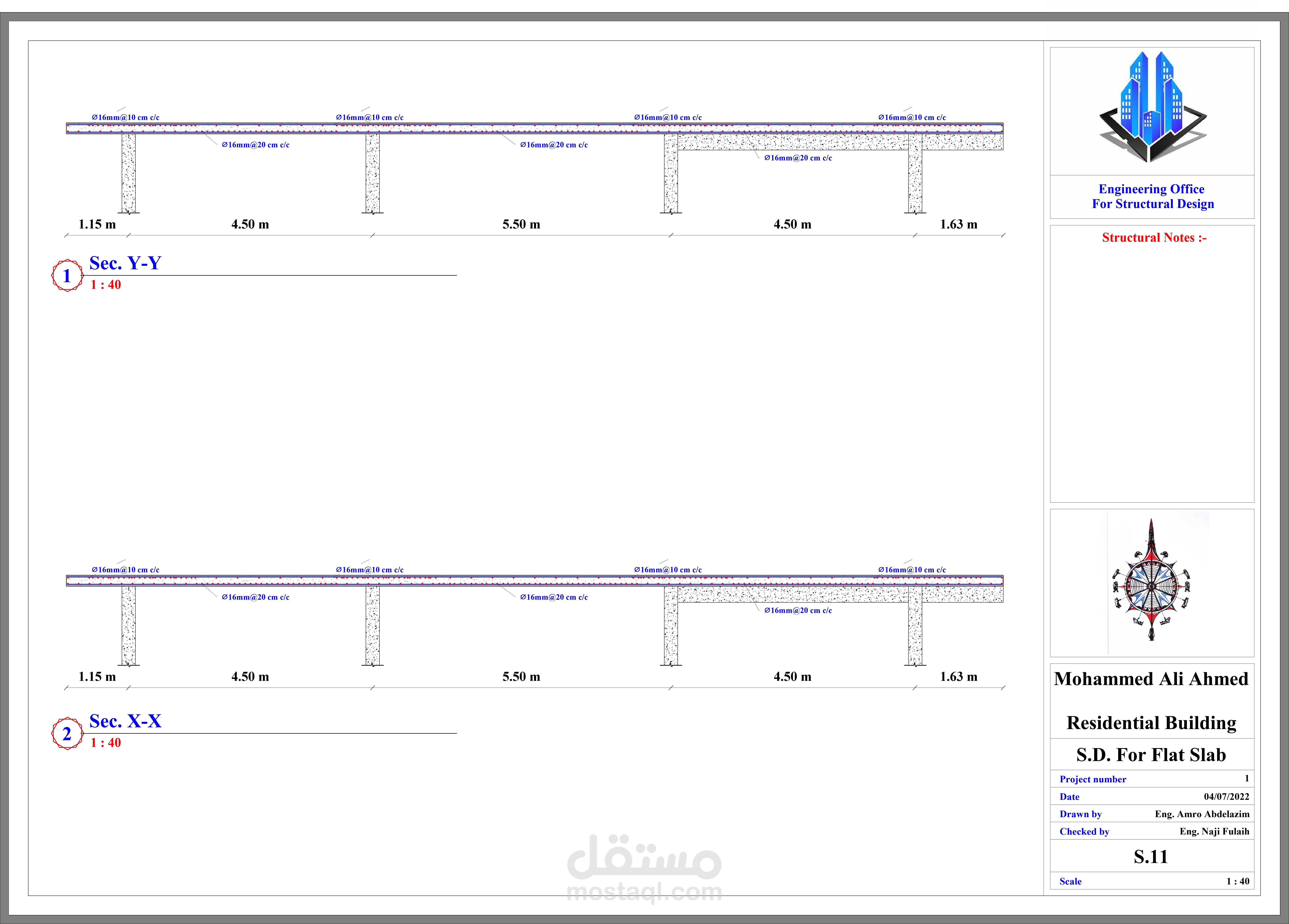 تصميم مشروع سكني و عمل مخططات تنفيذية و رسم لتفاصيل التسليح