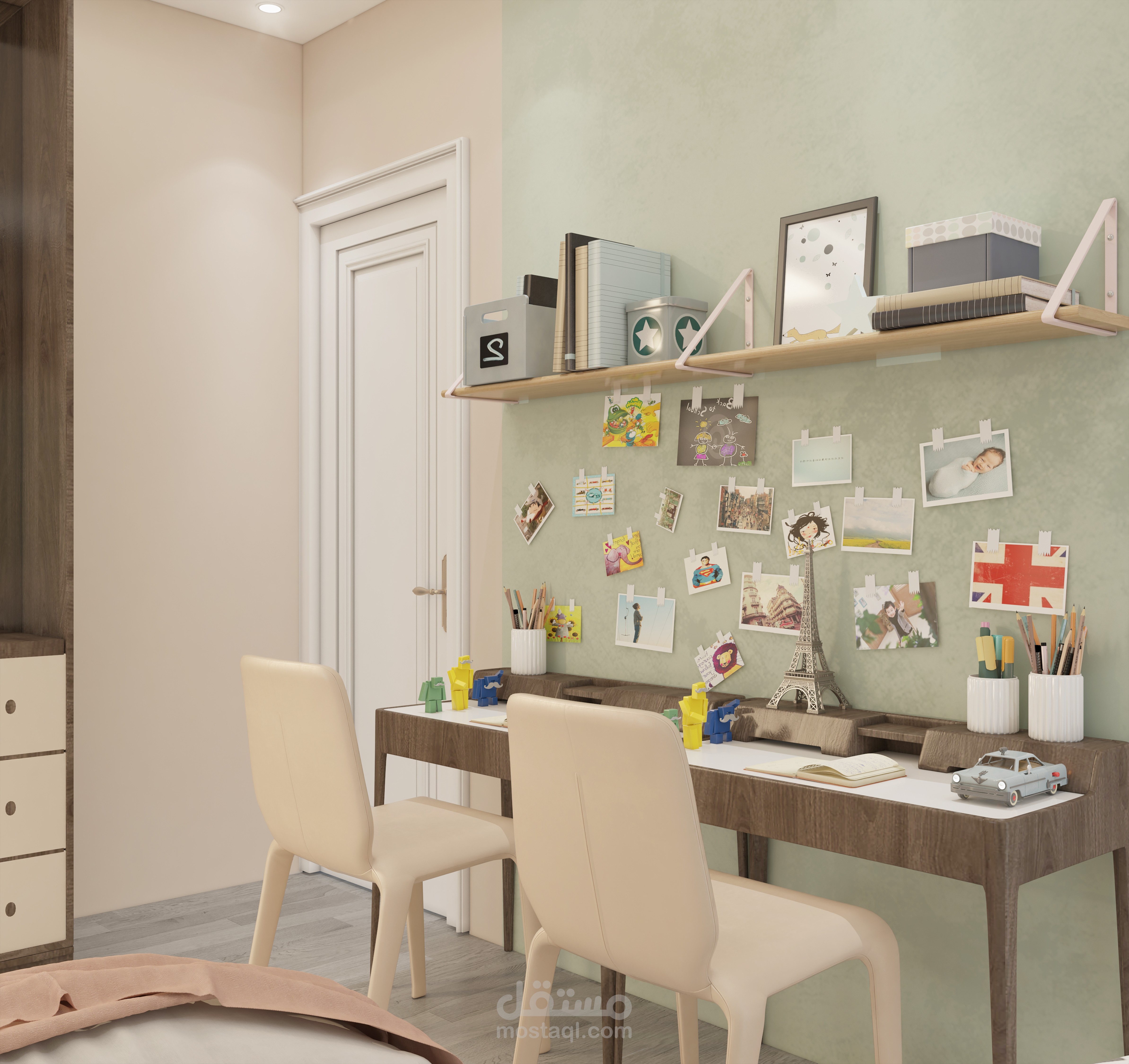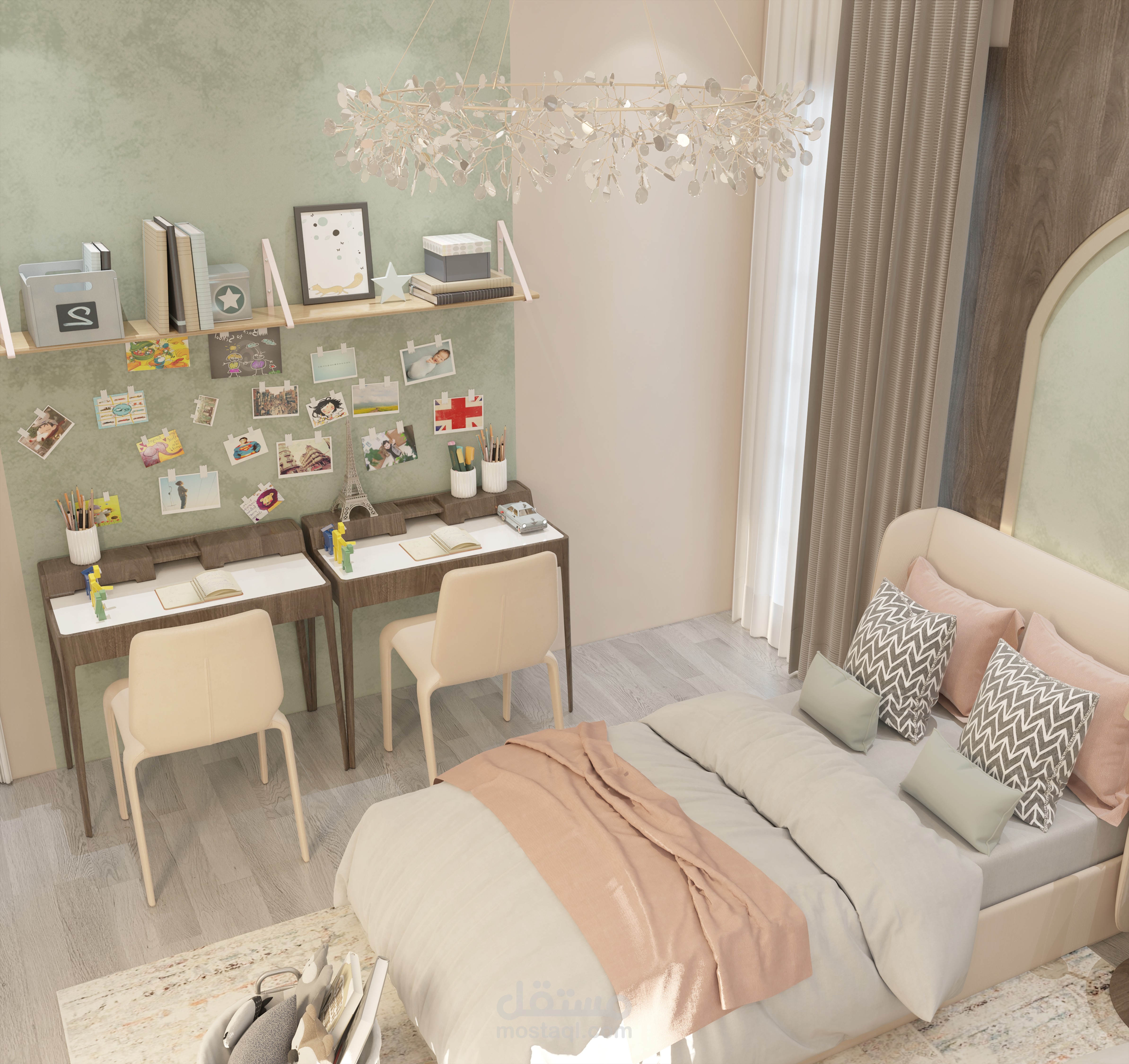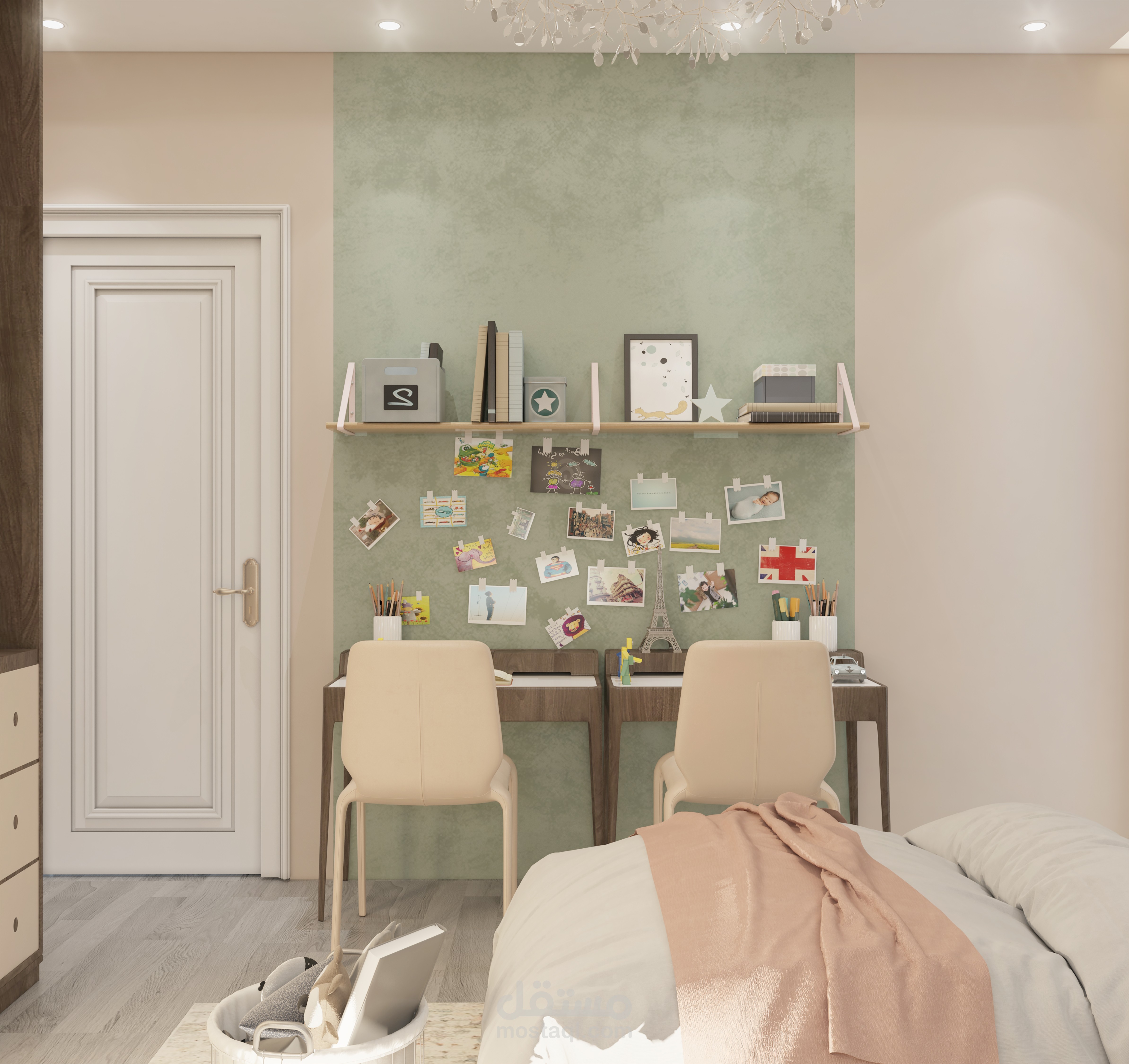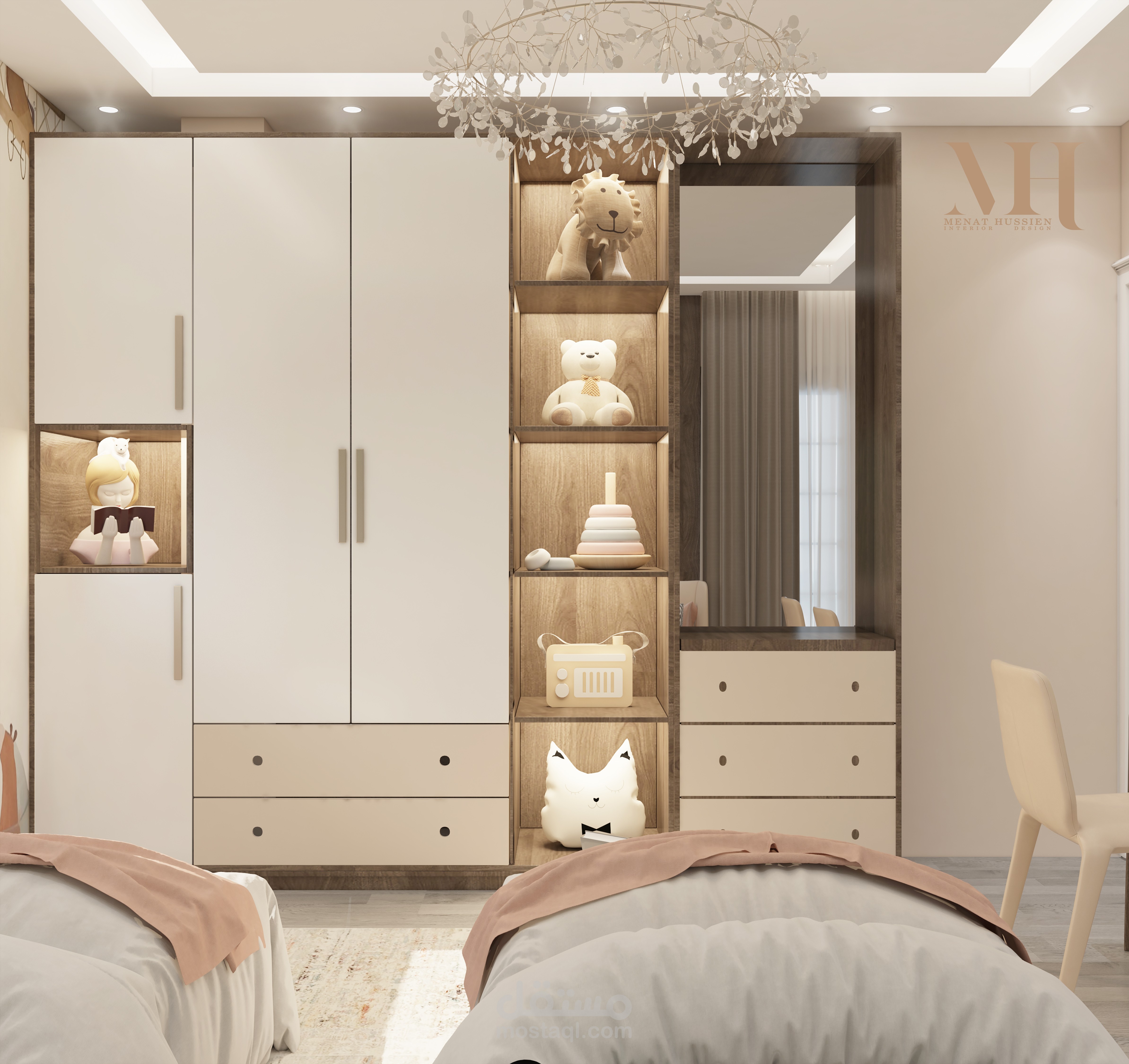 مشروع تصميم داخلي لغرفة نوم حديثة من إبداع UDI AGENCY، يجمع بين الأناقة والراحة مع لمسات عملية مدروسة بعناية.