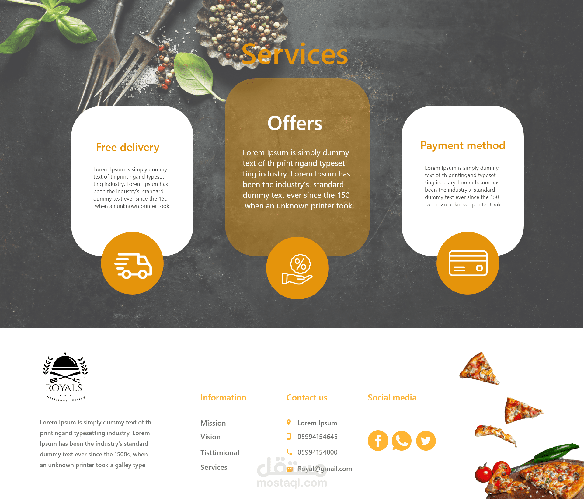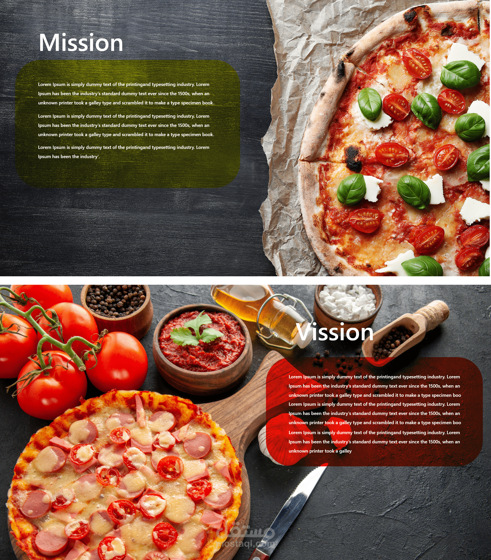 تحتوي على رؤية المطعم ورسالته