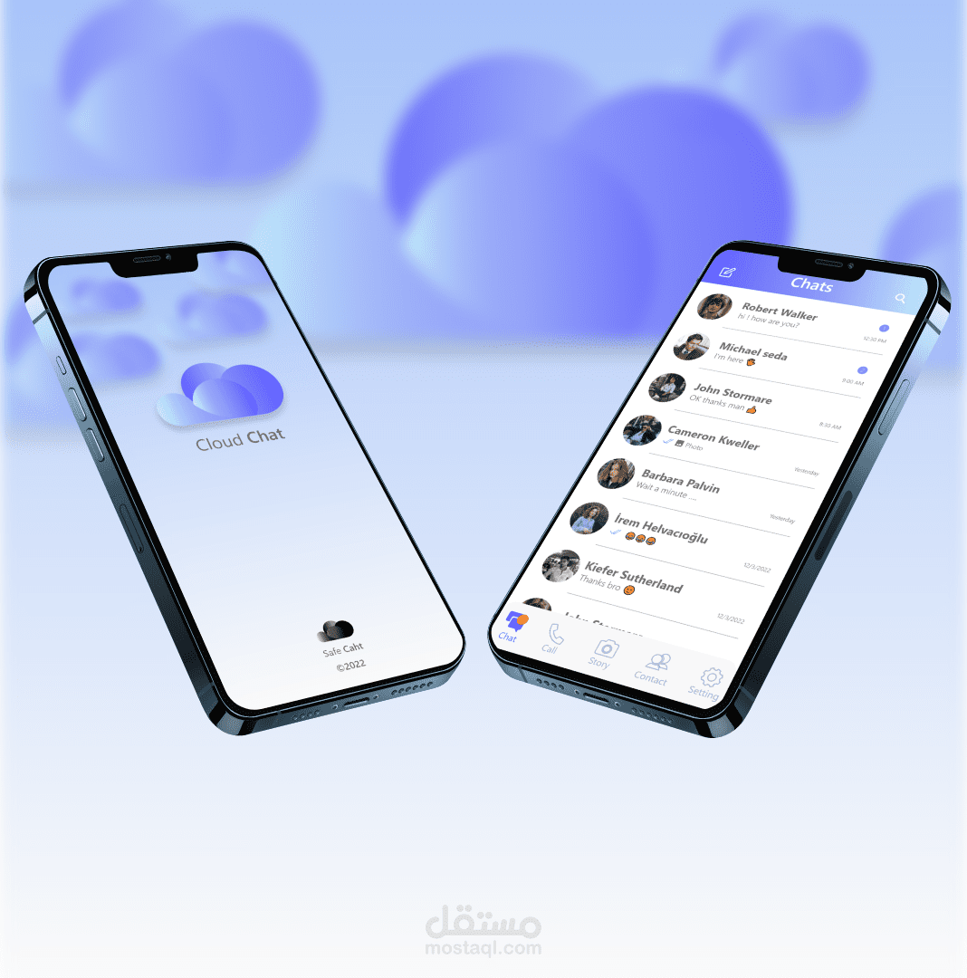Cloud chat هو تصميم لتطبيق دردشة يوجد به العديد من المميزات