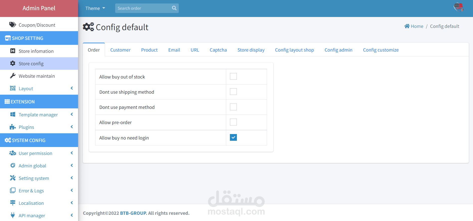 لوحد تحكم ( صلاحيات متعددة ) + موقع الاكتروني.