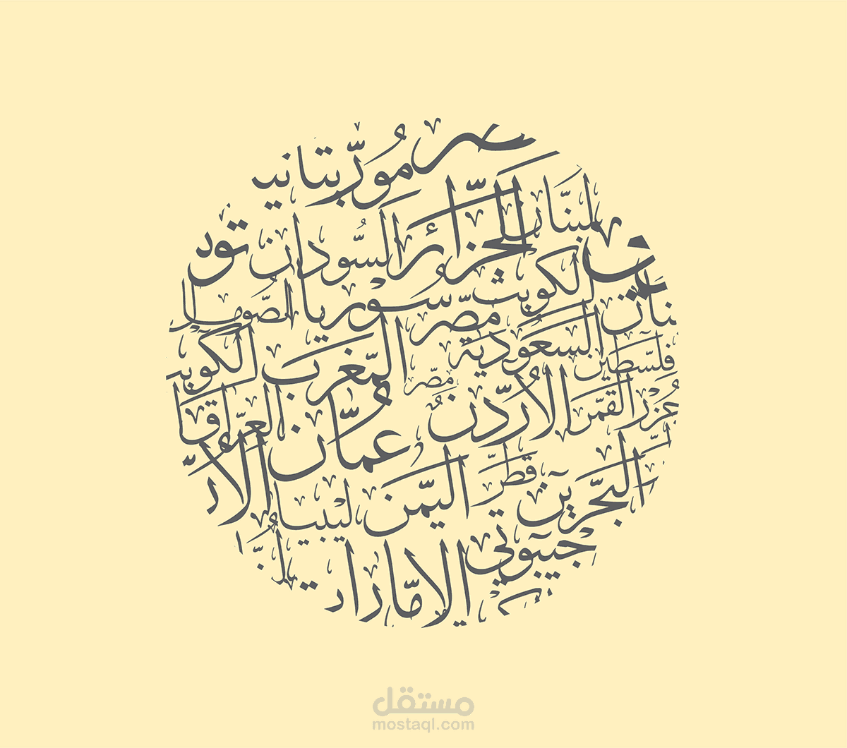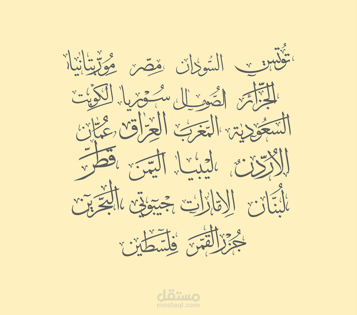 22 Arabic countries Arabic calligraphy by using Thoulth font