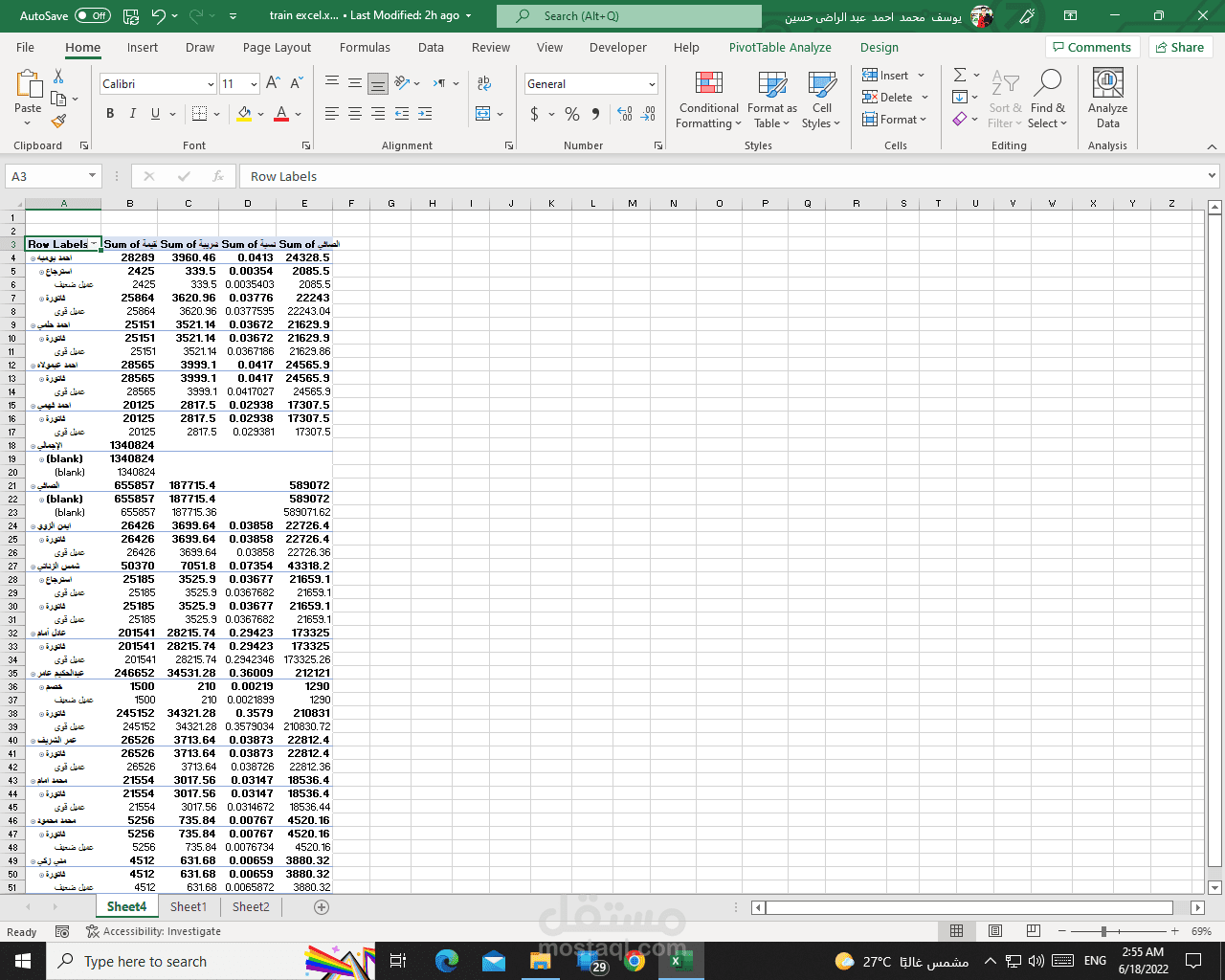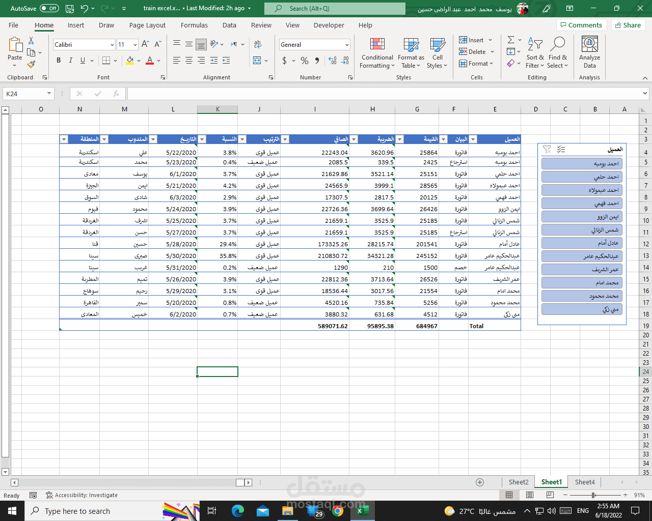 جدوله لبعض القيود كالمبيعات و الصافي و الضريبة و كيفية عمل معادلات تربطهم