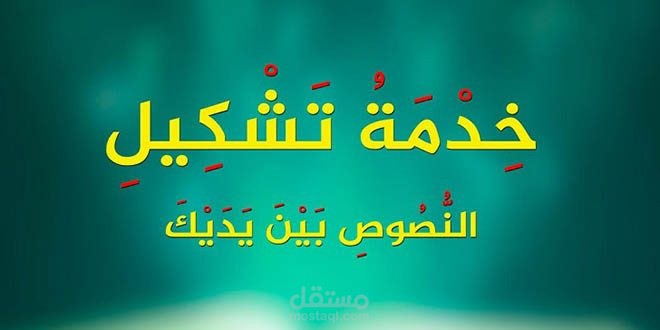 أقوم بتشكيل النصوص والكتب والمقالات والمحتويات. تشكيل كامل وتشكيل جزئي وتدقيق شامل للملفات وتعديلها من غير أي أخطاء نحوية وإملائية