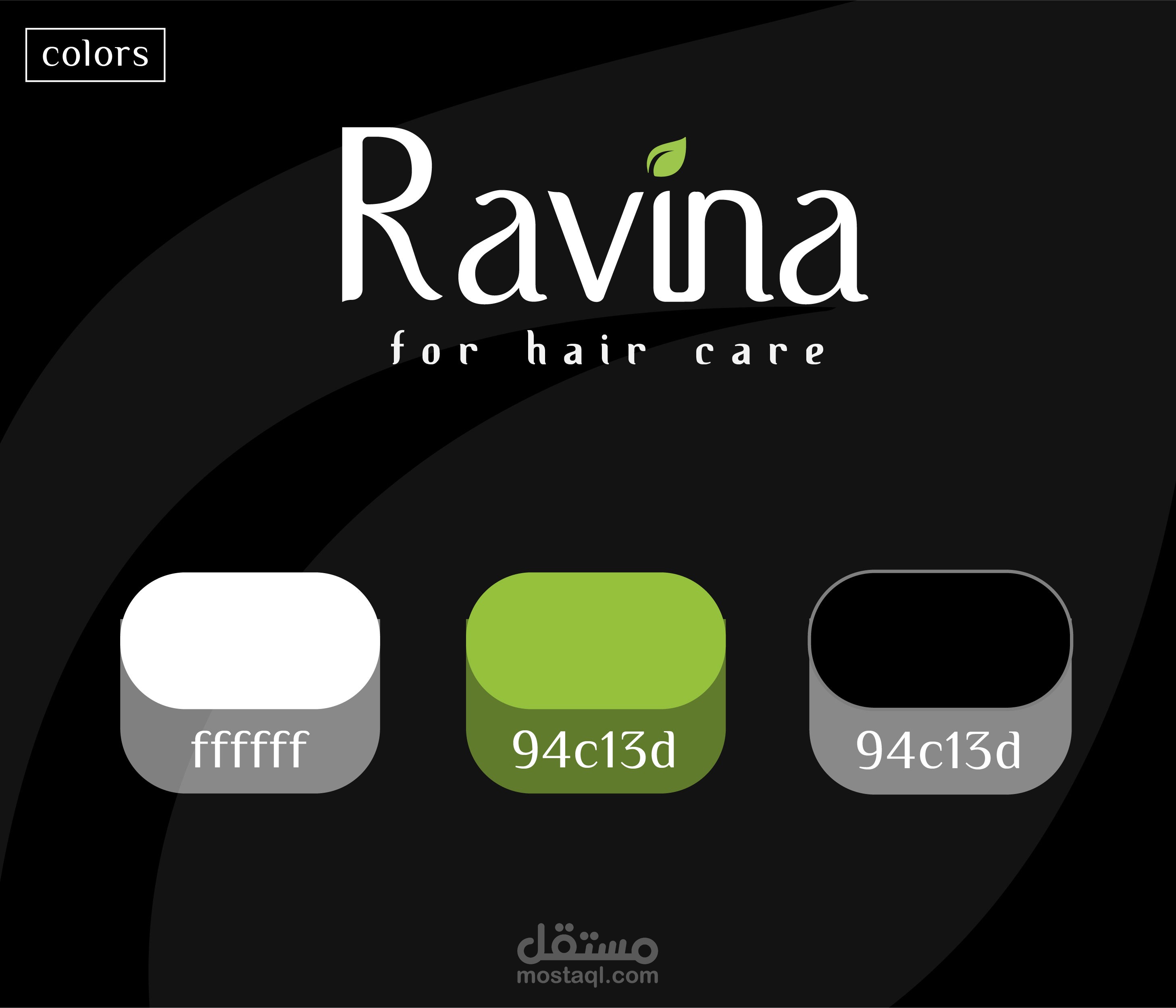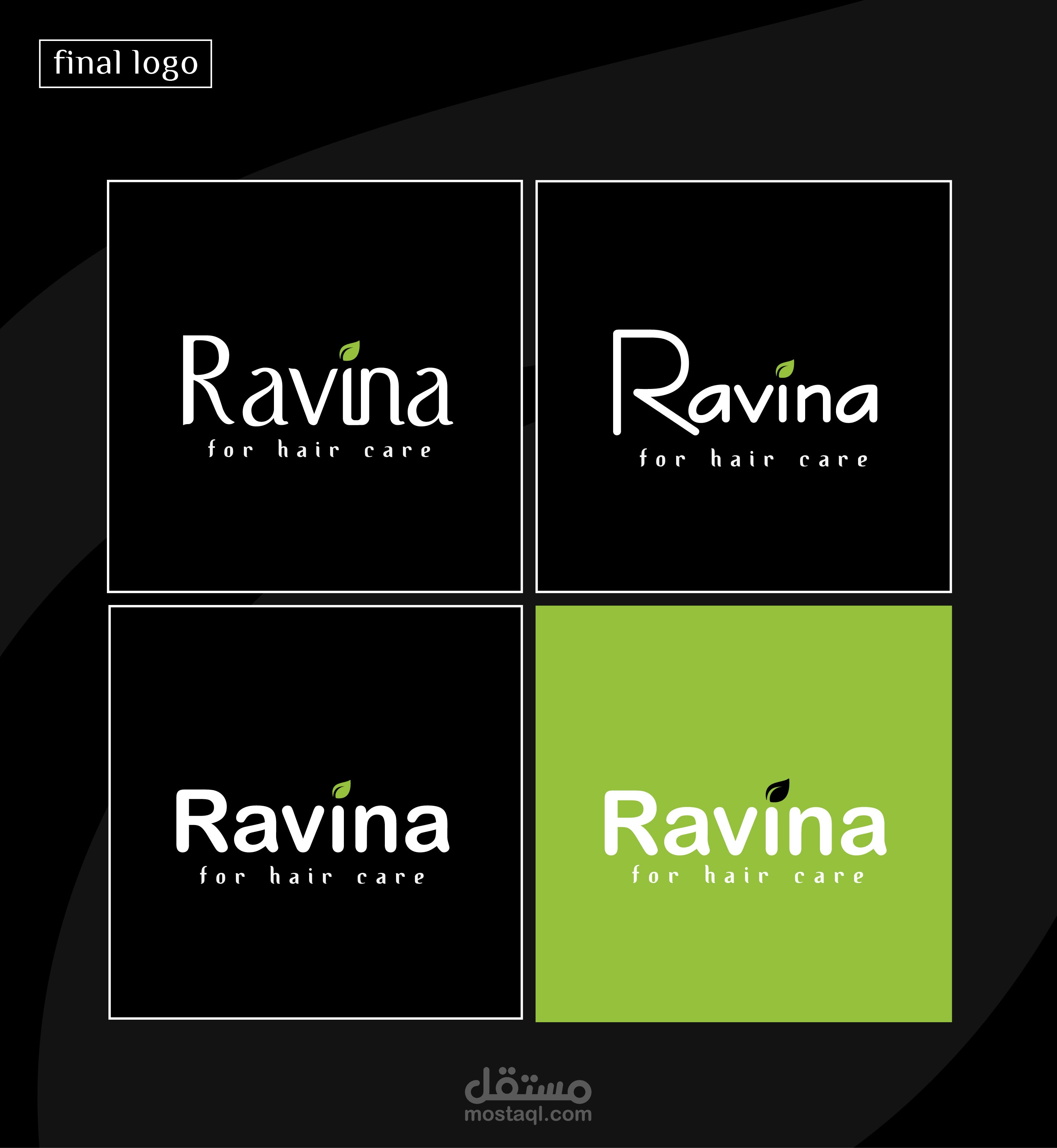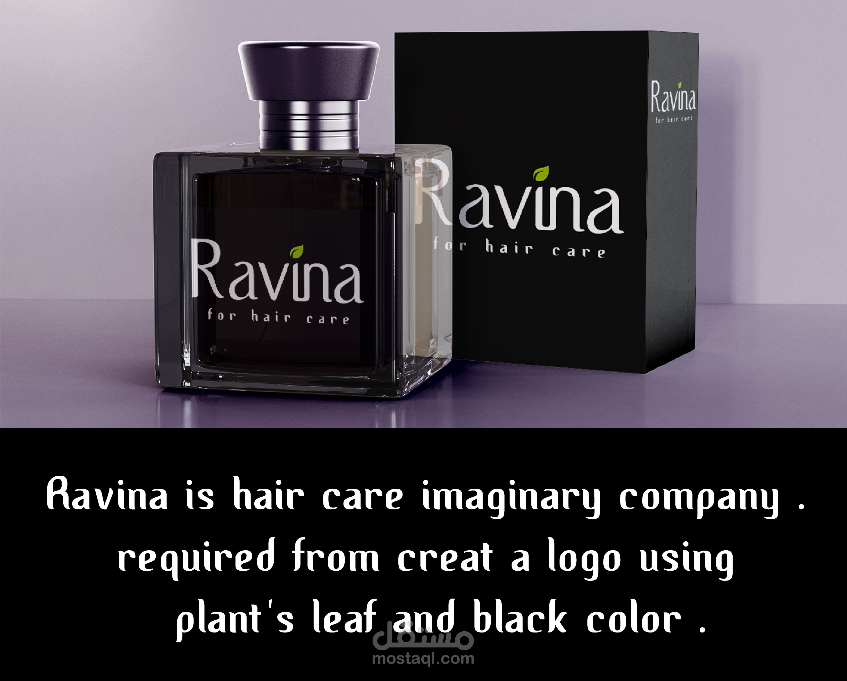 Ravina هي شركة للعناية بالشعر . طلب من إنشاء شعار باستخدام أوراق النبات واللون الأسود .