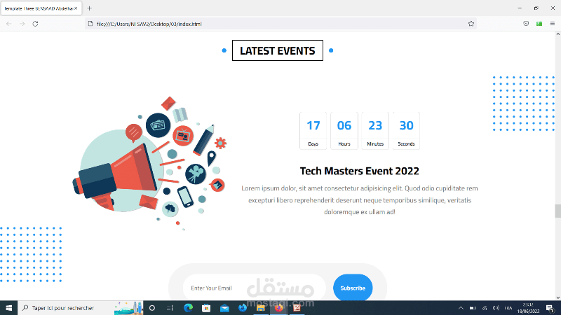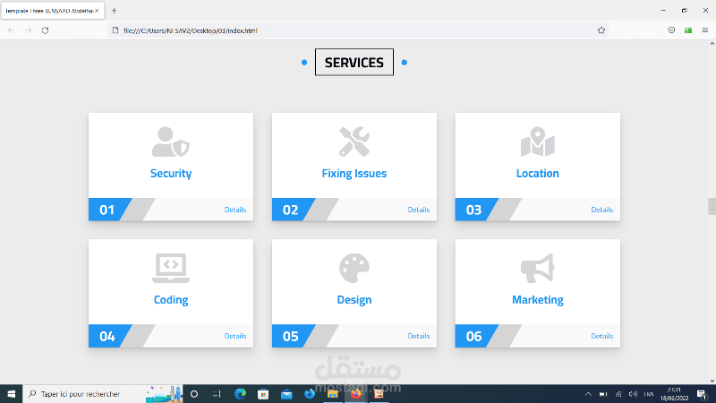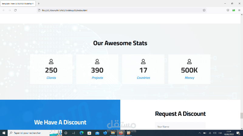 تصميم صفحة كاملة لموقع خدماتي بلغتي CSS و HTML مكونة من 16 جزء (16 sections)، تحتوي header ، lnading page ، Articles Section ، Gallery Section ، Features Section ، Testimonials Section ، Team Members Section ، Services Section ، Skills Section ، Work-Steps Section ، Events Section ، Pricing Plans Section ، Top Videos Section ، Stats Section ، Discount Section ، Footer