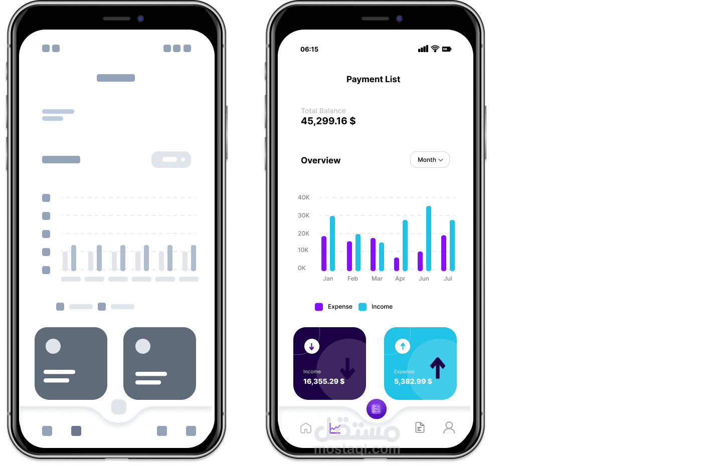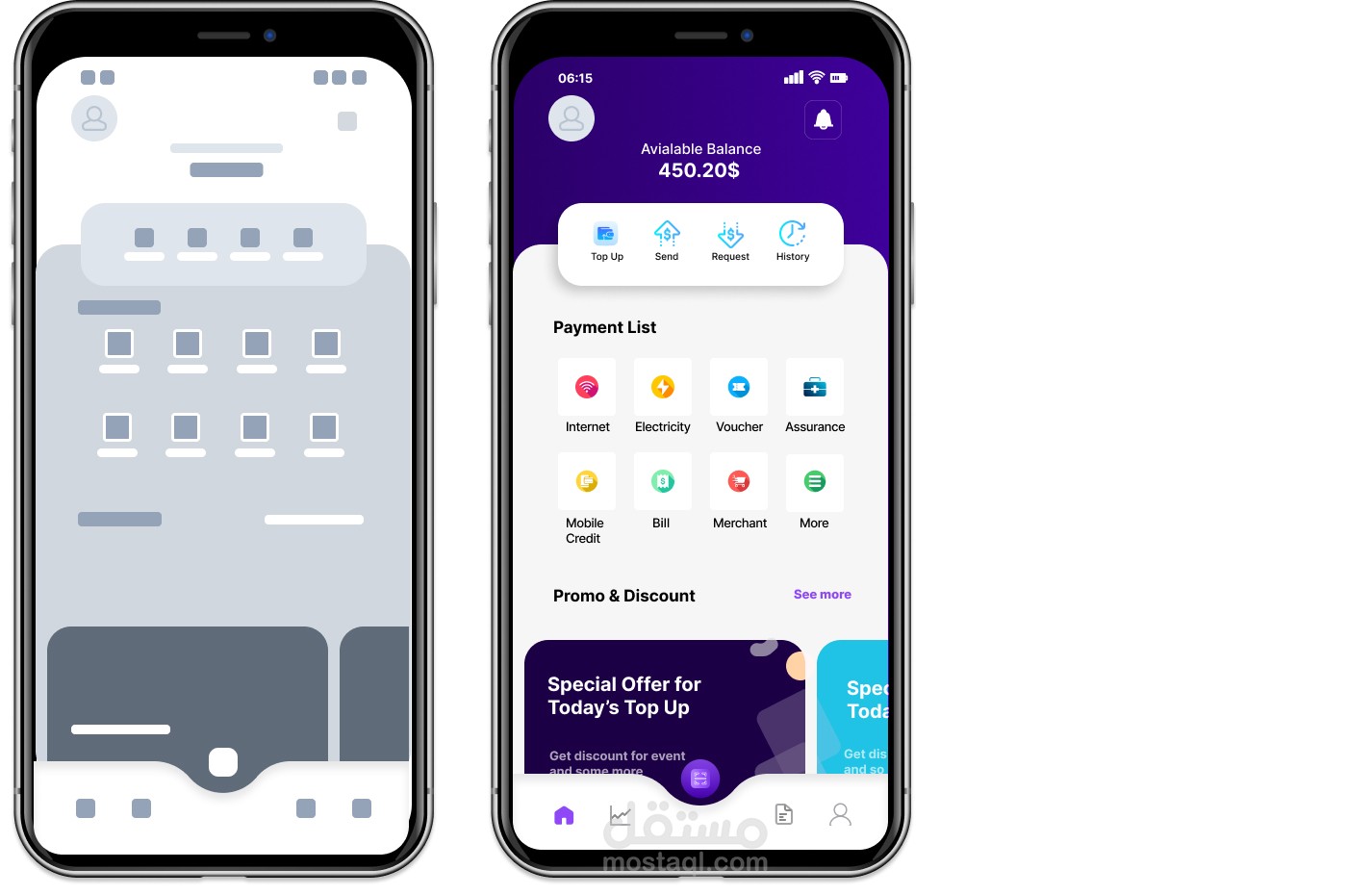 تصميم تطبيق محفظة الكترونية بهدف متابعة رصيد المحفظة مع امكانية المشاركة في مجال الاستثمارات والاسهم.