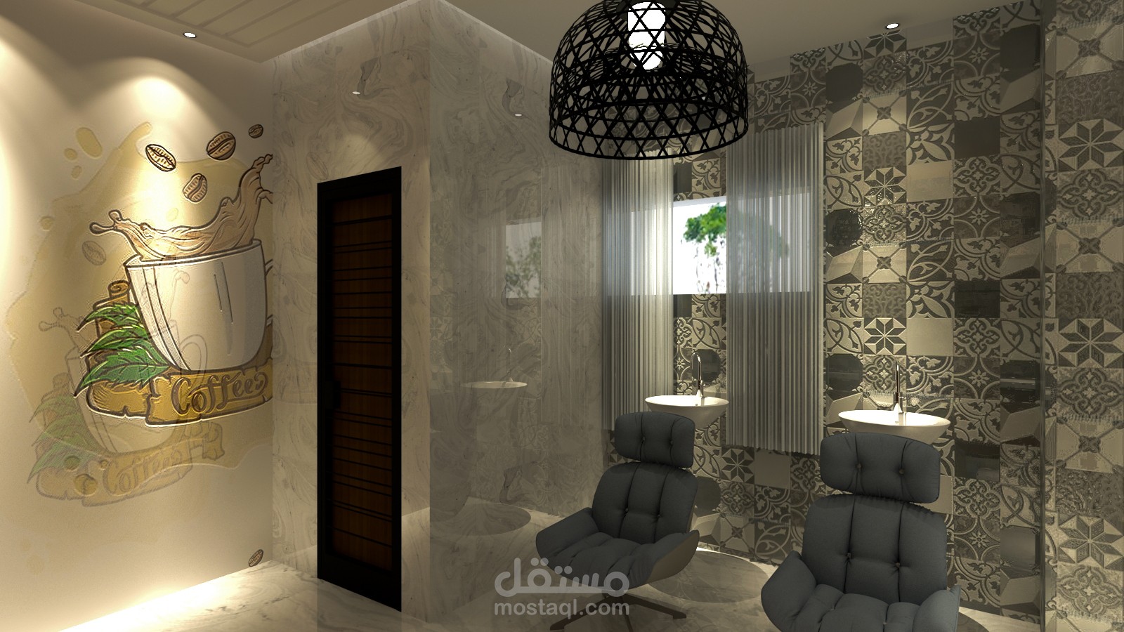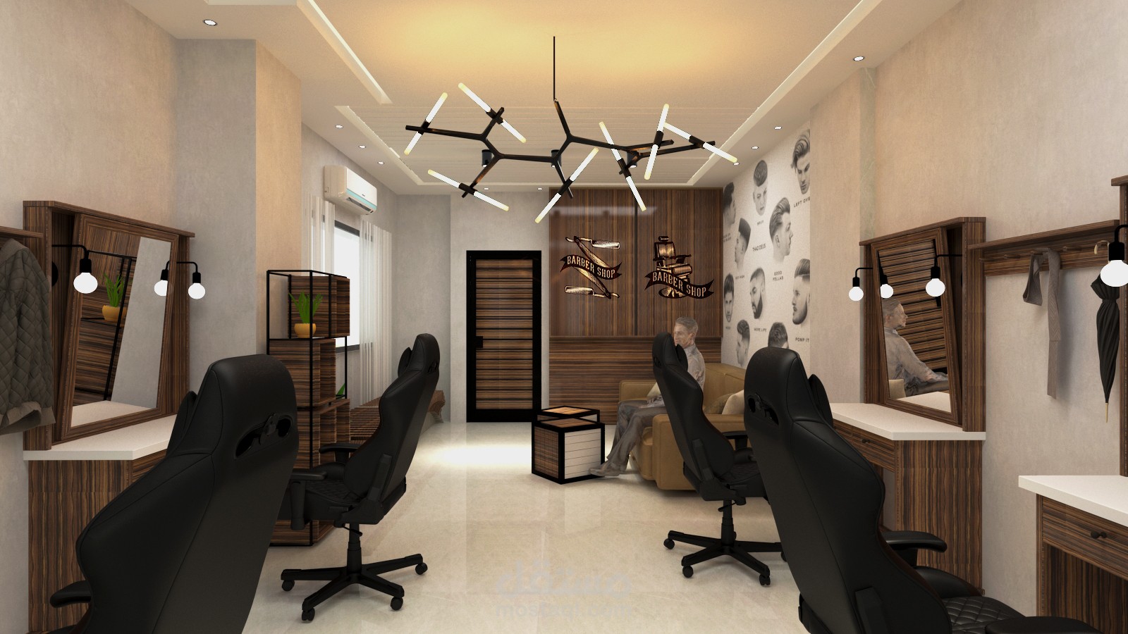 تصميم واجهة ومحل لصالون رجالي