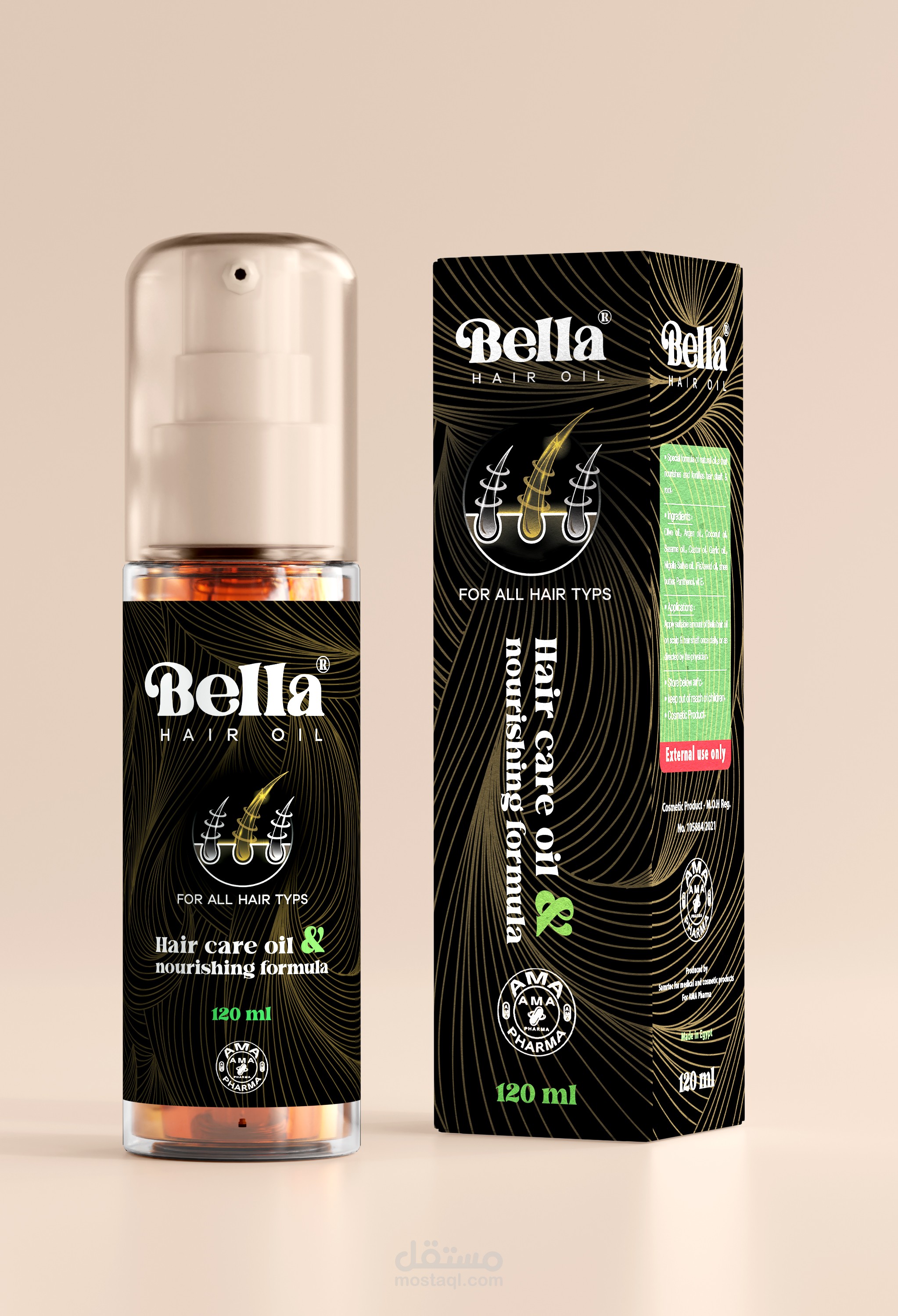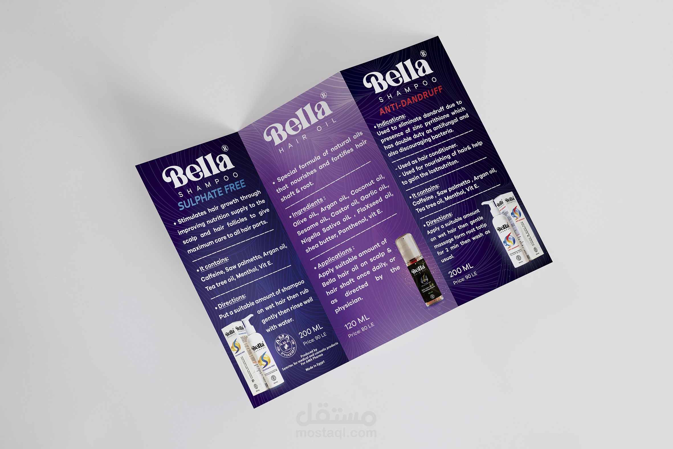 بيلا زيت شعر وشامبو - تصميم لوجو وتغليف منتج وبروشور